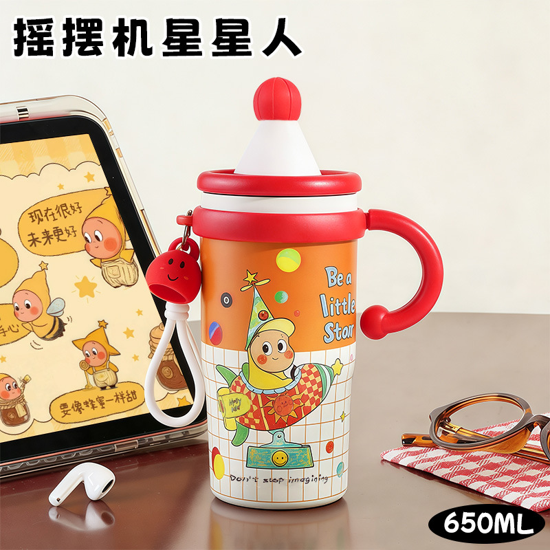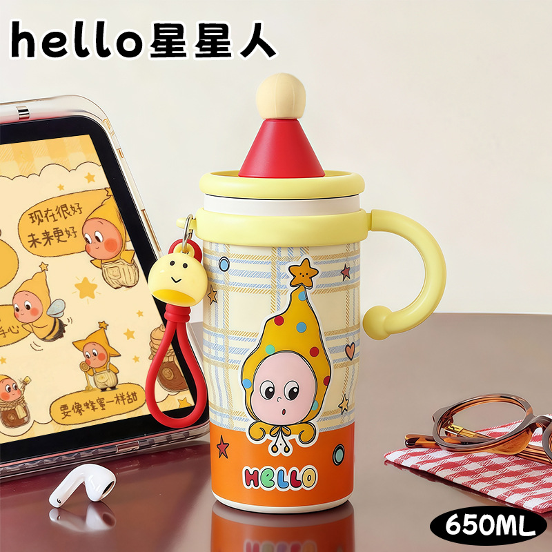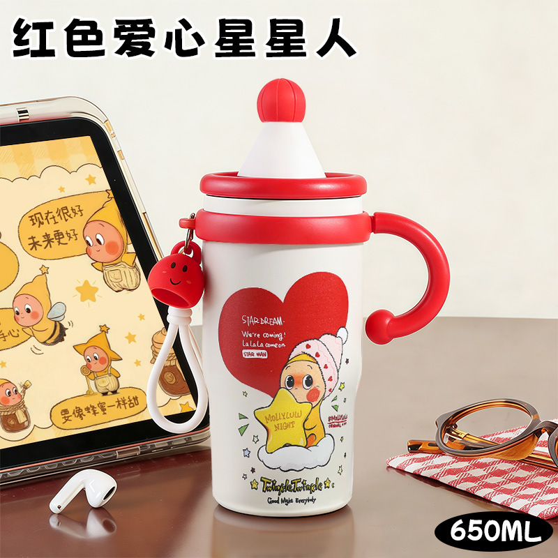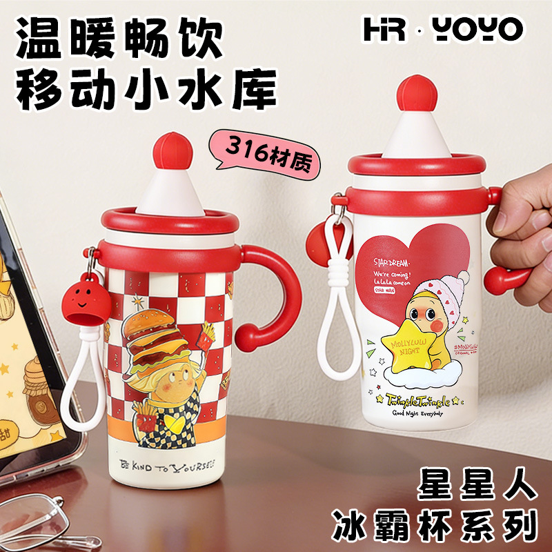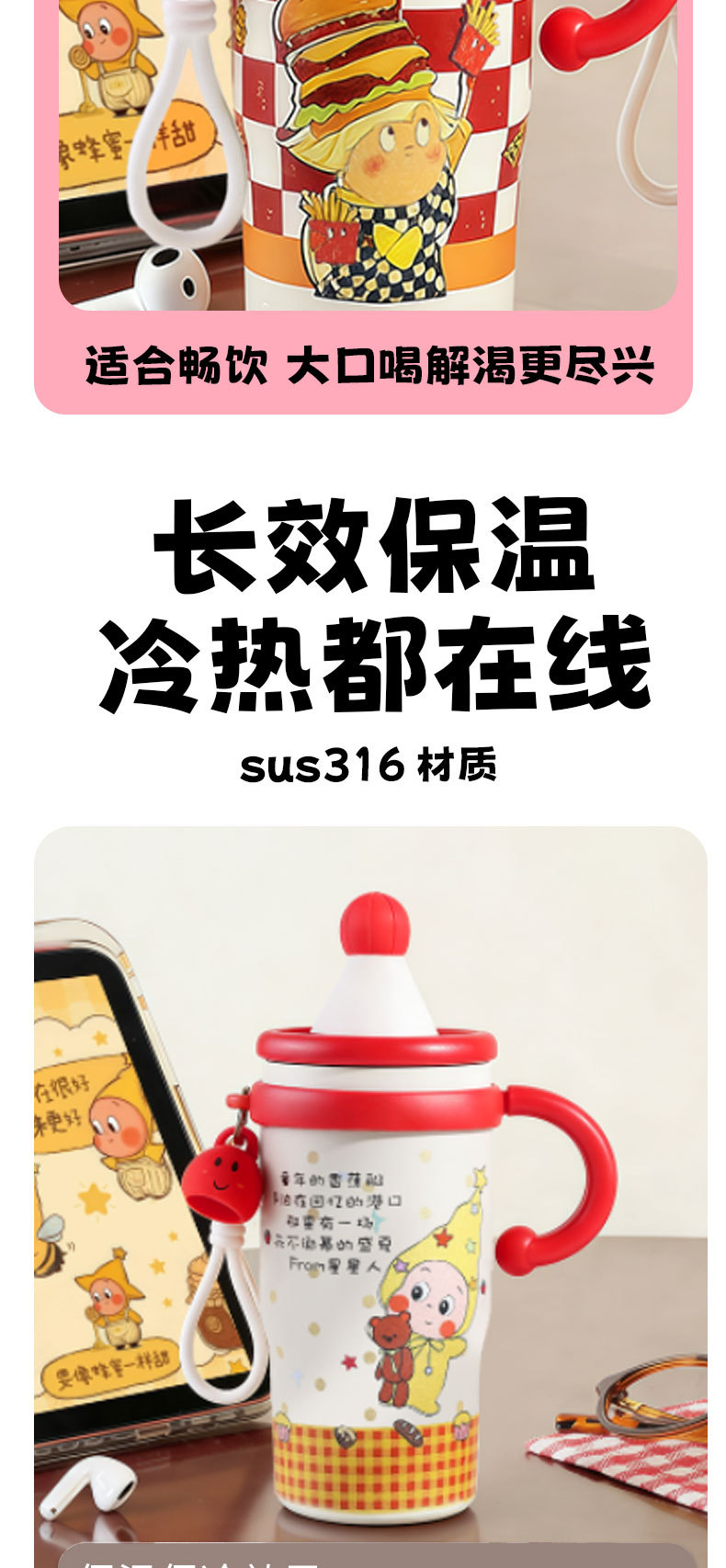 316卡通星星人保温杯女高颜值办公室泡茶喝水杯学生便携手柄杯子