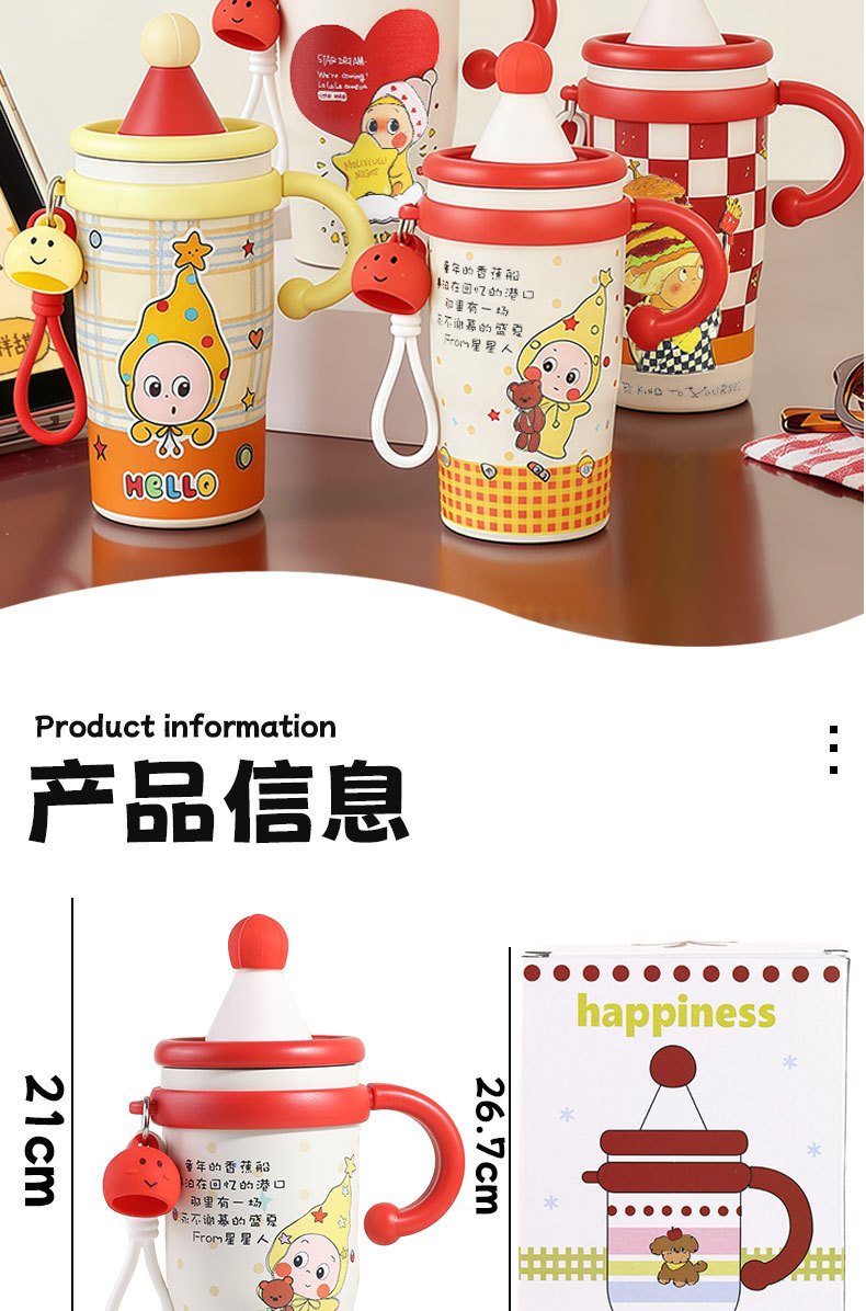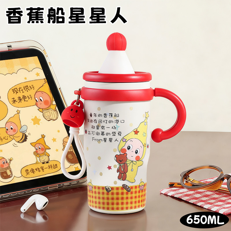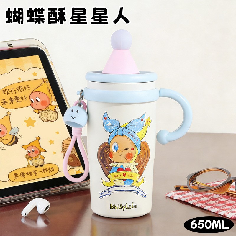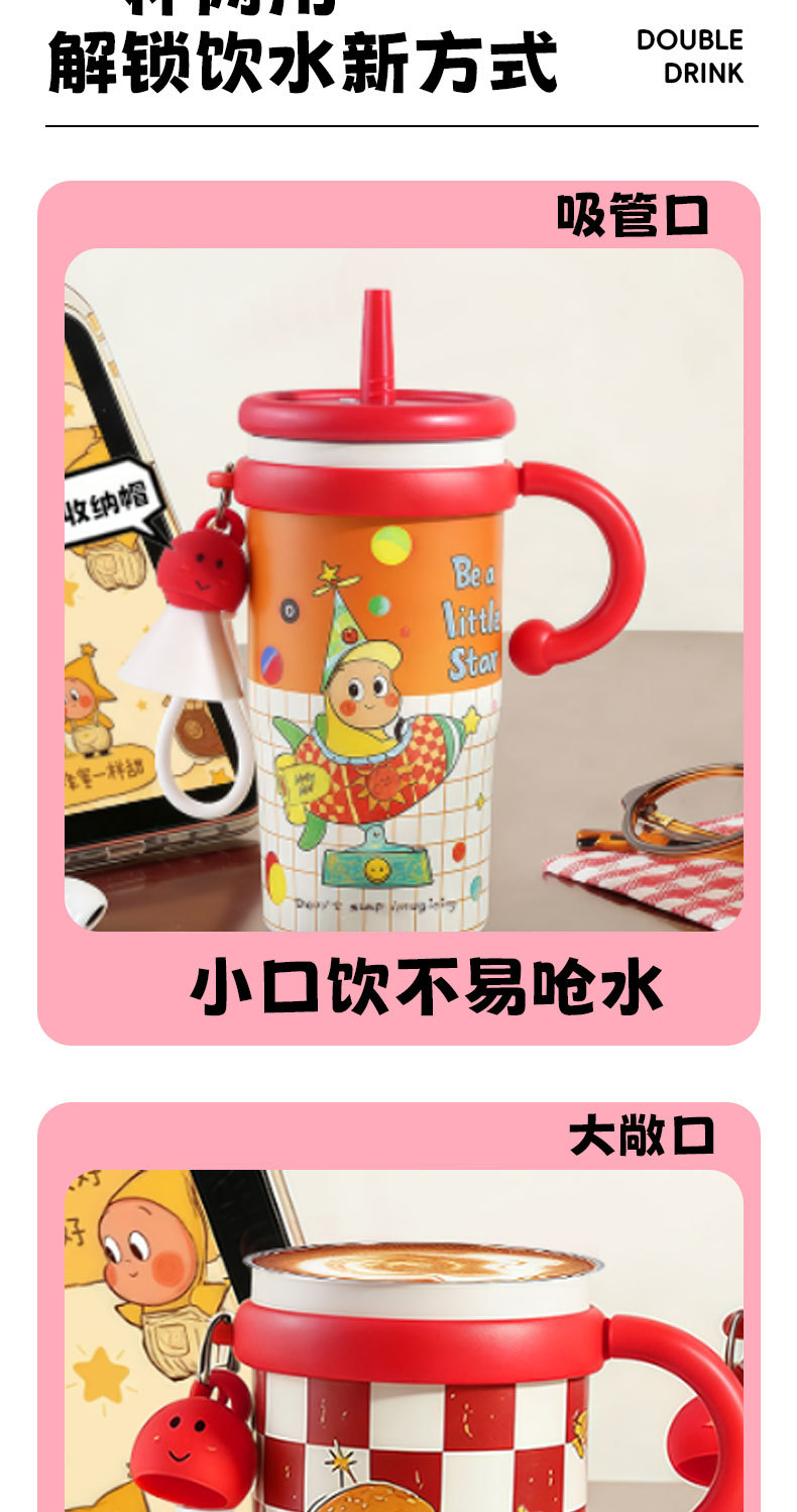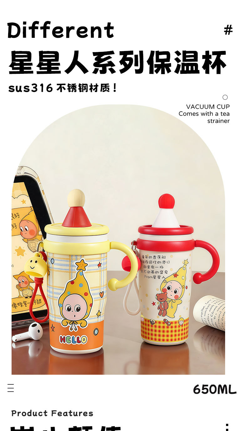 316卡通星星人保温杯女高颜值办公室泡茶喝水杯学生便携手柄杯子