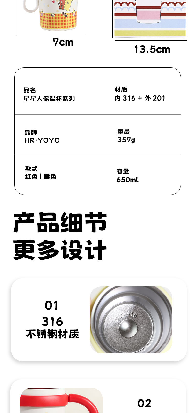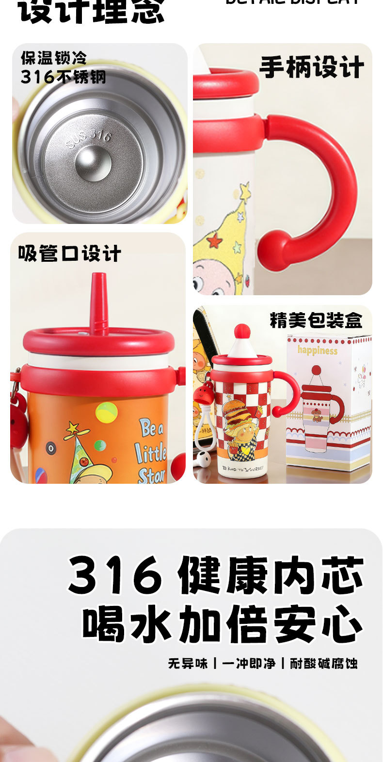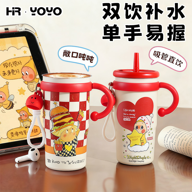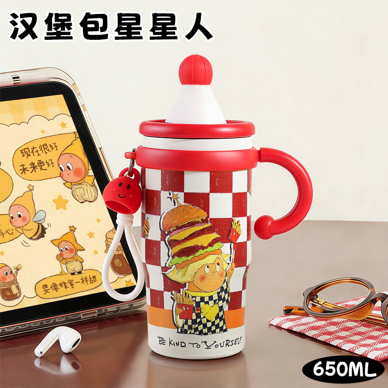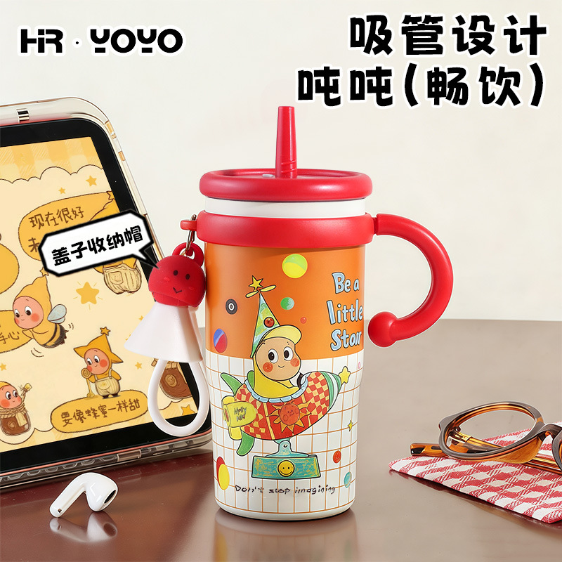 316卡通星星人保温杯女高颜值办公室泡茶喝水杯学生便携手柄杯子