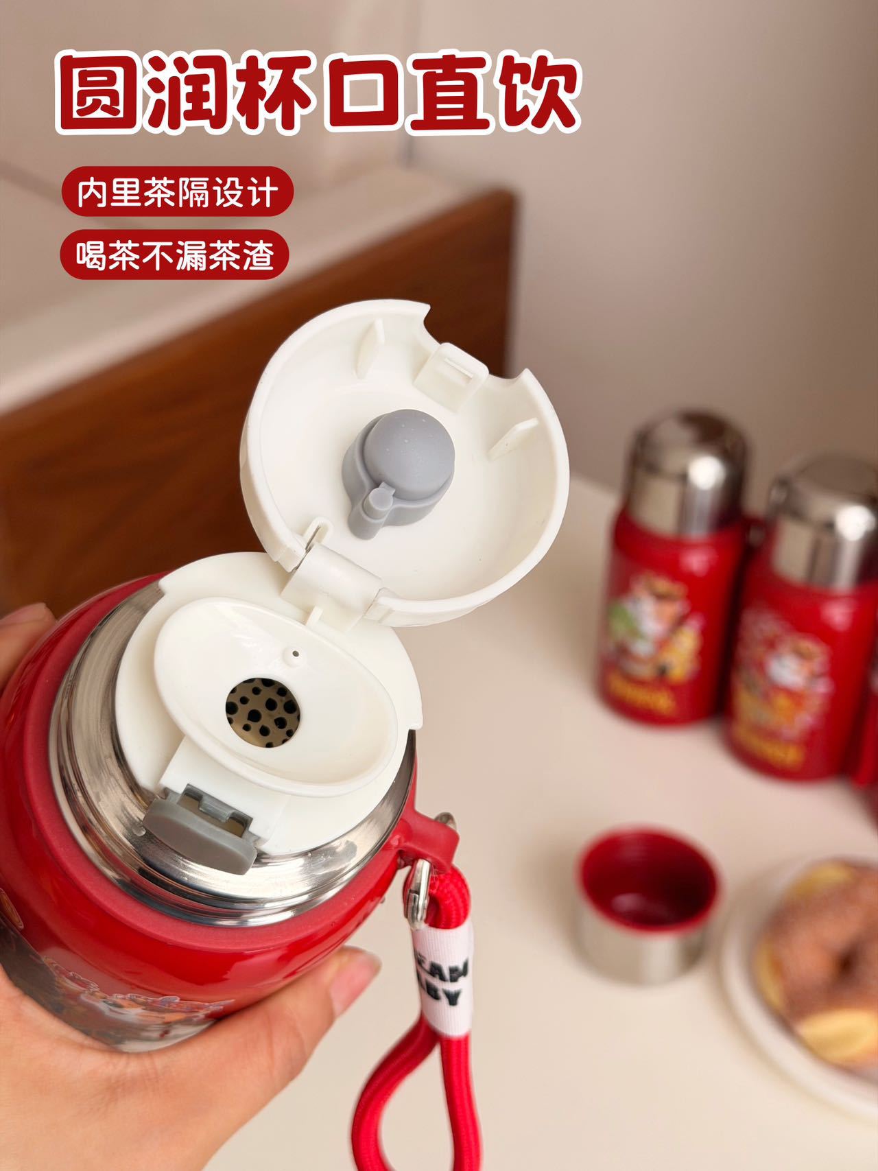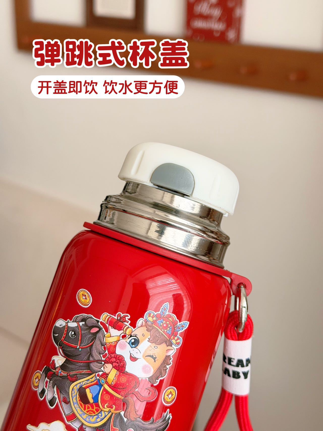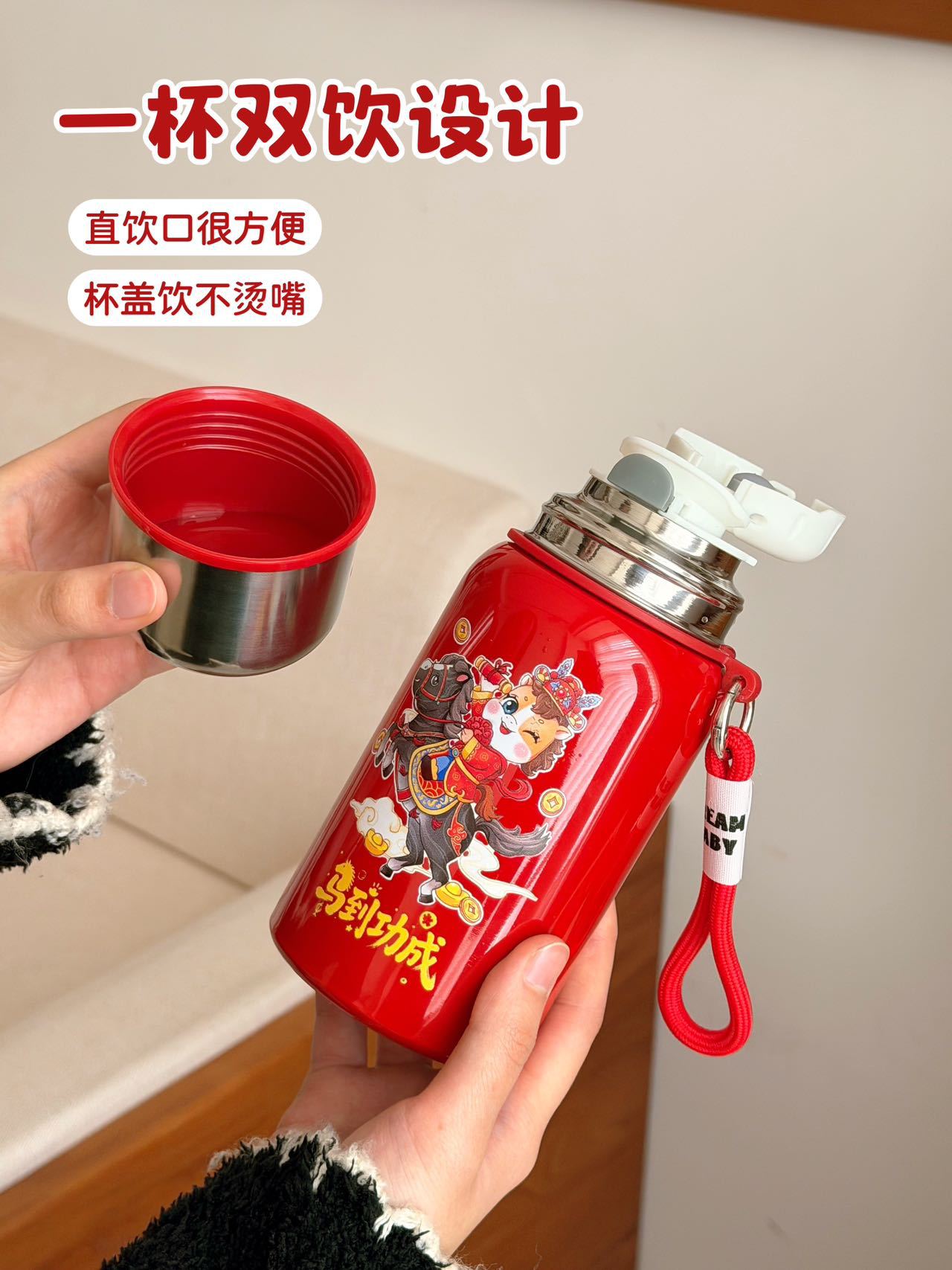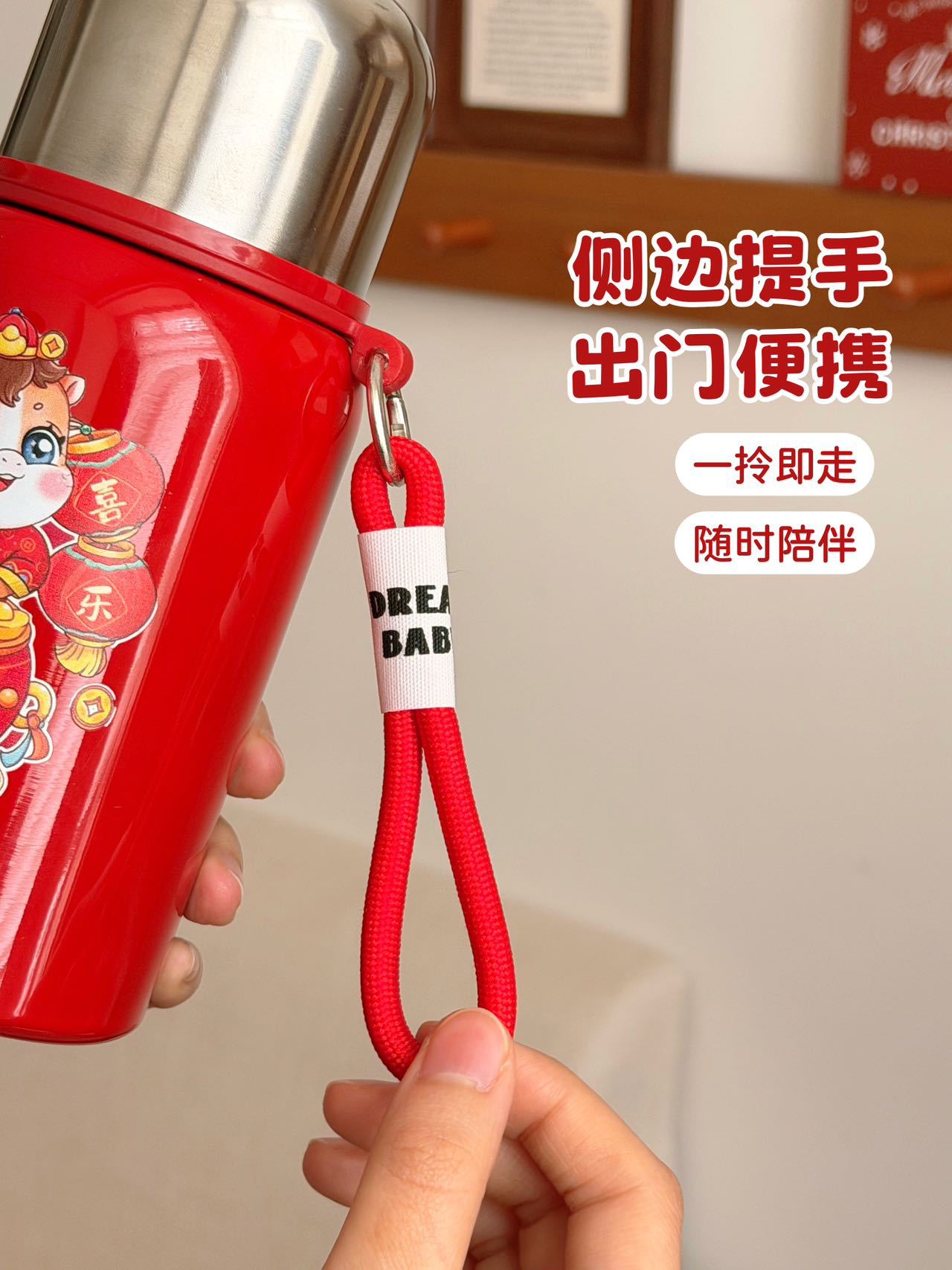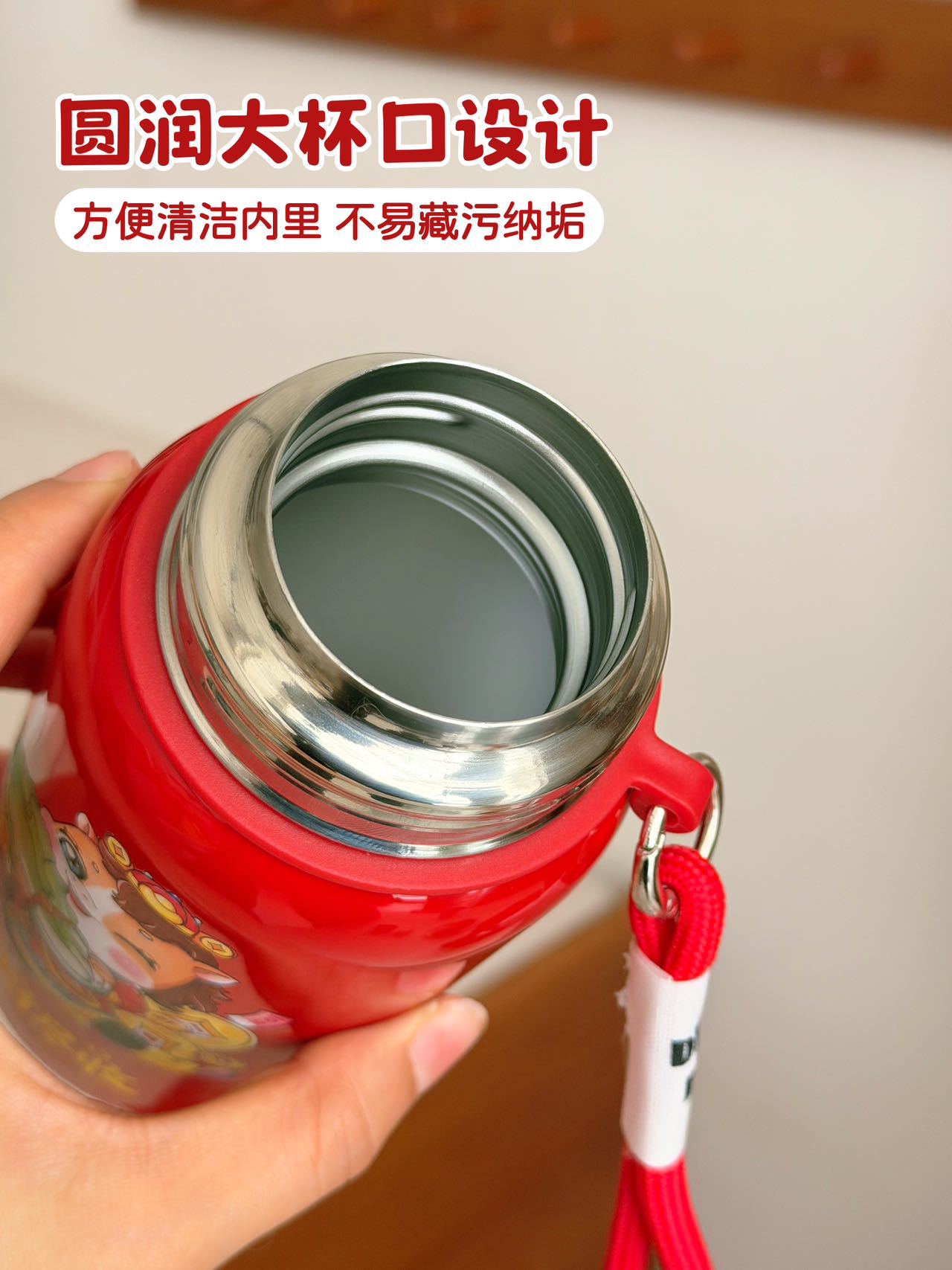 国潮风316不锈钢保温杯女高颜值带提绳大容量便携运动水杯子礼品