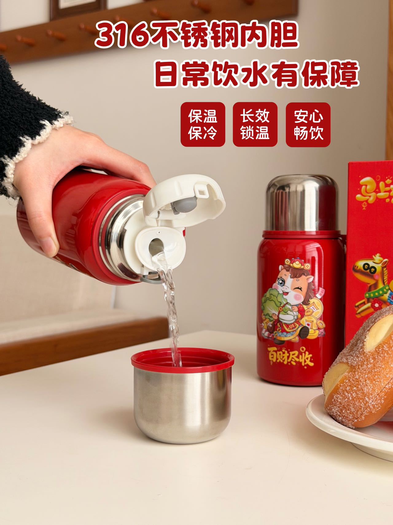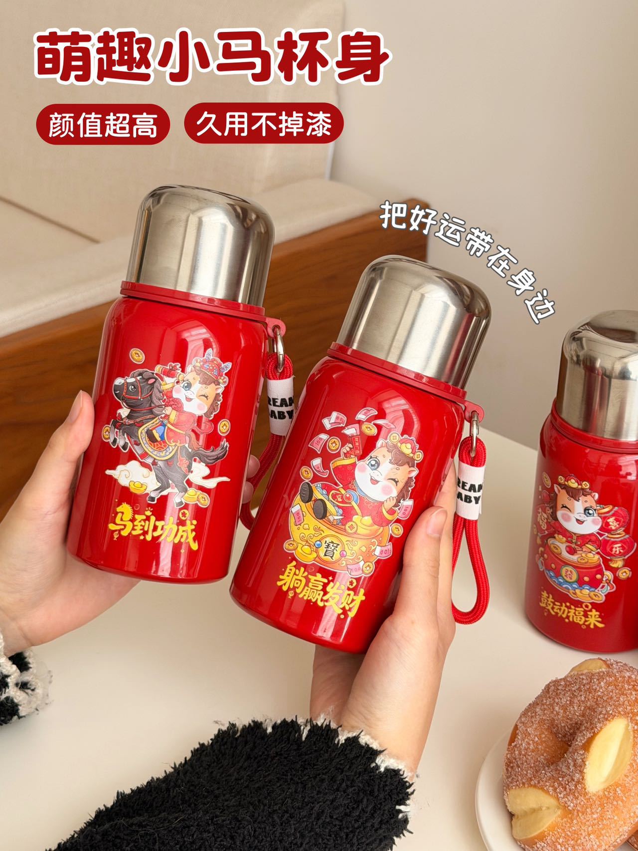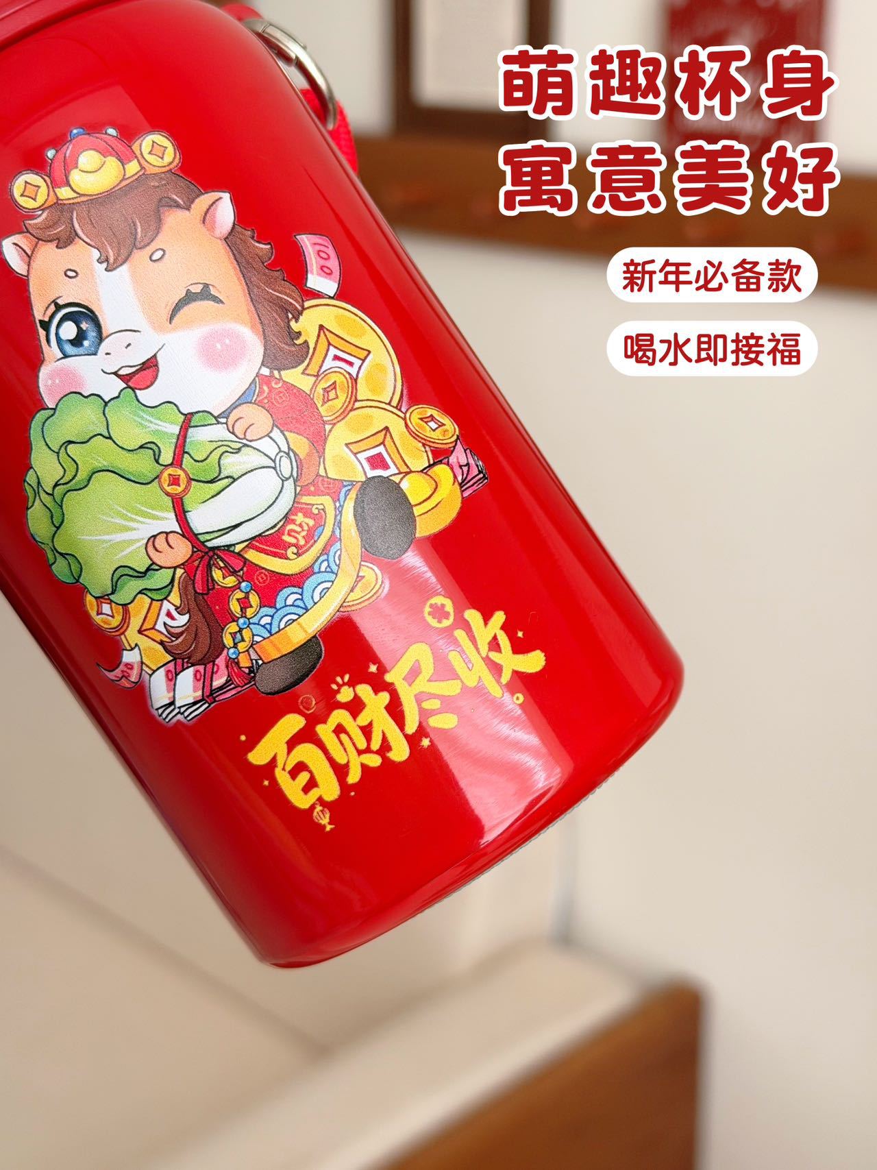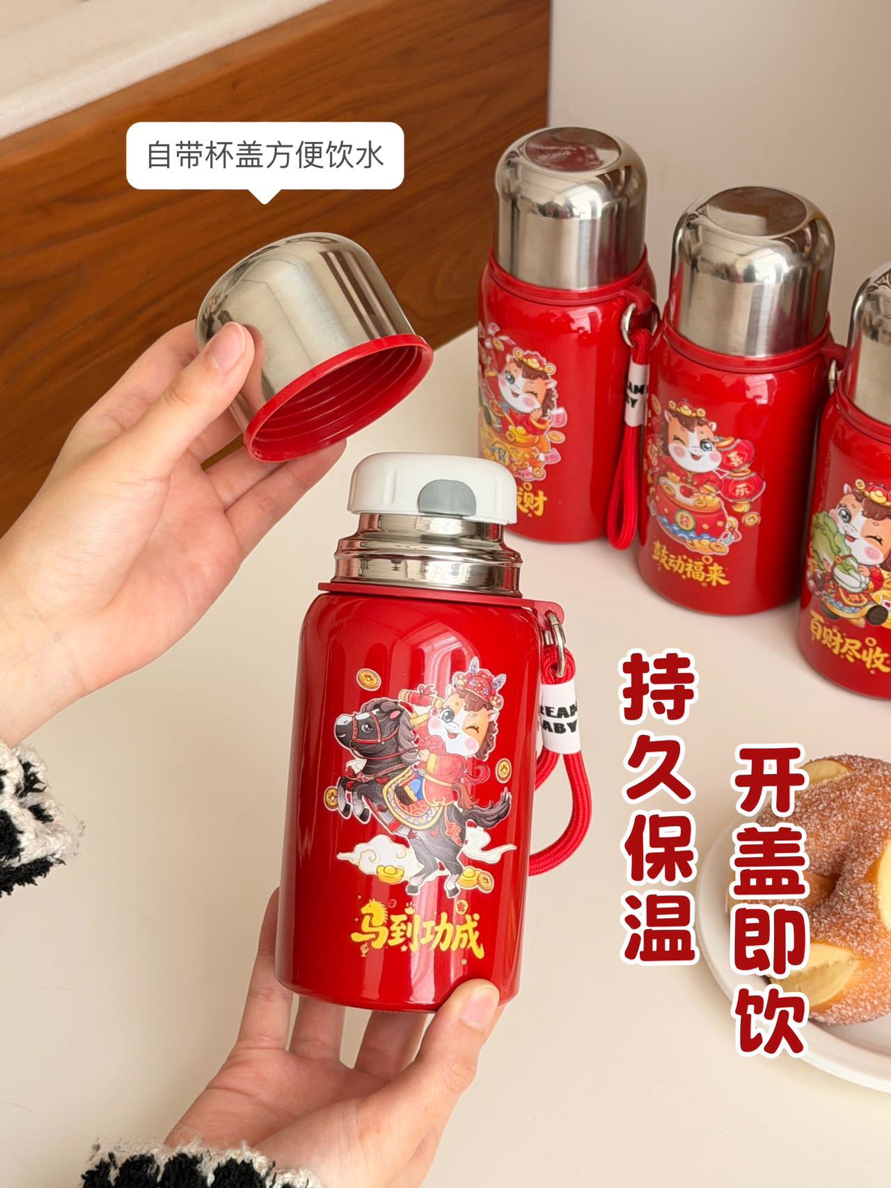 国潮风316不锈钢保温杯女高颜值带提绳大容量便携运动水杯子礼品
