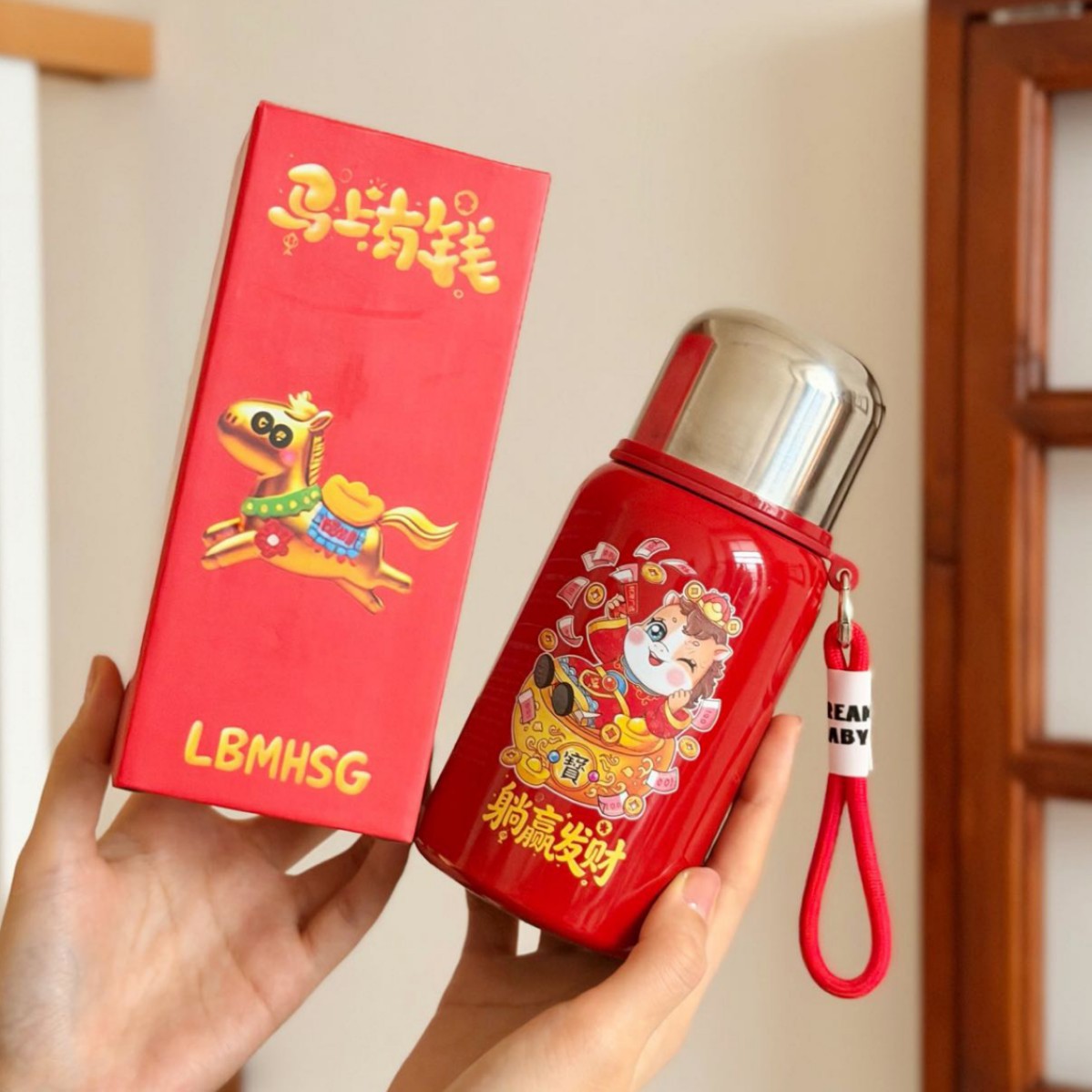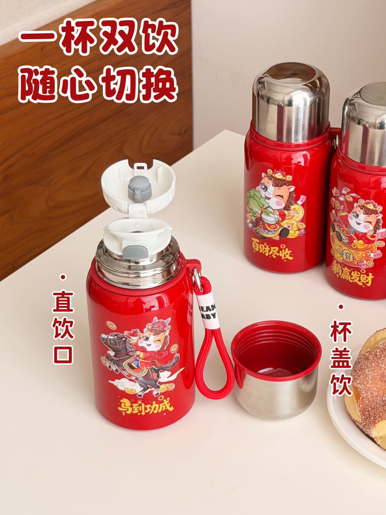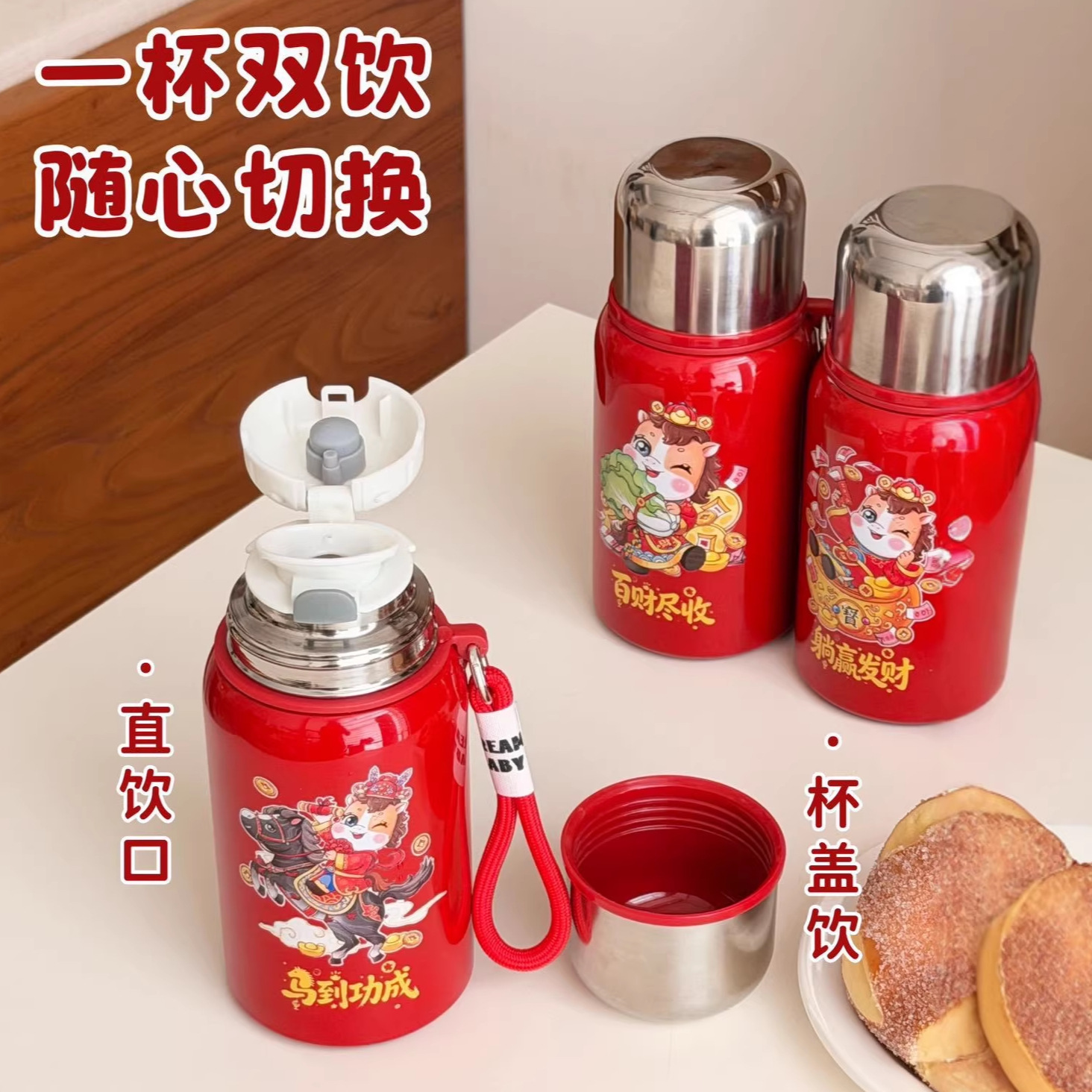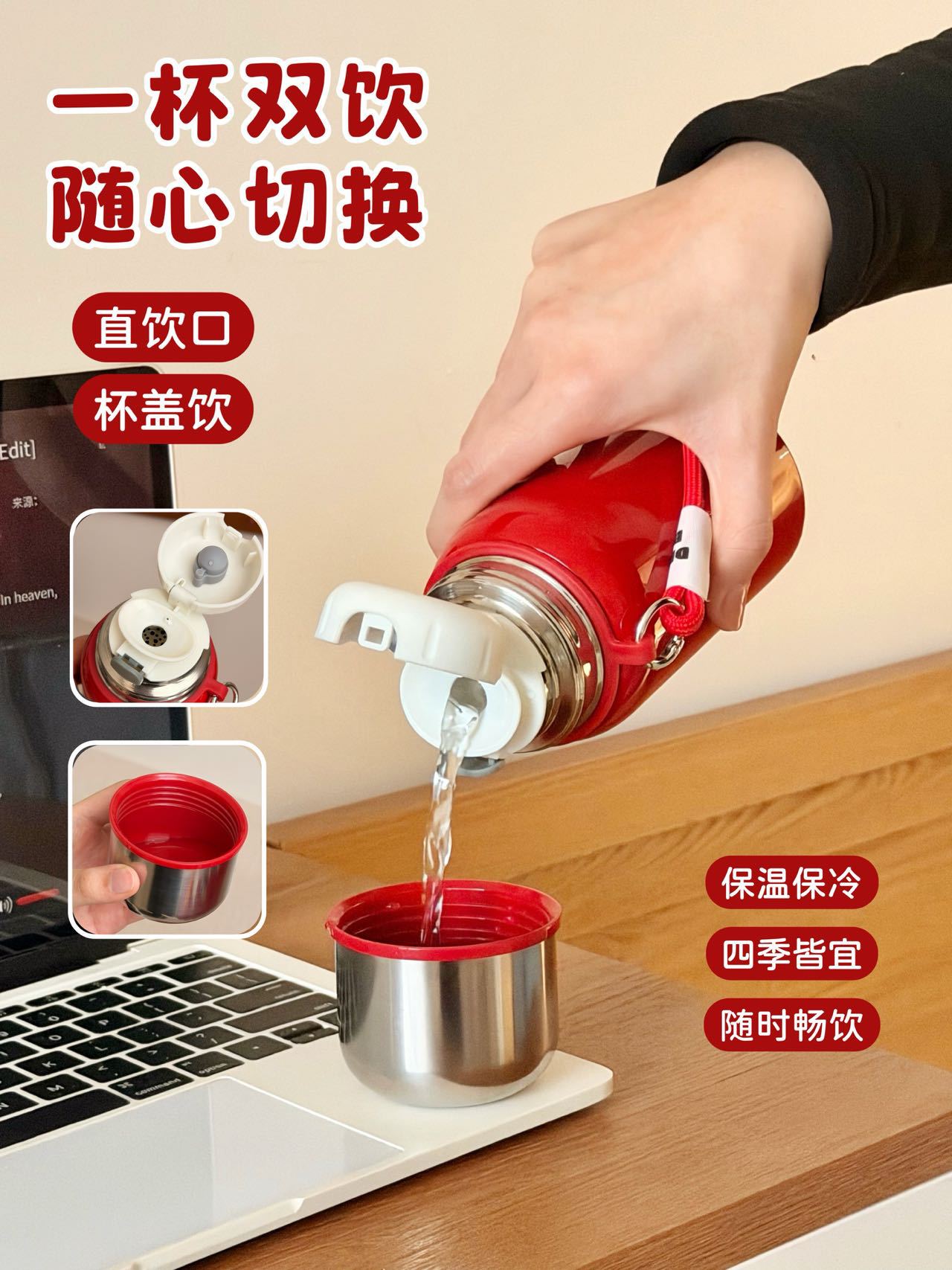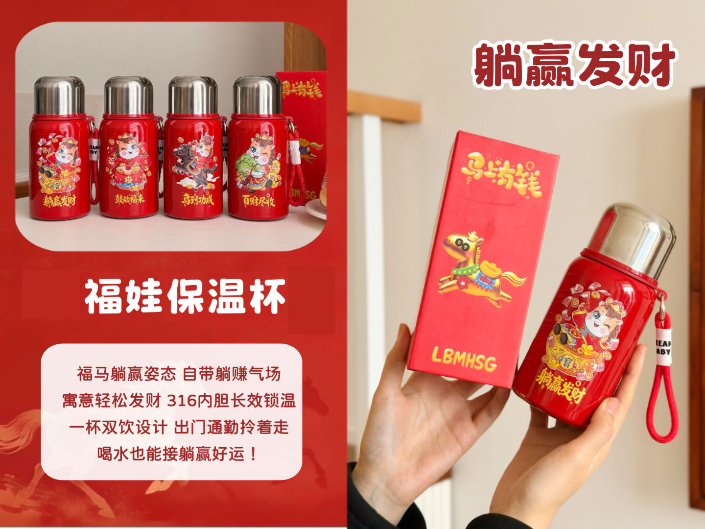 国潮风316不锈钢保温杯女高颜值带提绳大容量便携运动水杯子礼品