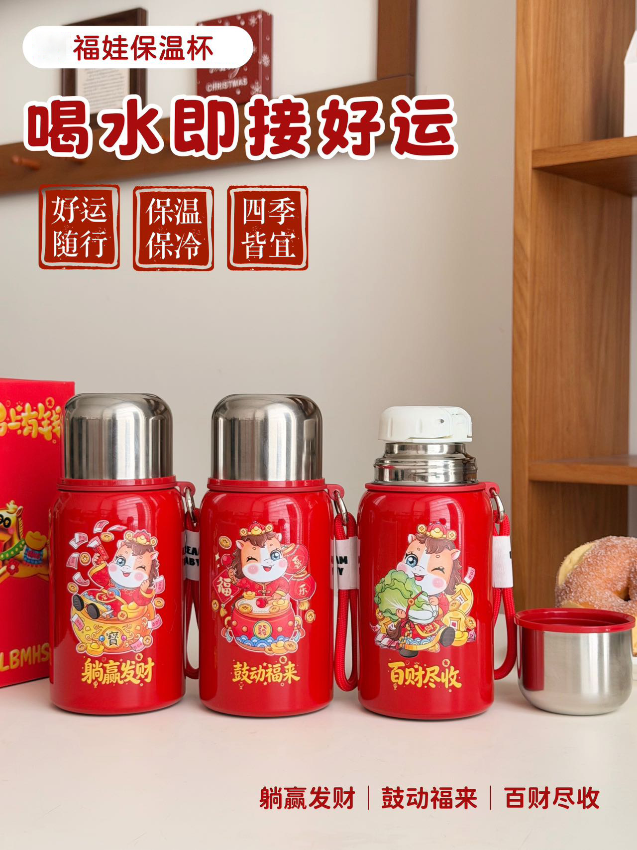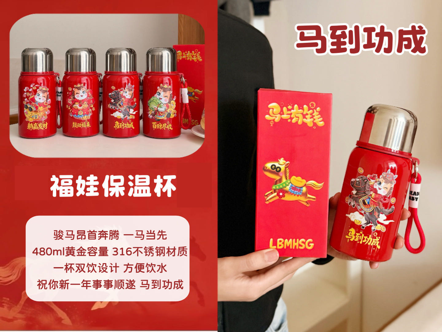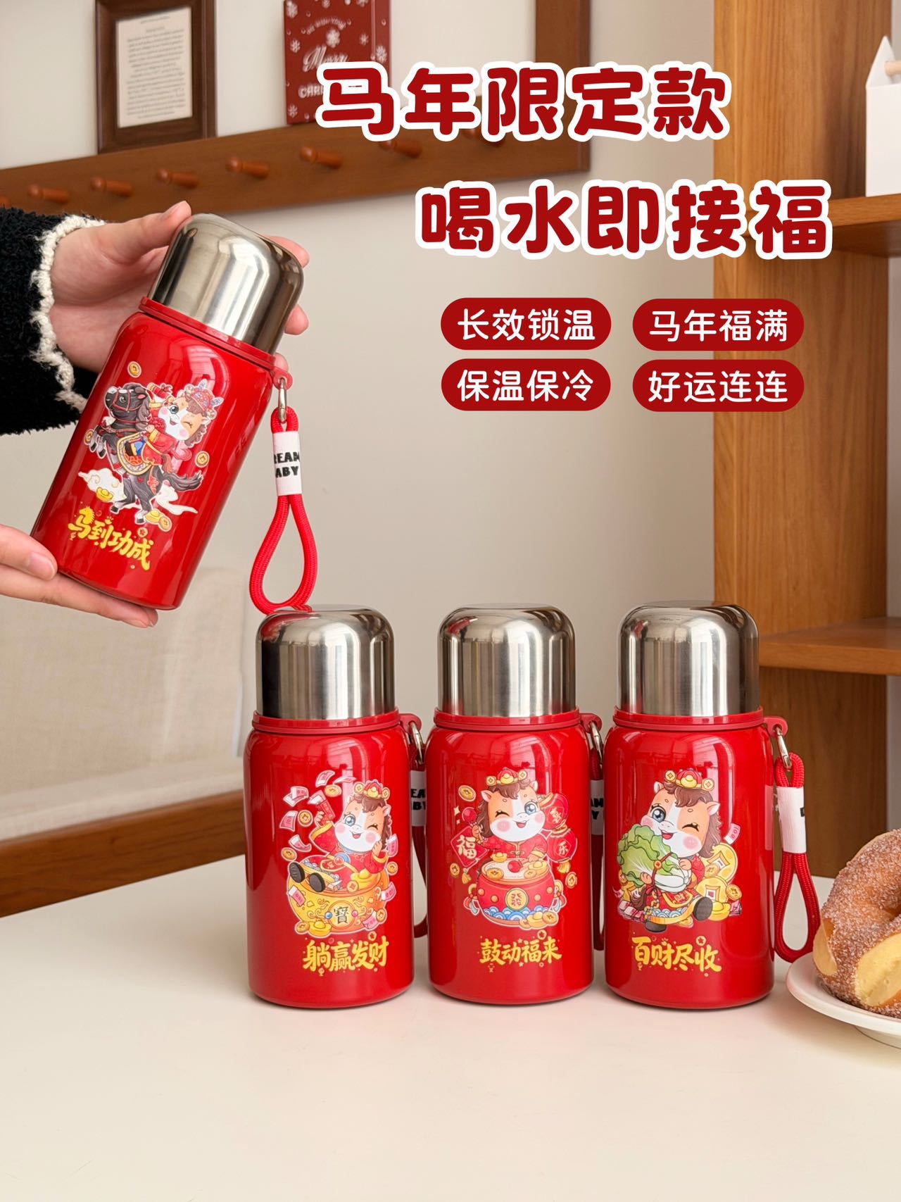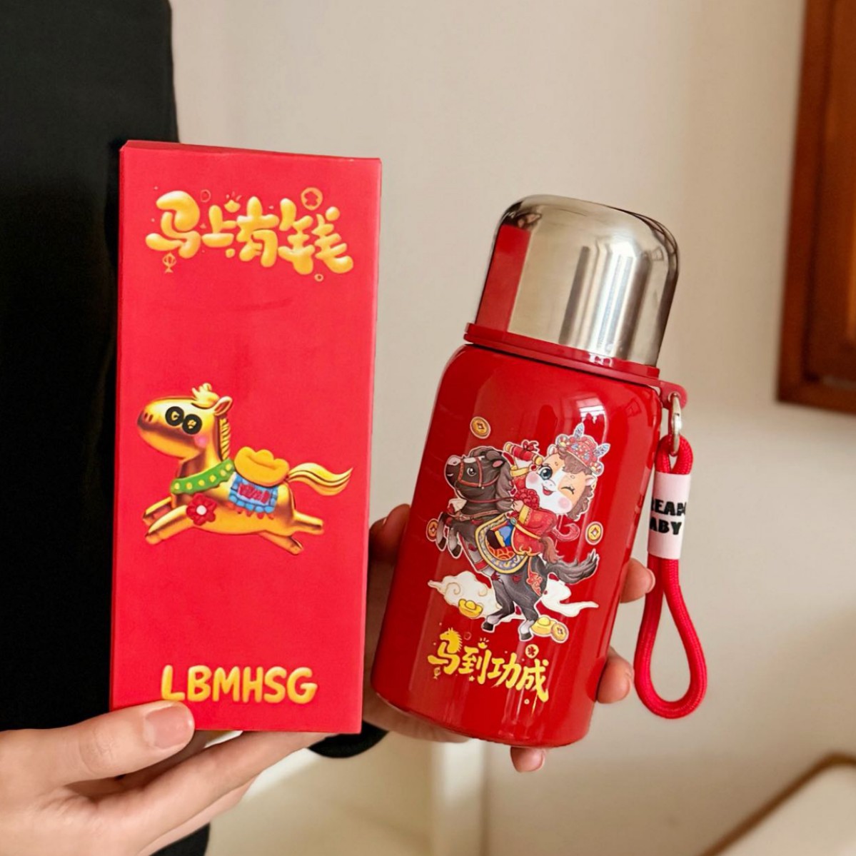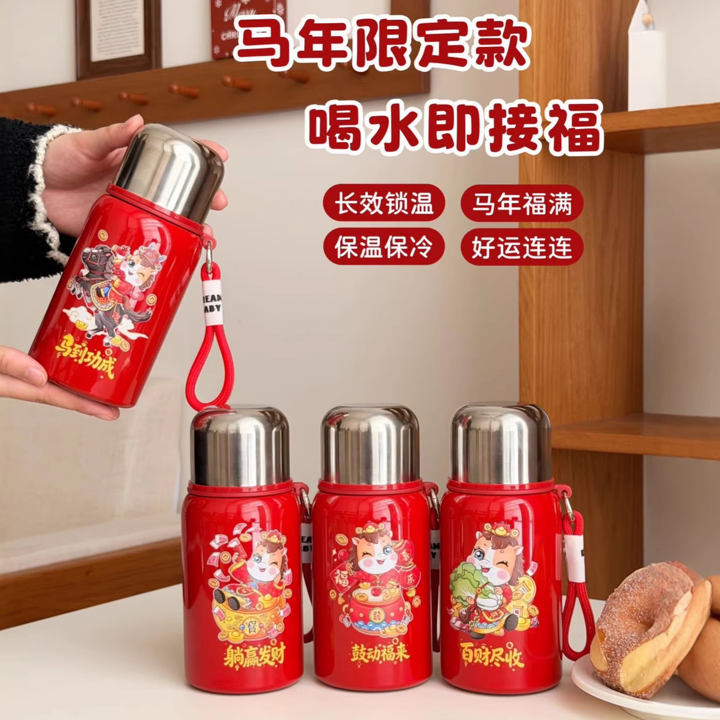 国潮风316不锈钢保温杯女高颜值带提绳大容量便携运动水杯子礼品