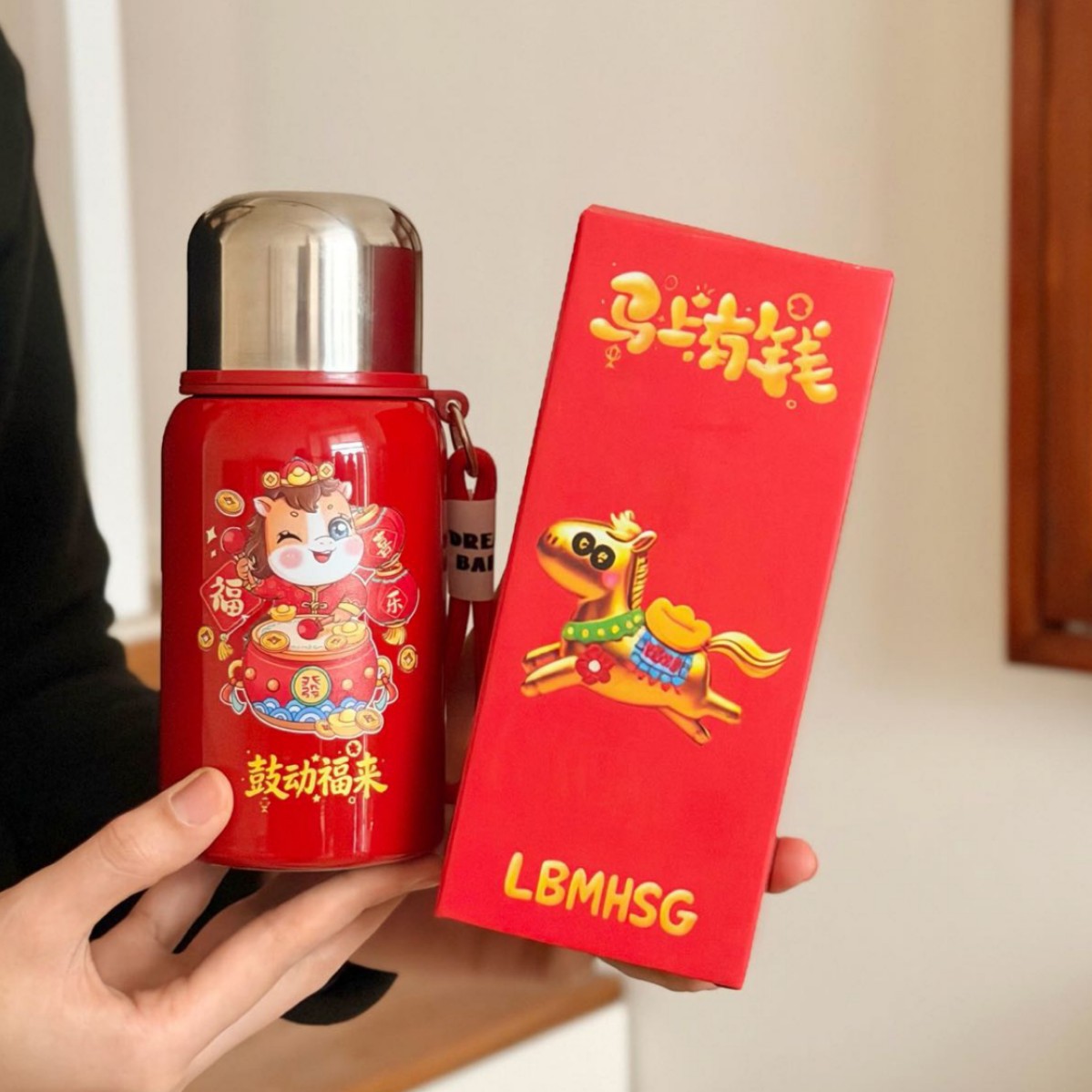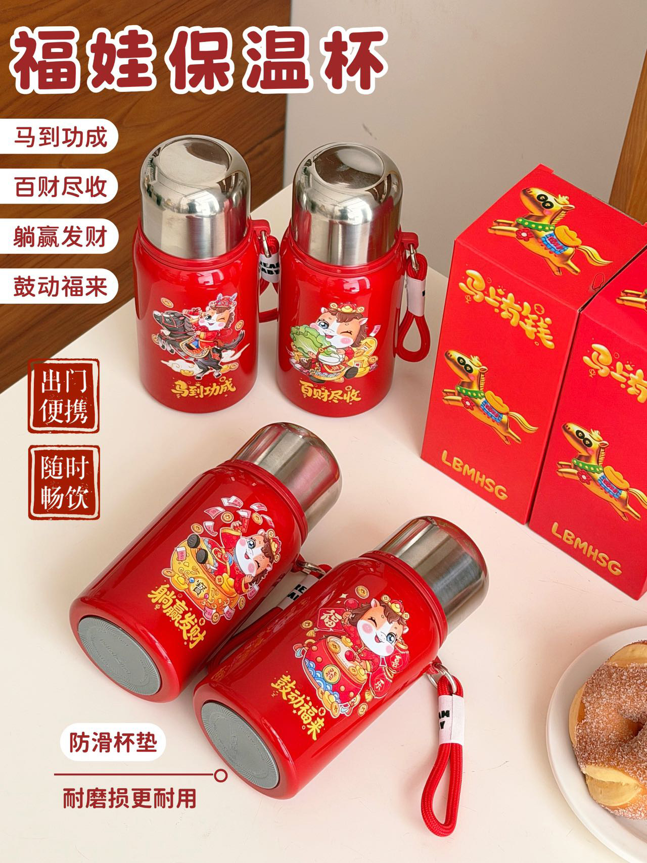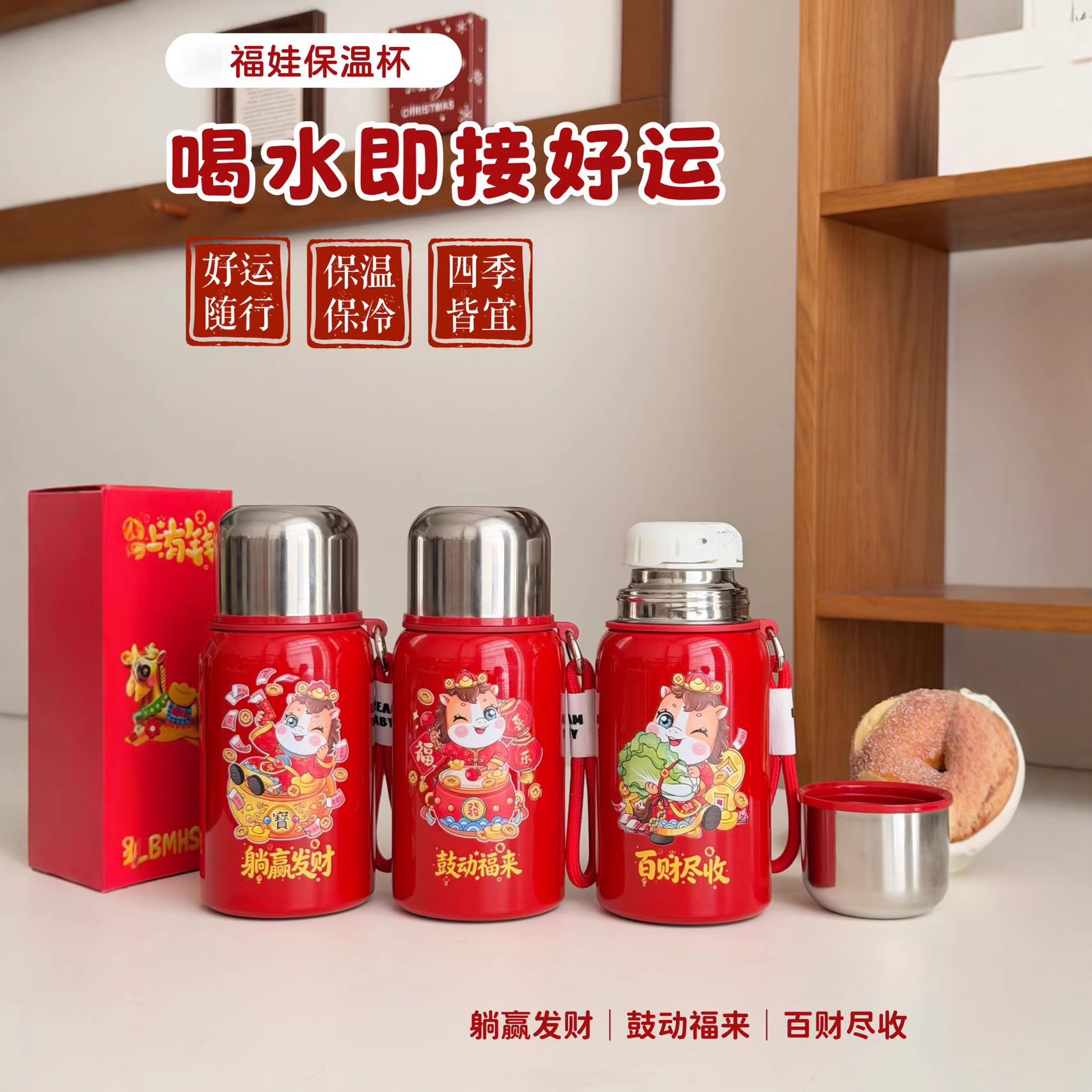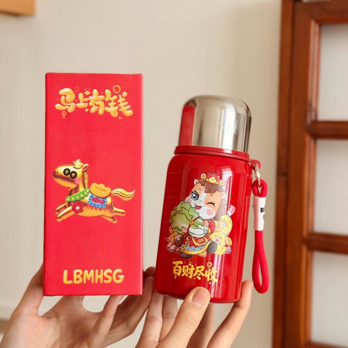 国潮风316不锈钢保温杯女高颜值带提绳大容量便携运动水杯子礼品
