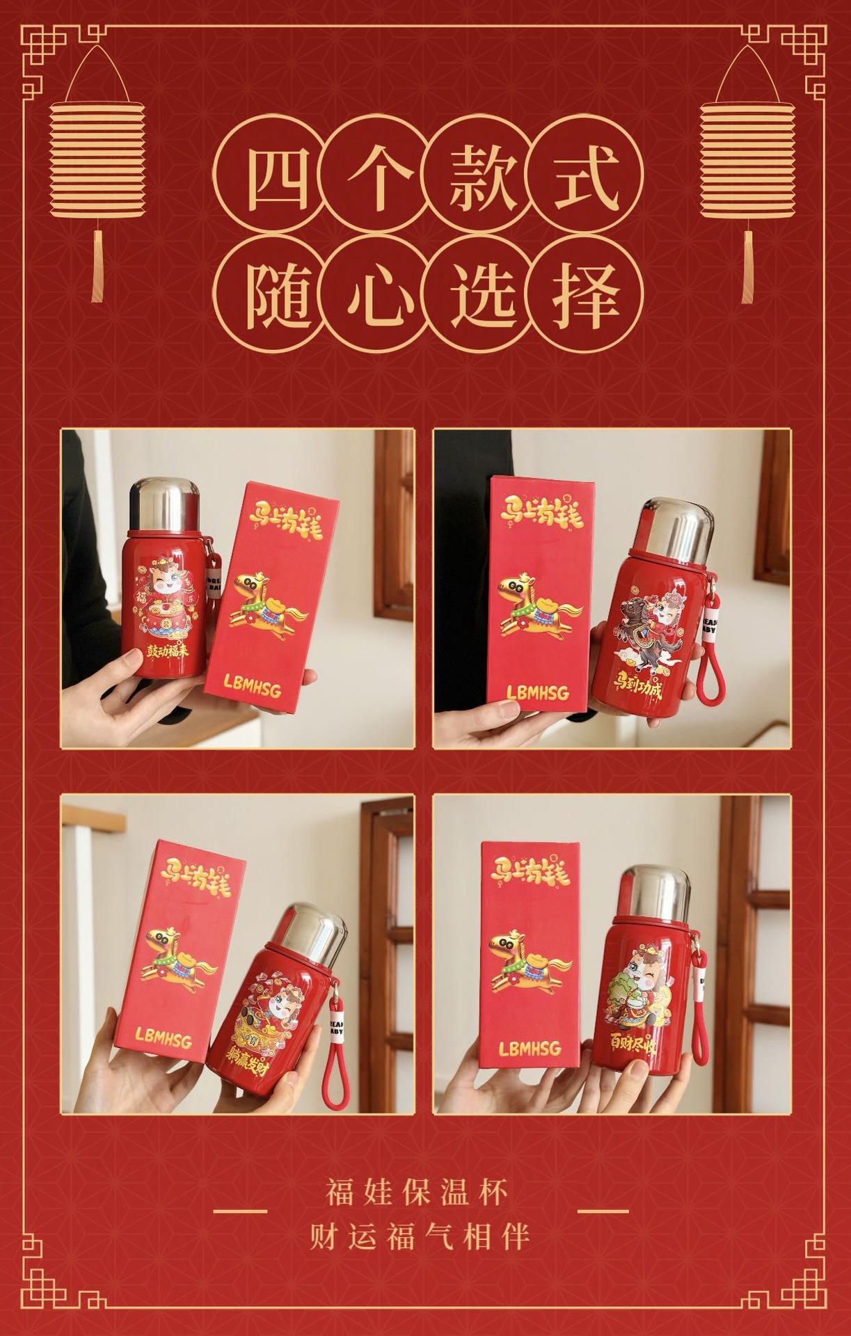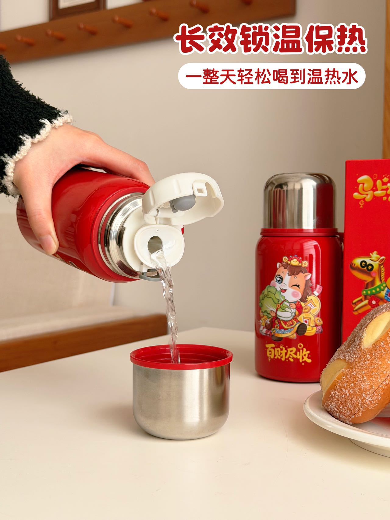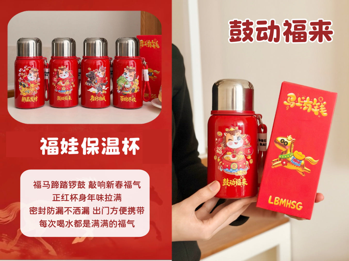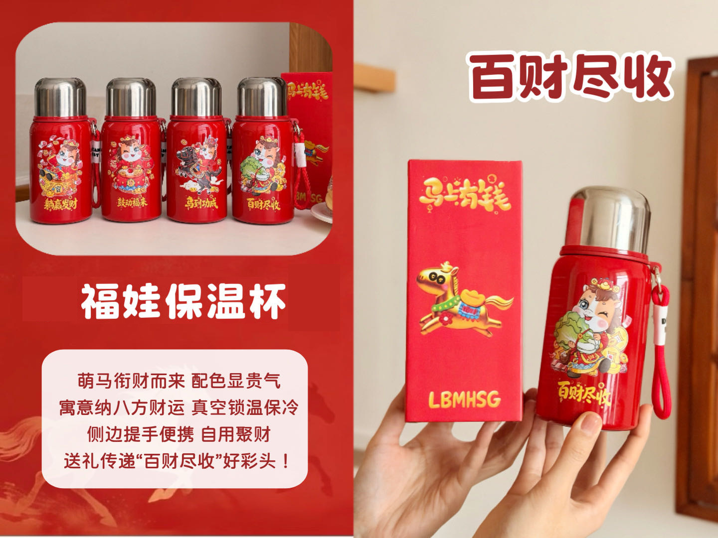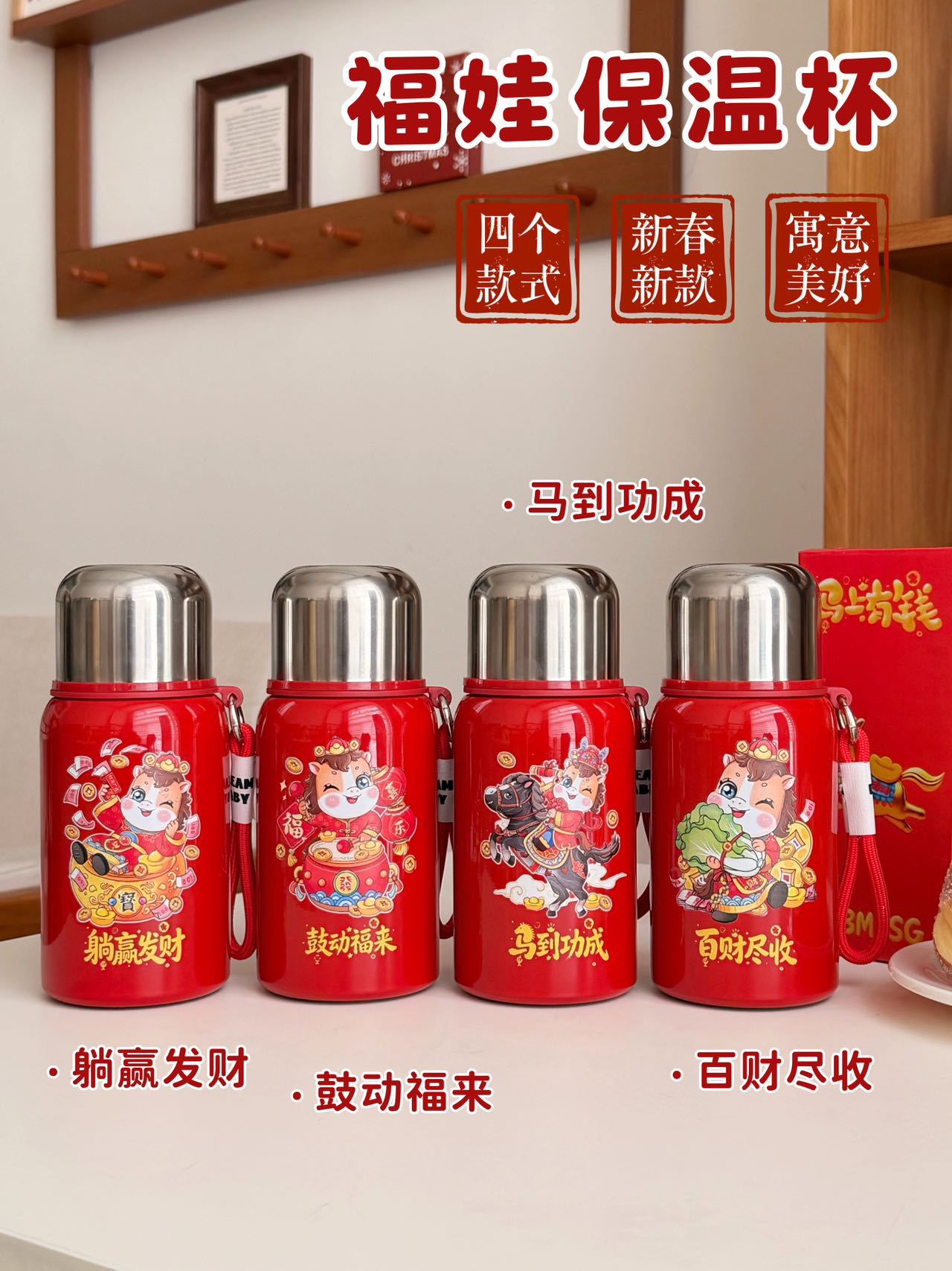 国潮风316不锈钢保温杯女高颜值带提绳大容量便携运动水杯子礼品