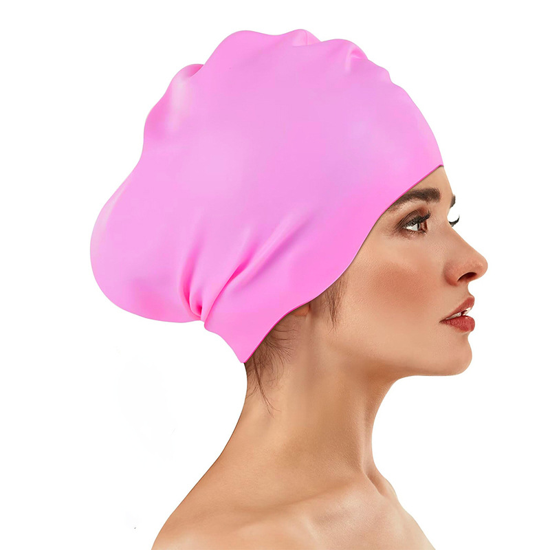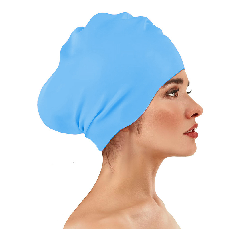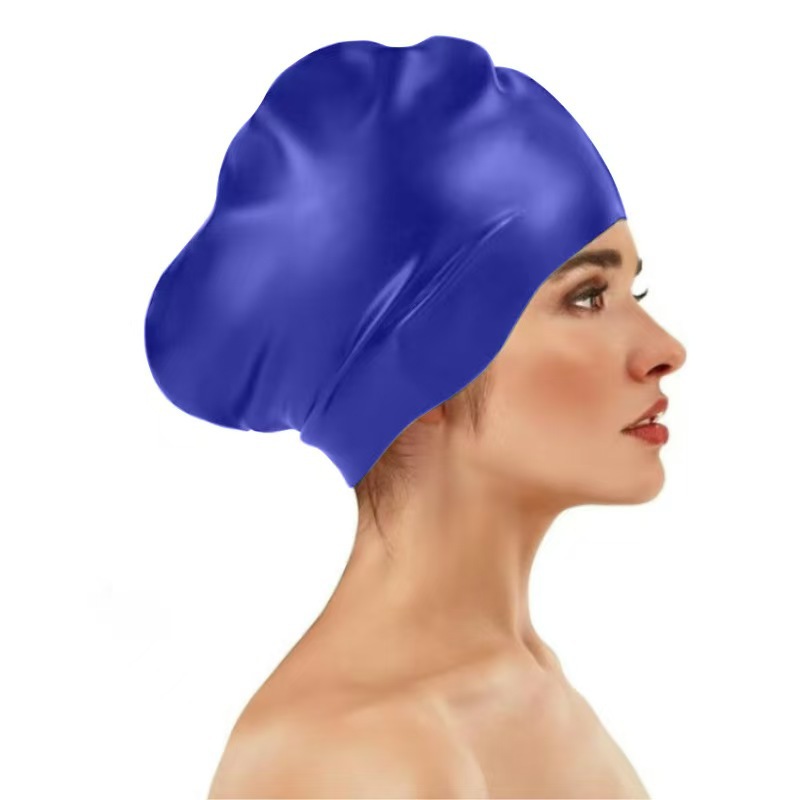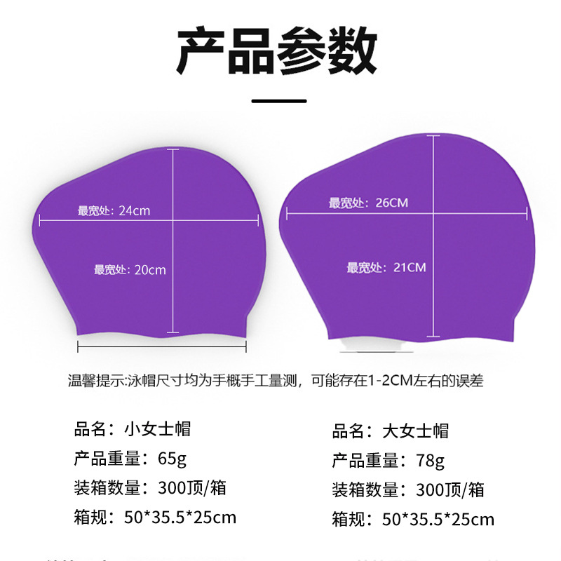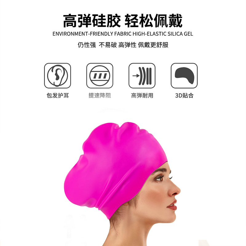 跨境加大款硅胶泳帽女士长发游泳帽纯色护耳高弹不勒头浴帽护发帽