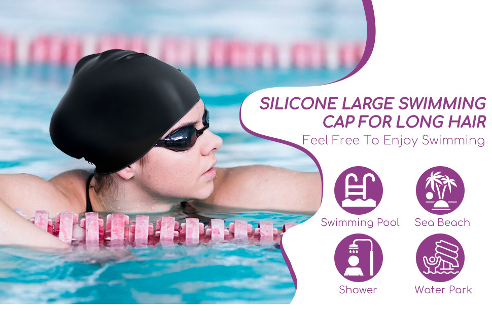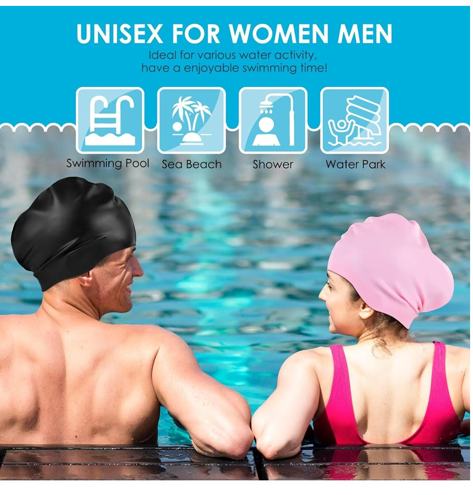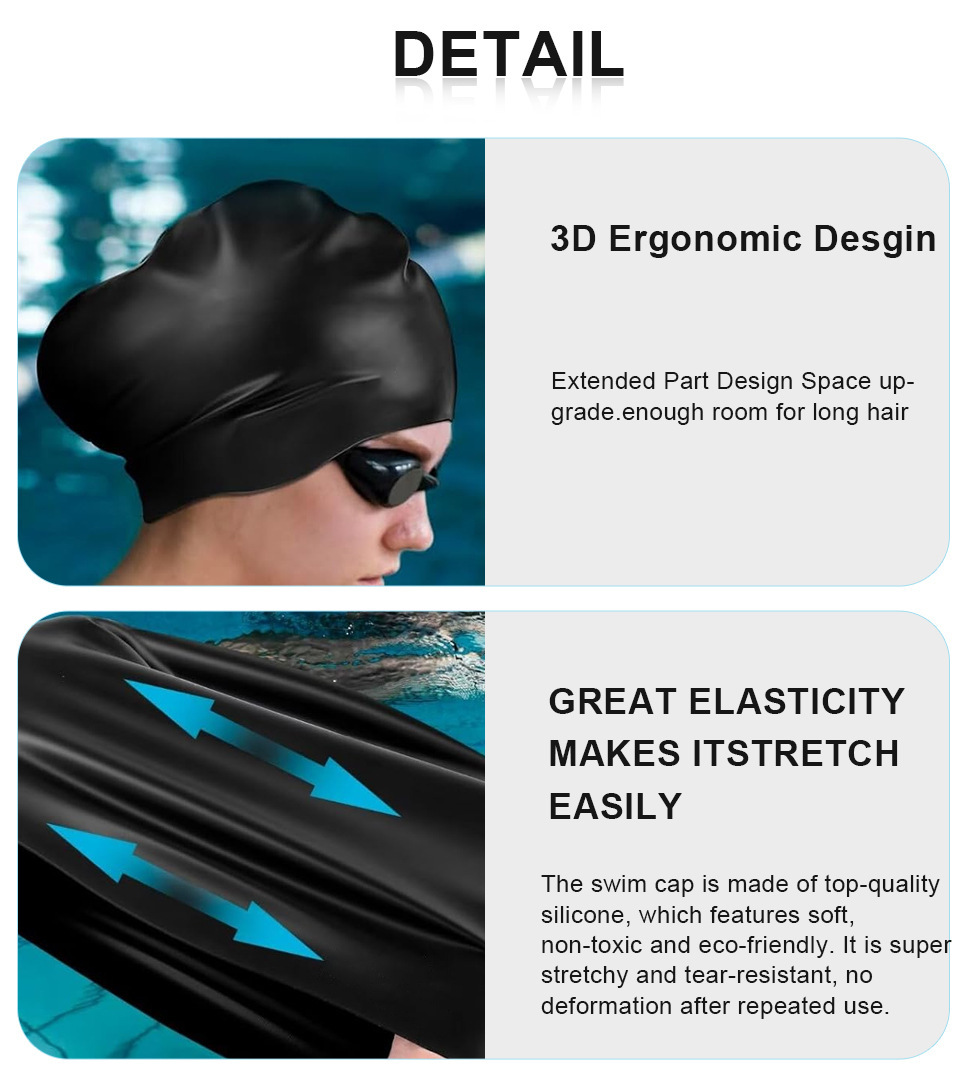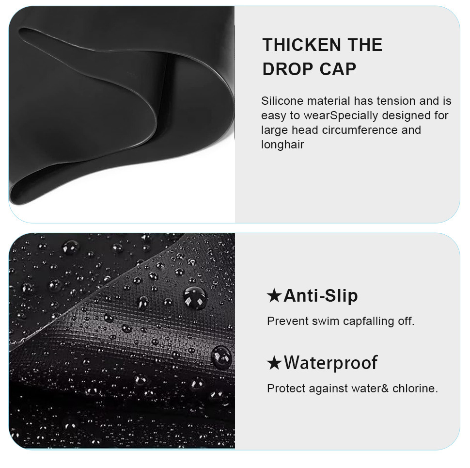 跨境加大款硅胶泳帽女士长发游泳帽纯色护耳高弹不勒头浴帽护发帽