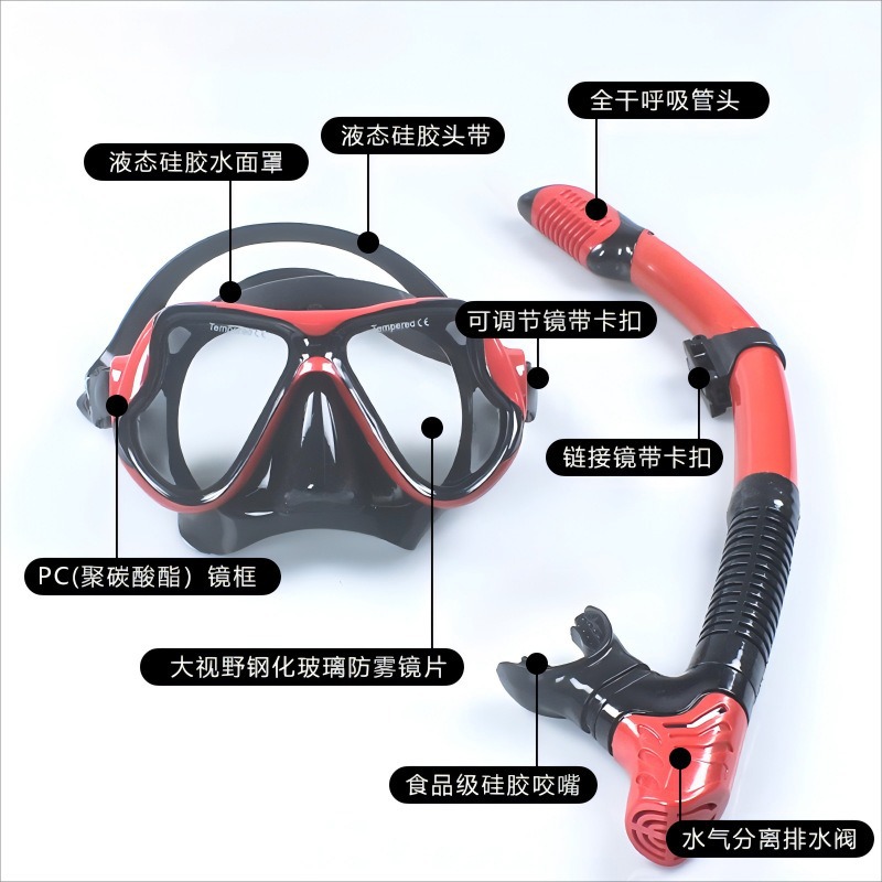 专业浮潜套装成人防雾潜水面罩全干式呼吸管自由潜面镜厂家批发