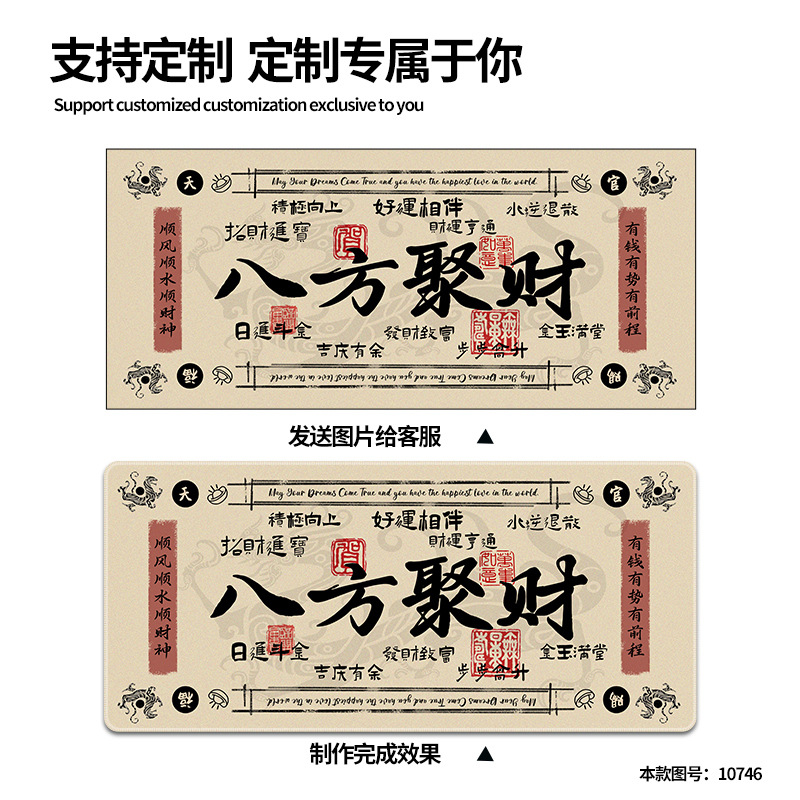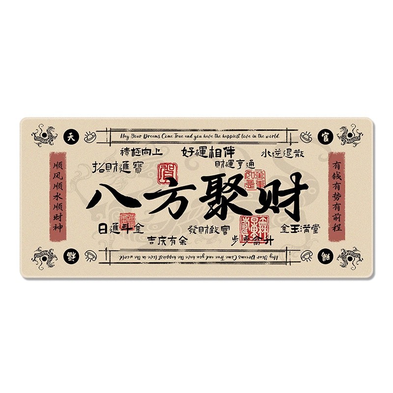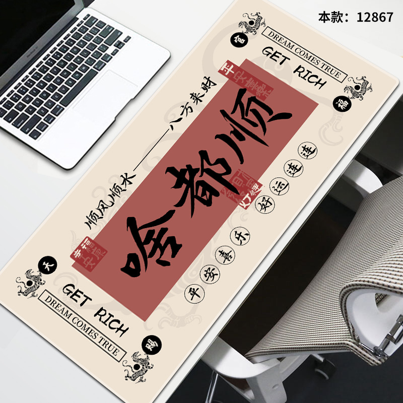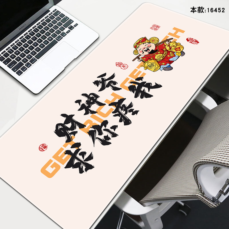 创意发财鼠标垫超大号暴富文字办公电脑桌垫加厚防滑键盘垫可定制