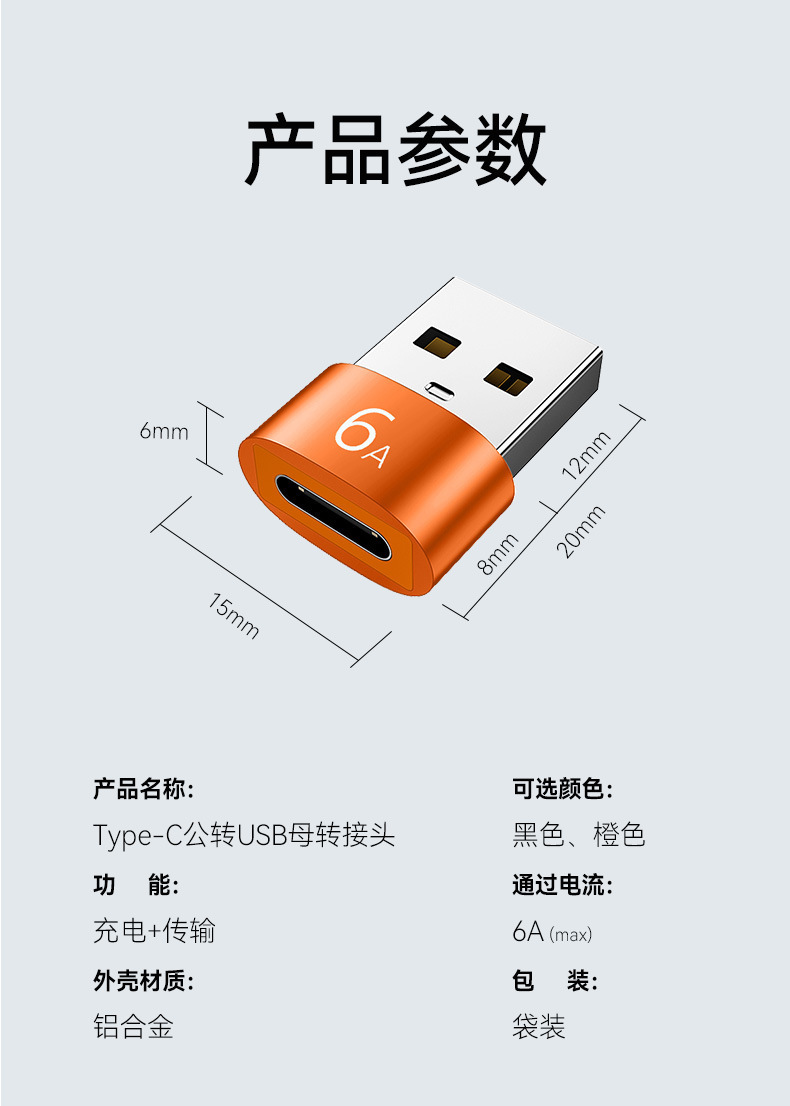 适用华为type-c母转USB2.0手机转接头车载充电转接器OTG转换头tpc