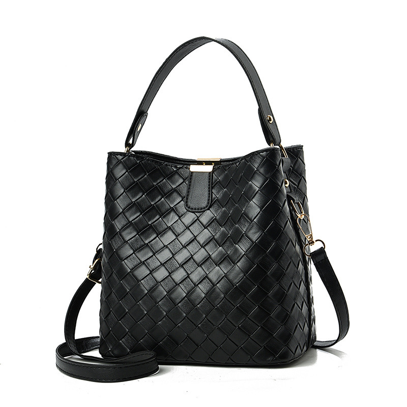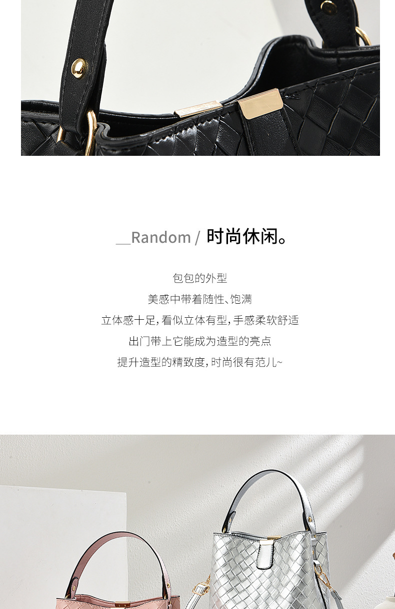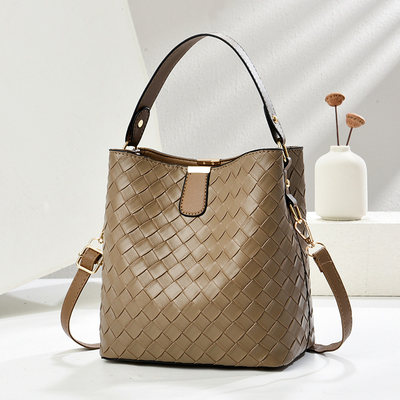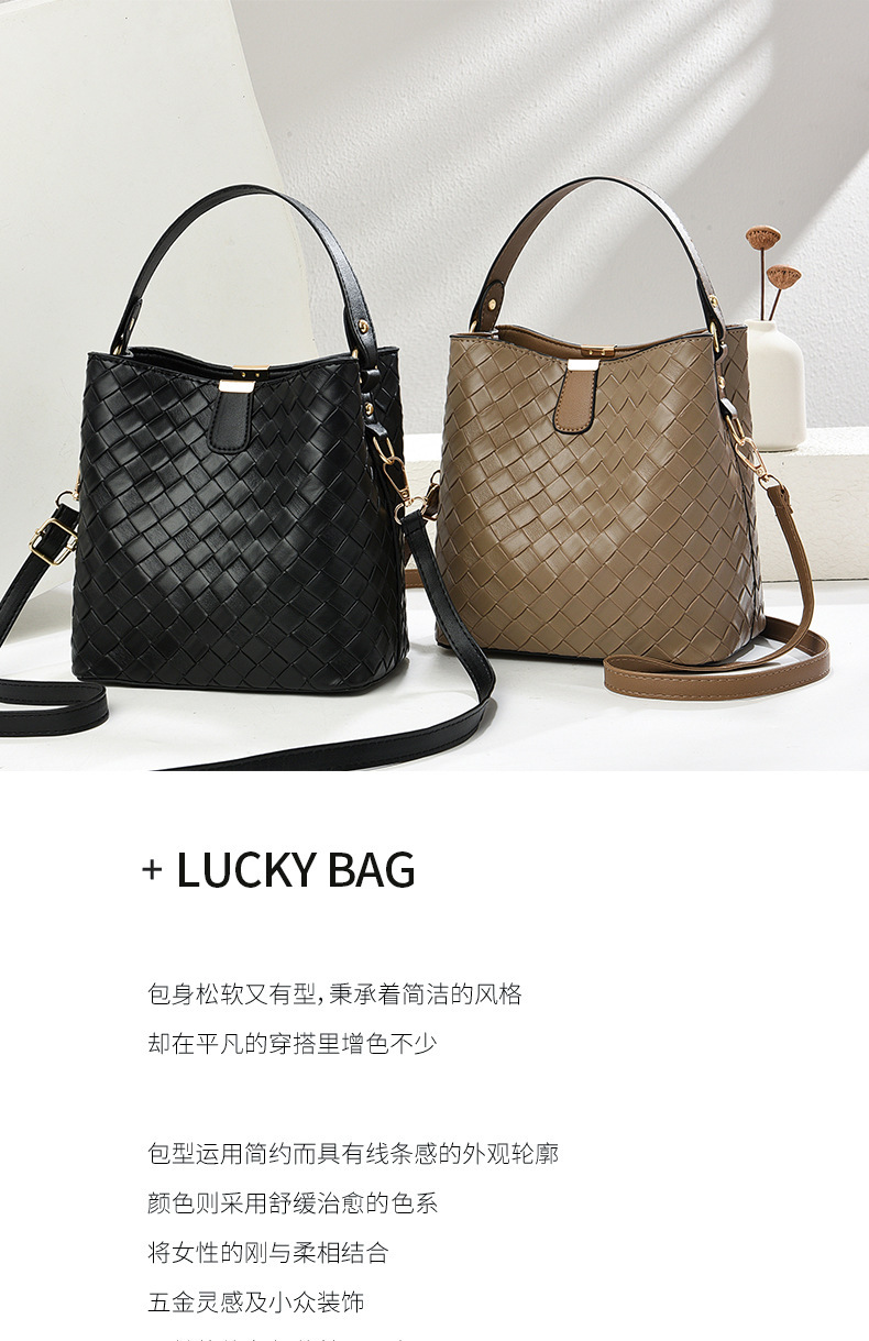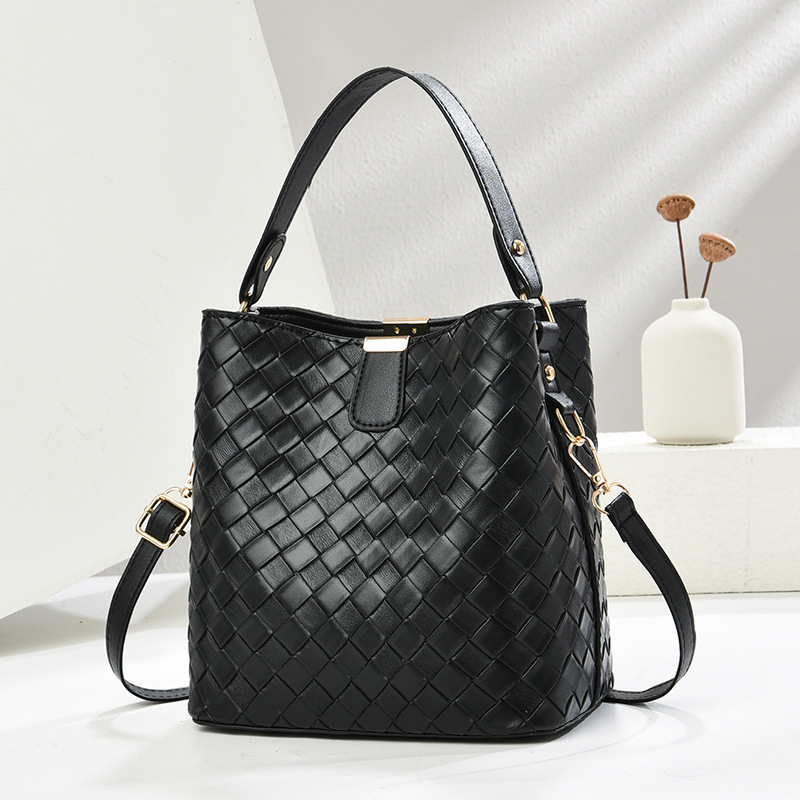 韩版潮流编织包休闲百搭手提水桶包2025新款复古大容量单肩斜挎包