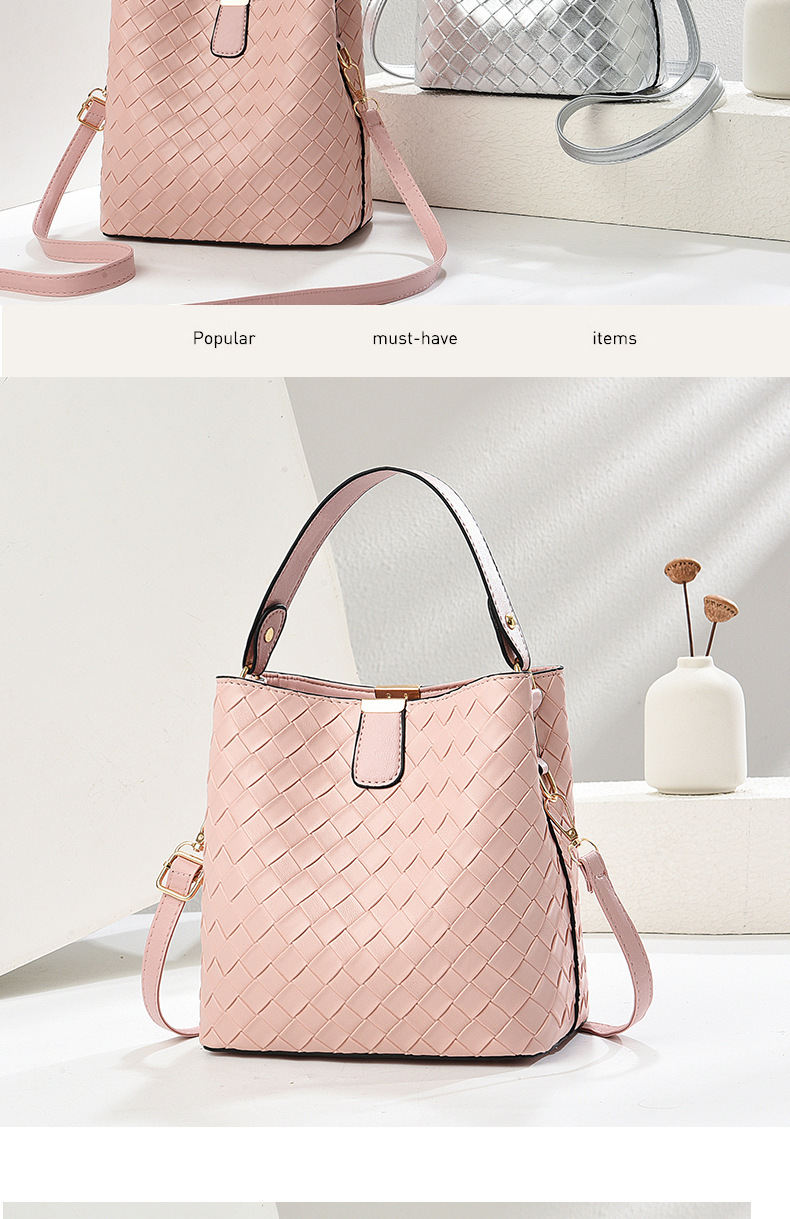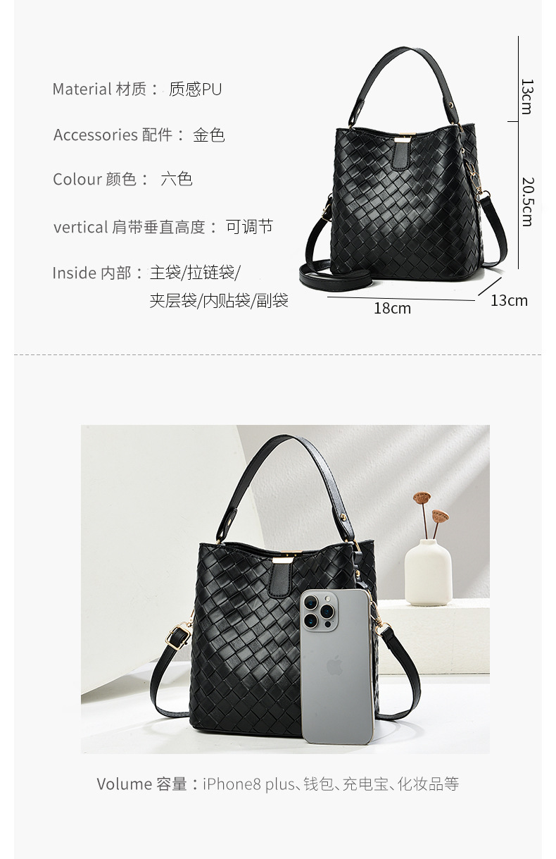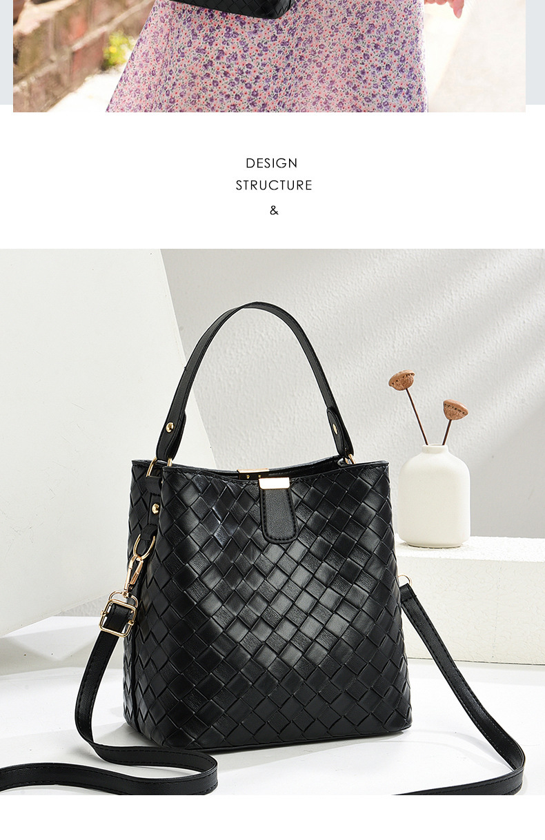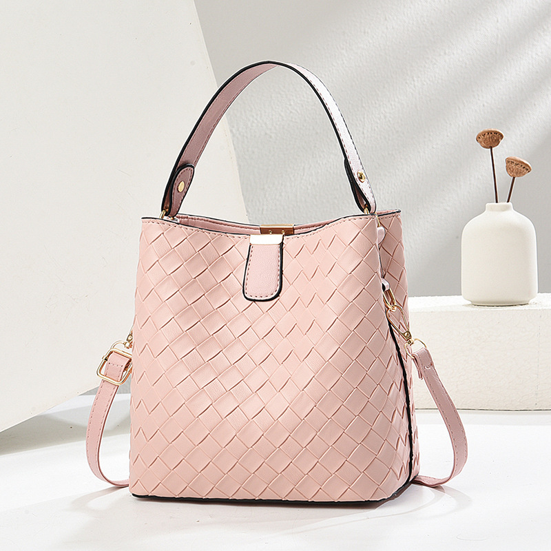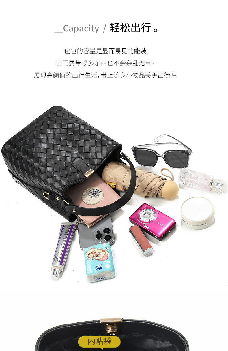 韩版潮流编织包休闲百搭手提水桶包2025新款复古大容量单肩斜挎包