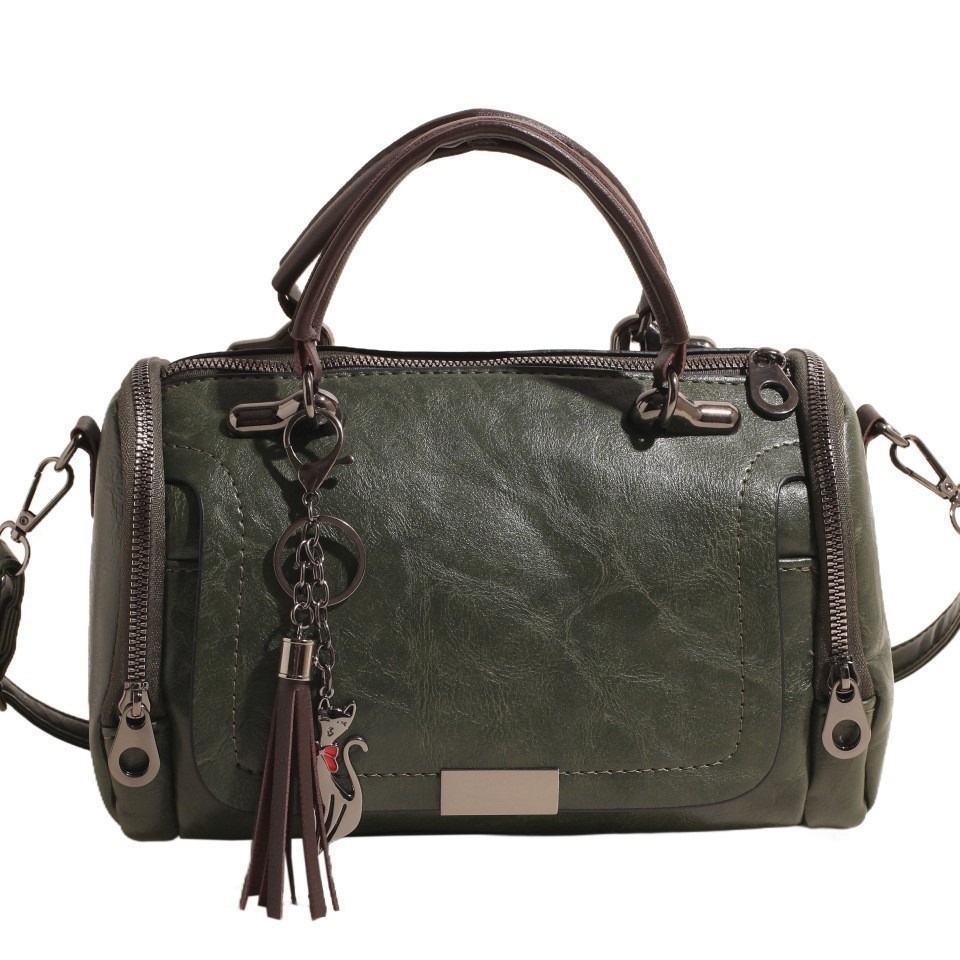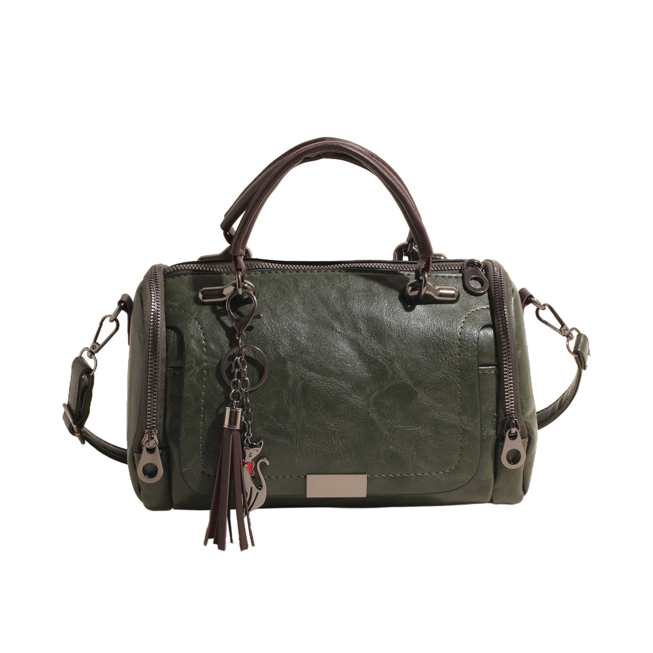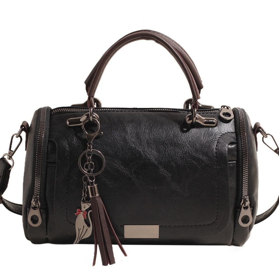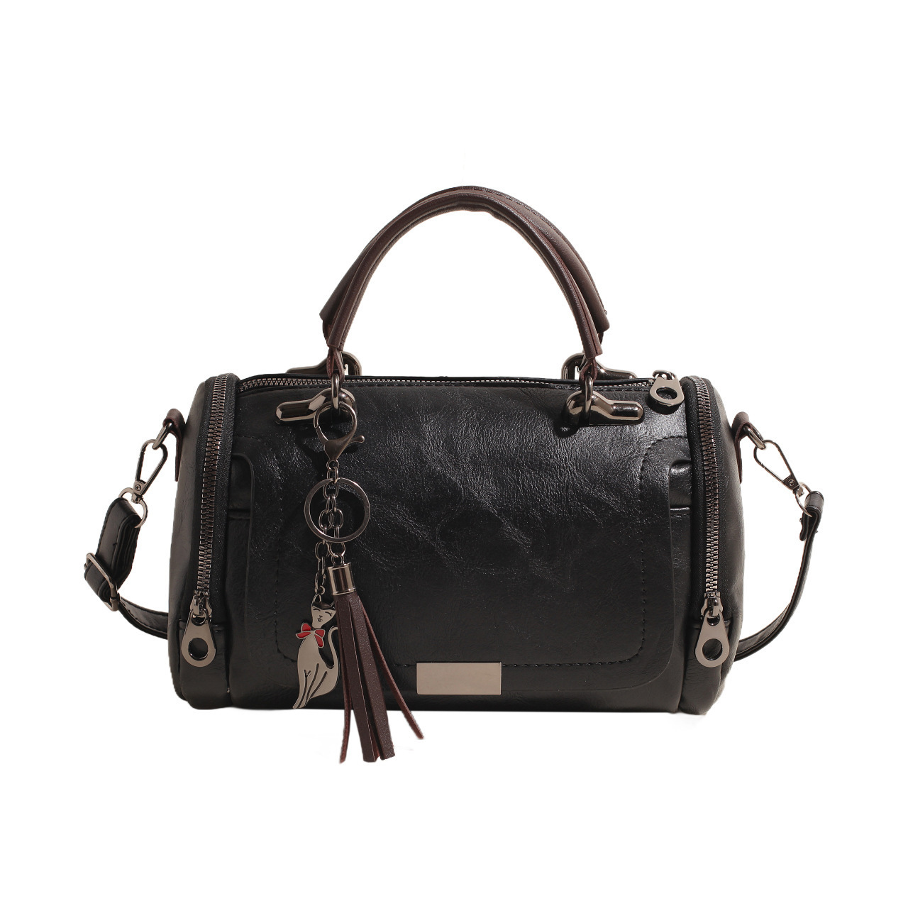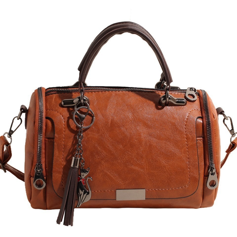 2025新款时尚复古手提包大容量软皮波士顿枕头包流苏挂件女包