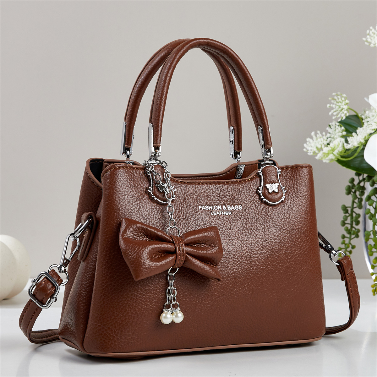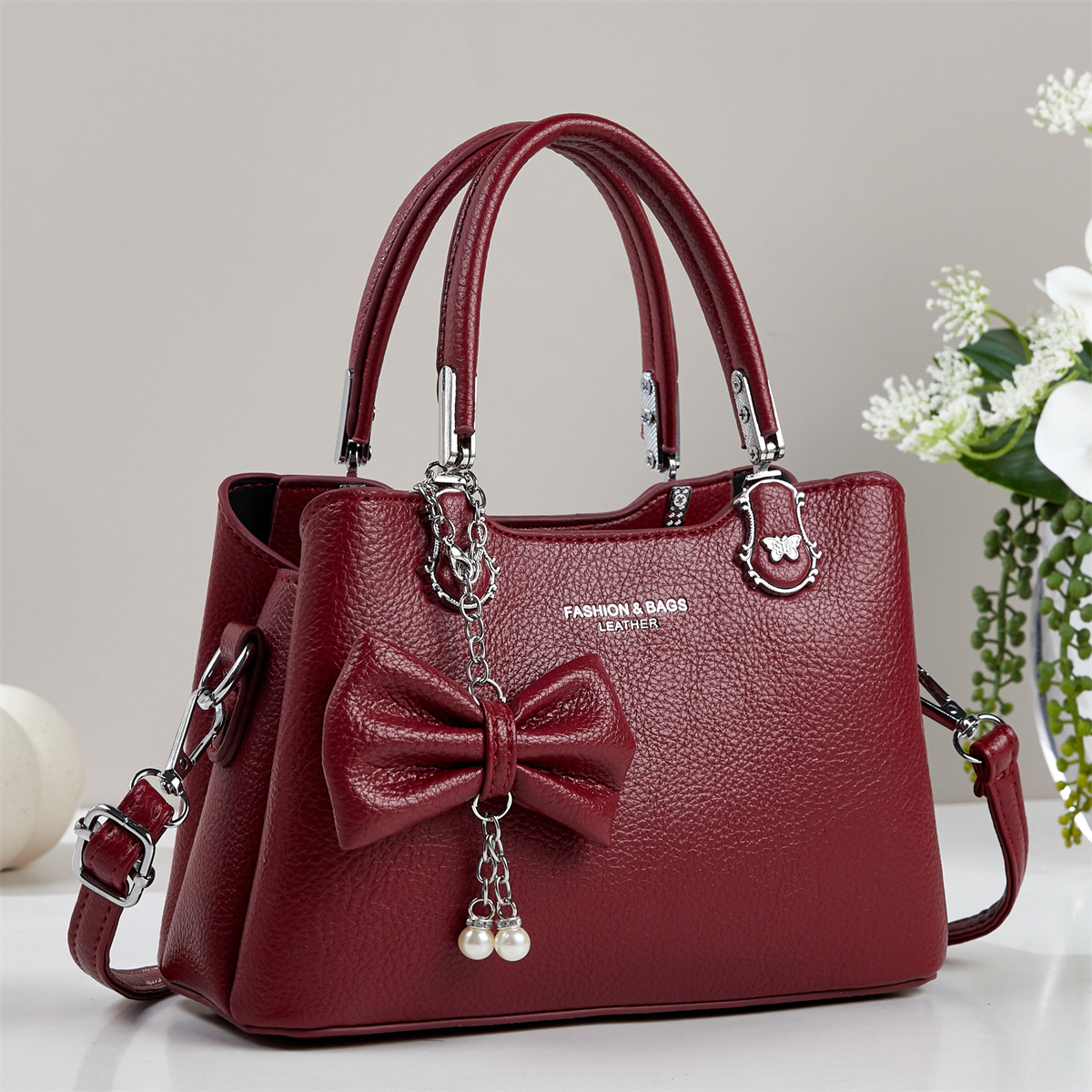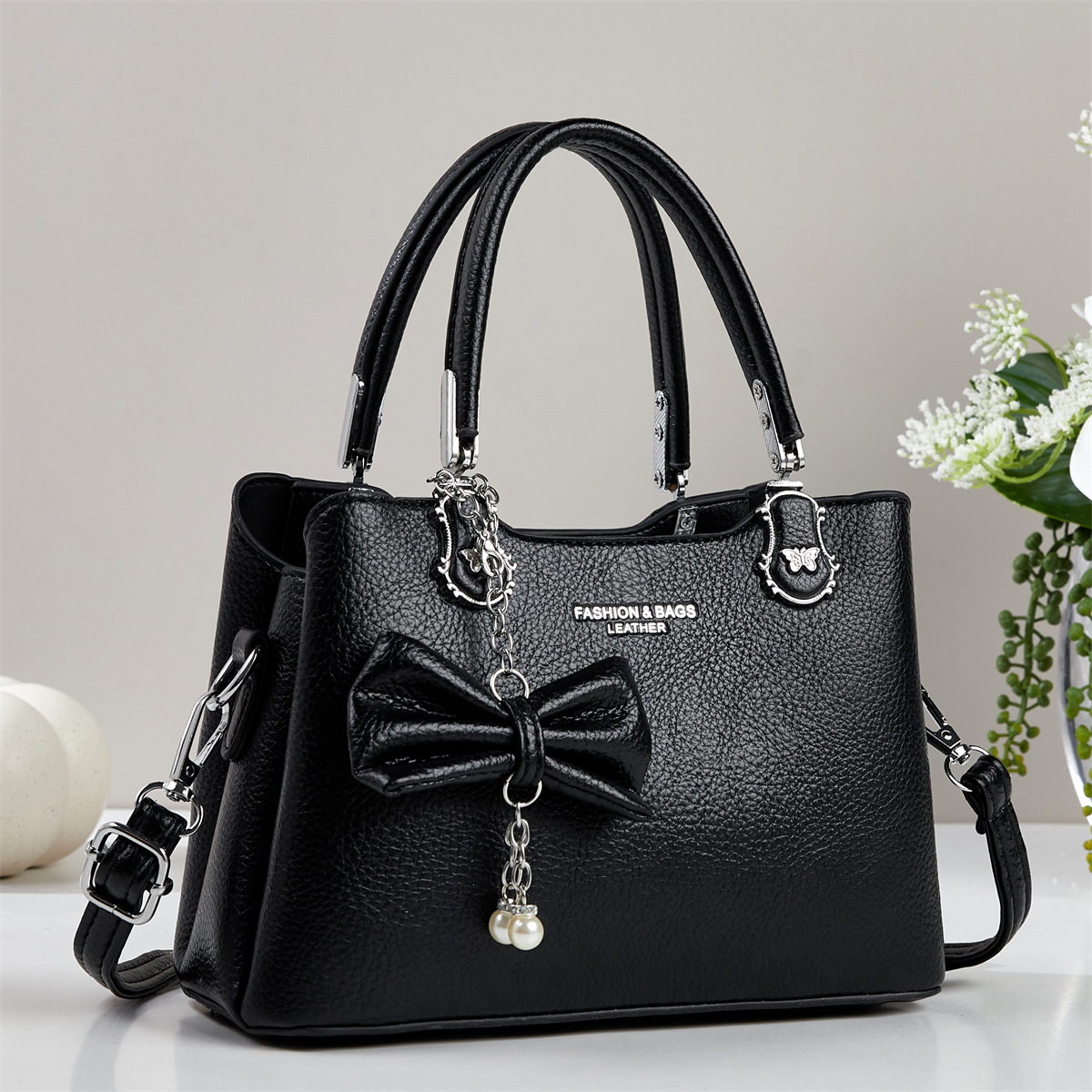 2026新款简约质感荔枝纹蝴蝶结女士手提包跨境时尚气质单肩斜挎包