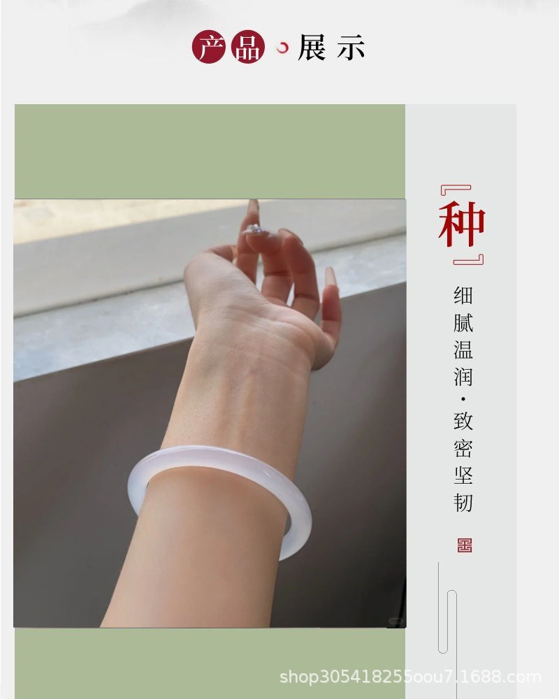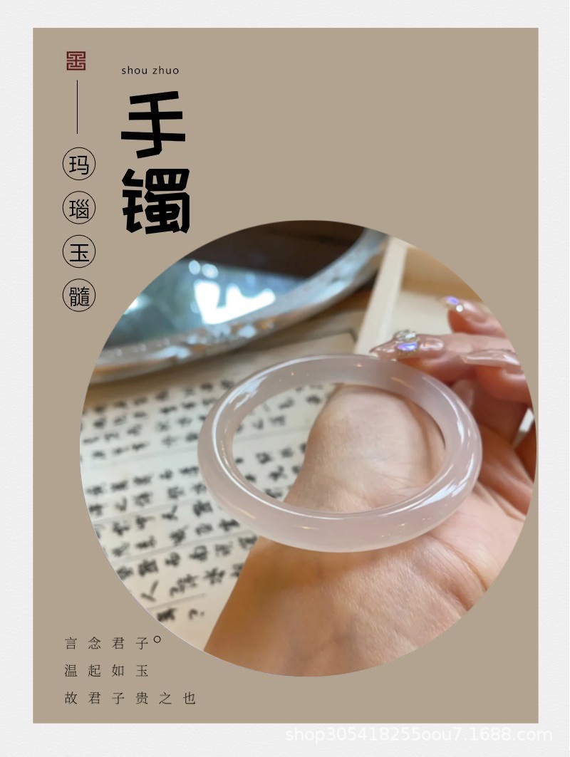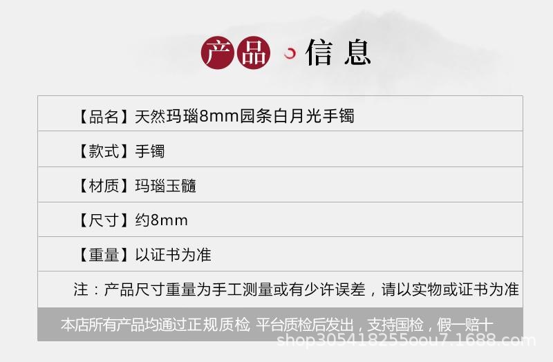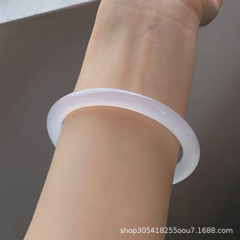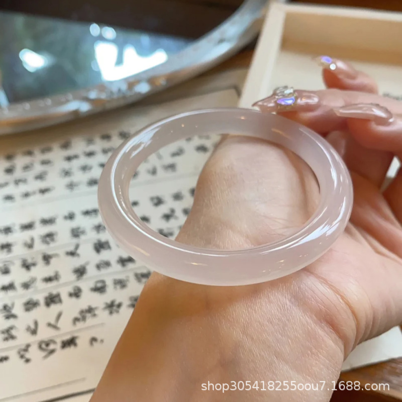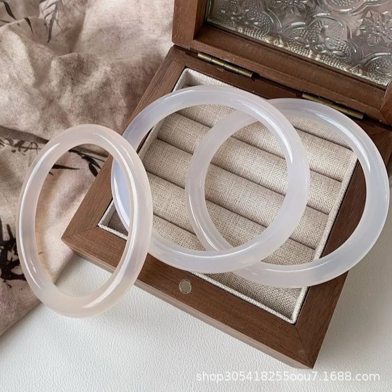 玛瑙玉髓白月光美人条手镯园条8m冰种玉鐲送女友节日礼物首饰玉石