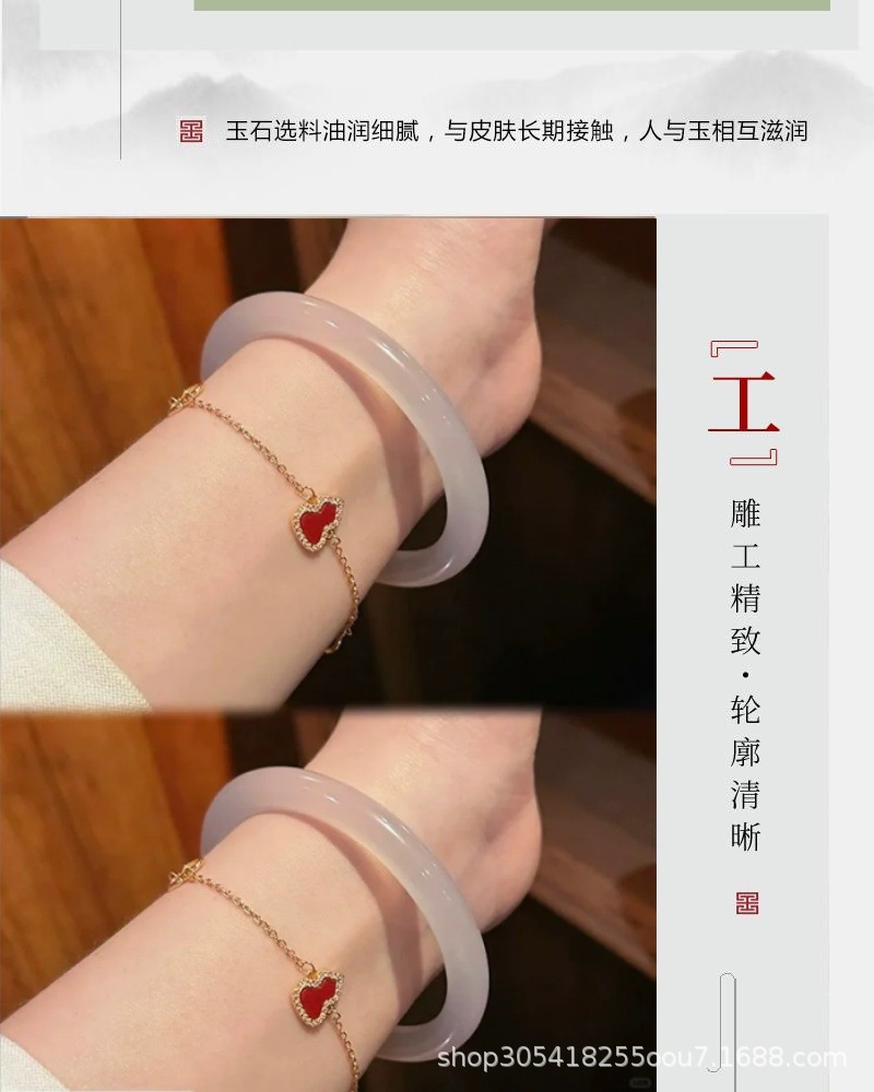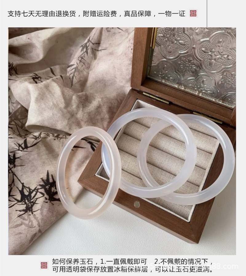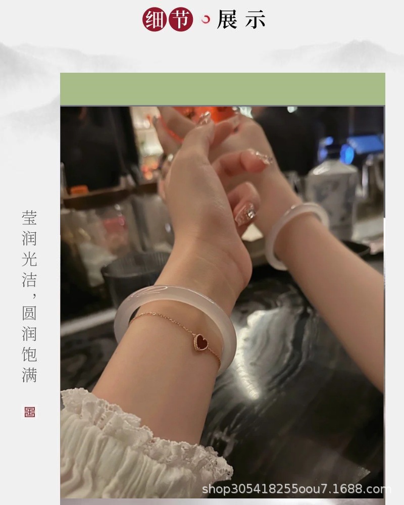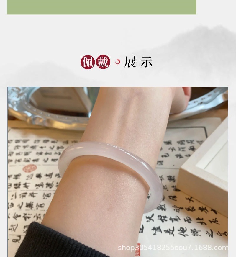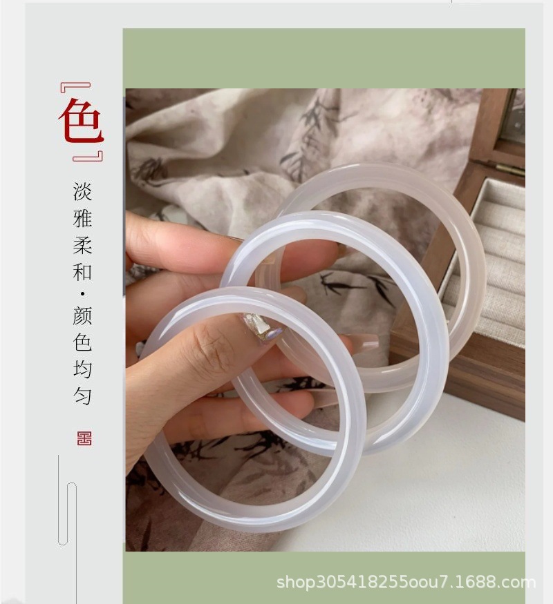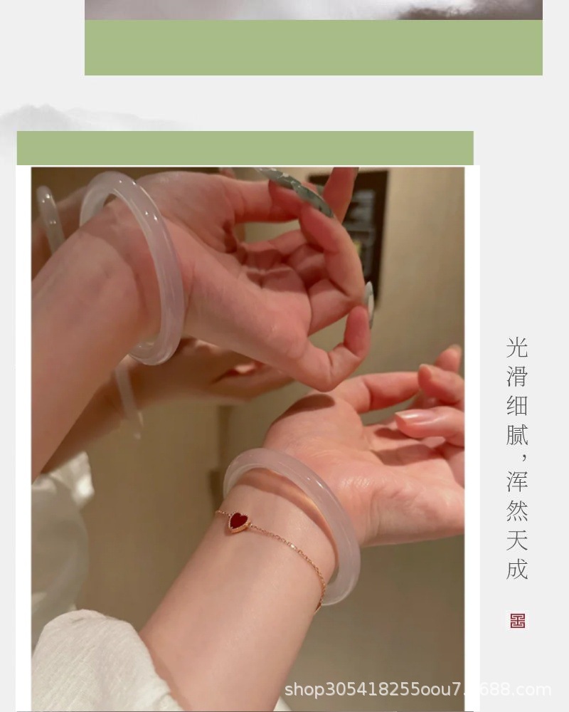 玛瑙玉髓白月光美人条手镯园条8m冰种玉鐲送女友节日礼物首饰玉石