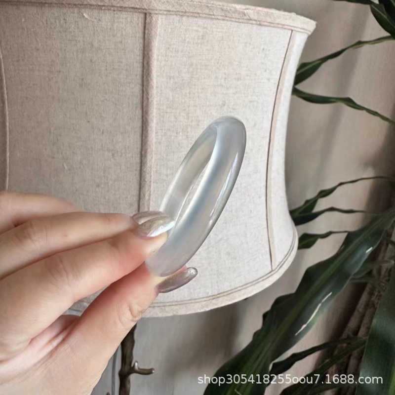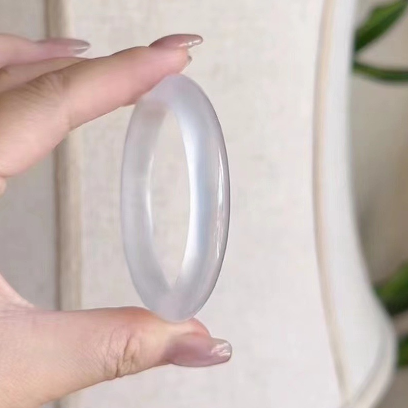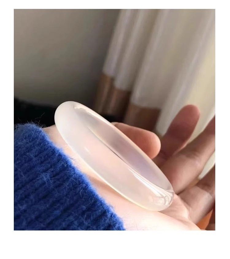 玛瑙玉髓手鐲正圈马料高冰种玉石白月光玉镯荔枝冻水波纹清新甜美