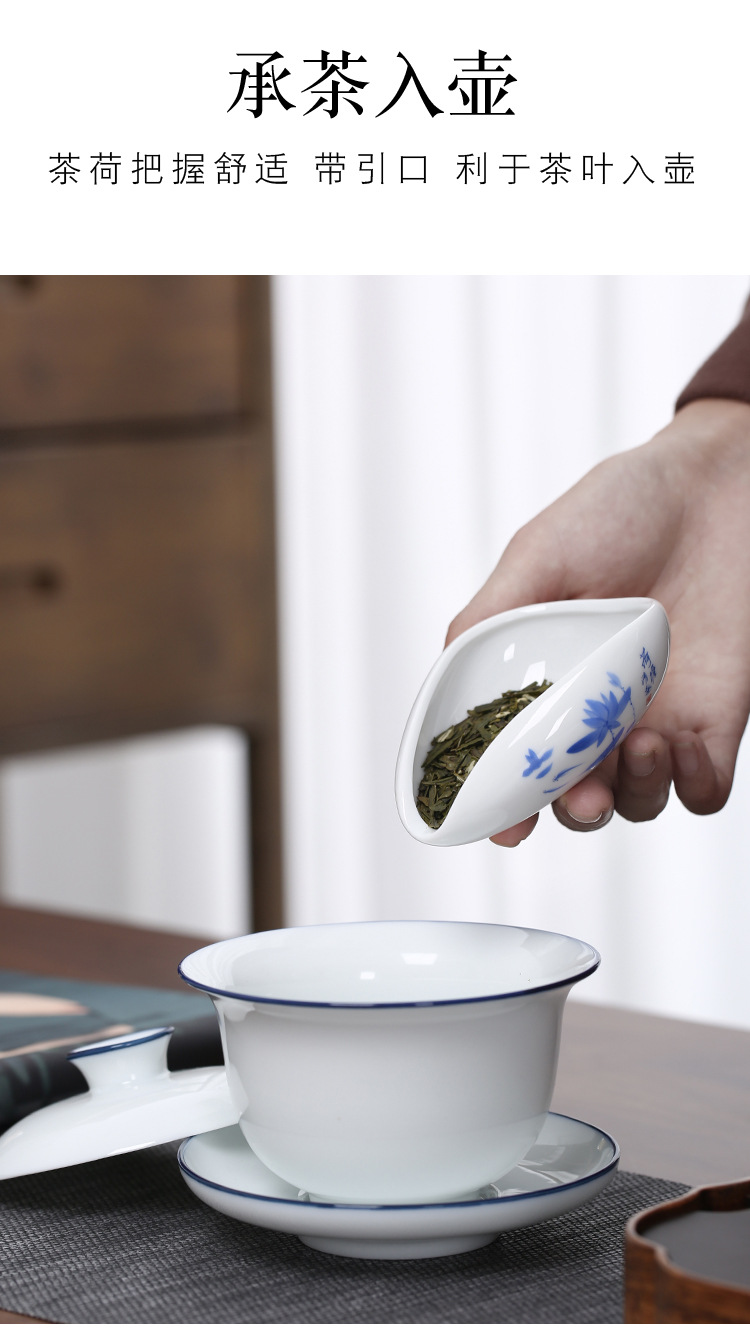 白瓷茶荷瓷茶则陶瓷茶赏茶则茶铲赏茶茶勺功夫茶具茶艺茶道配件