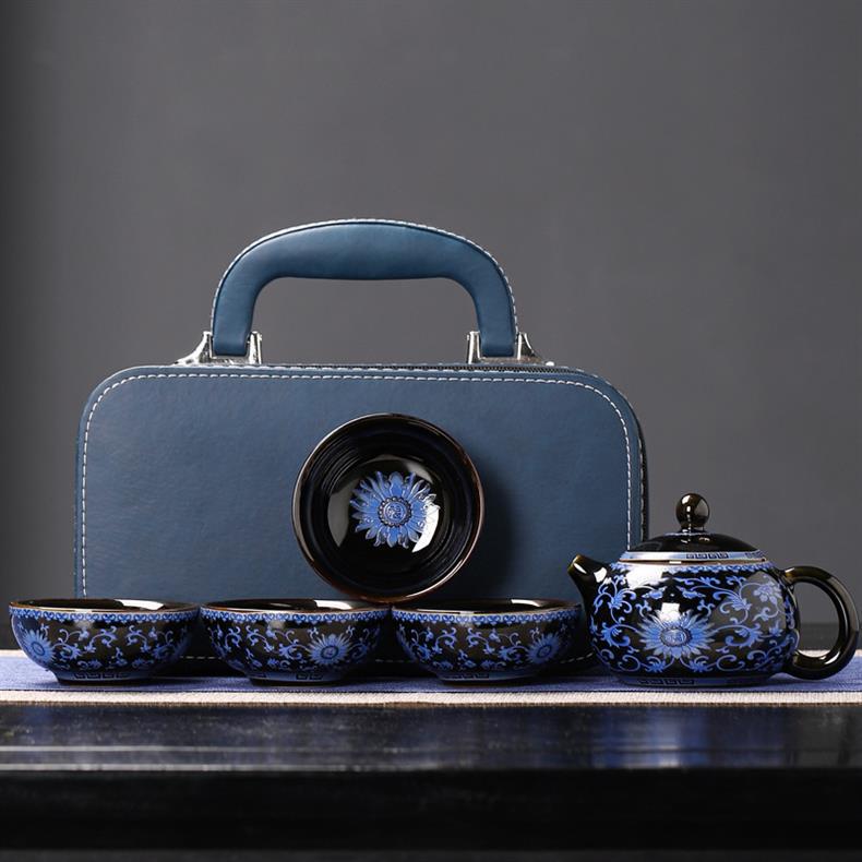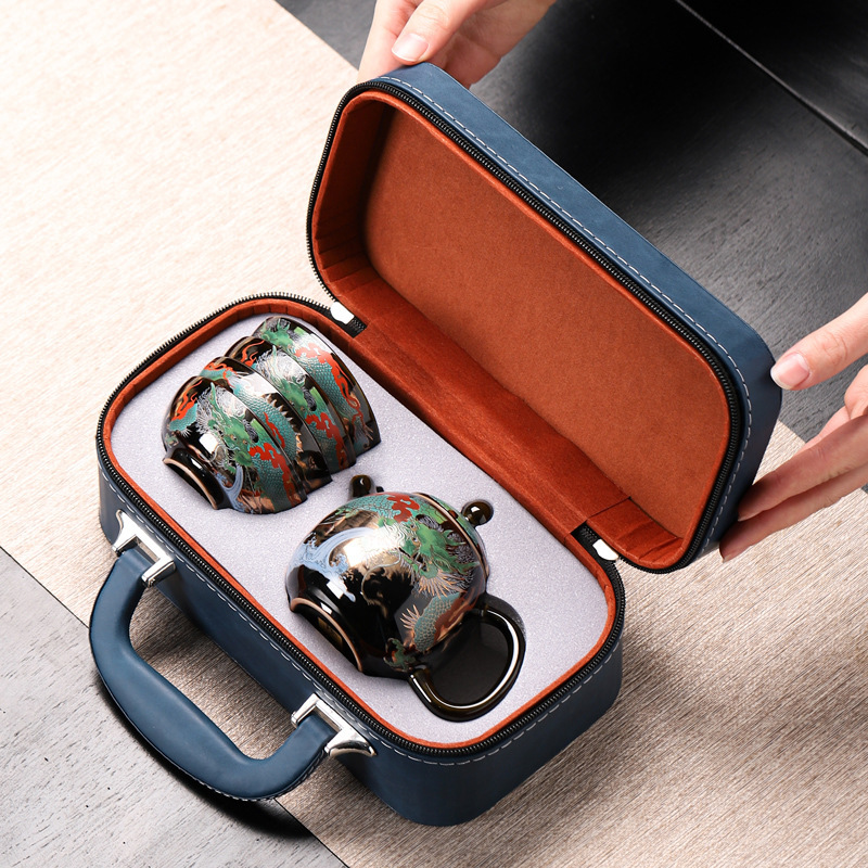 商务礼品旅行茶具套装一壶四杯便携式盖碗小套户外高档功夫套装