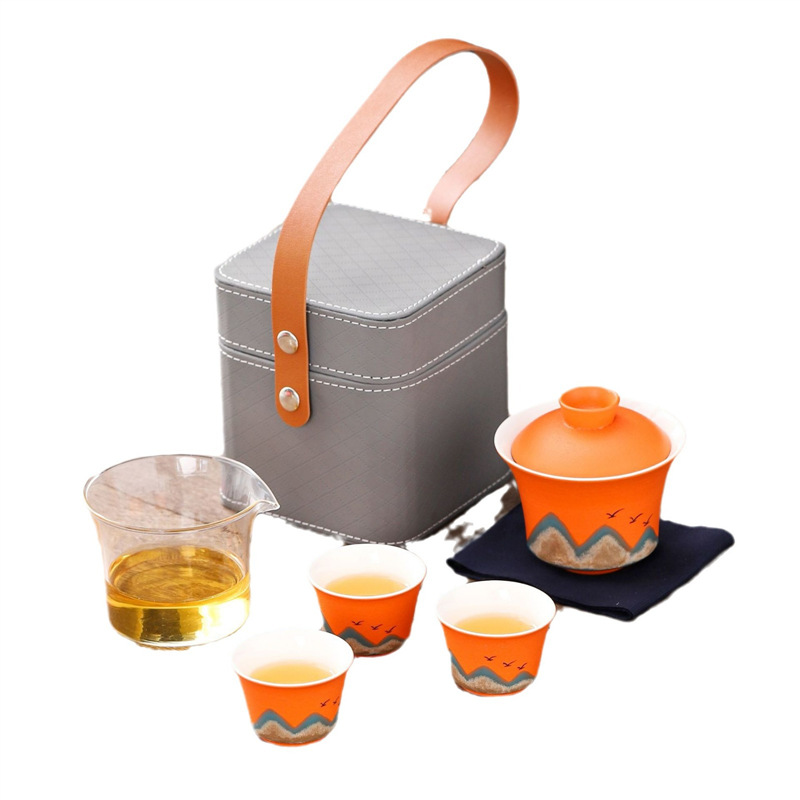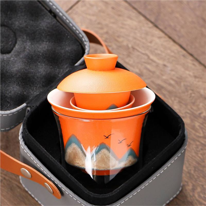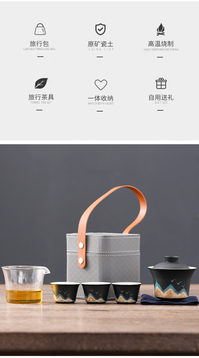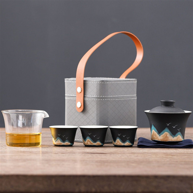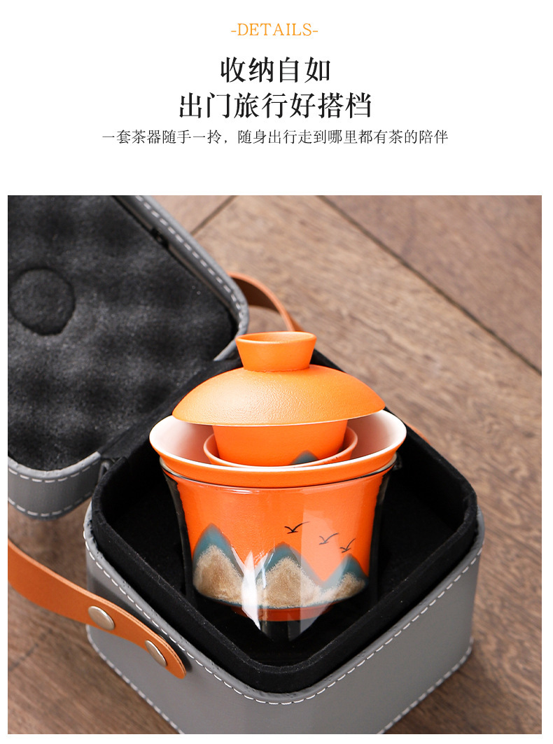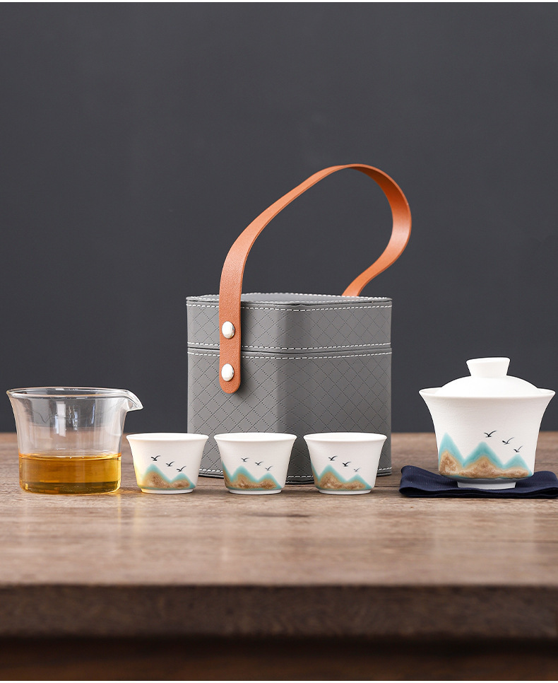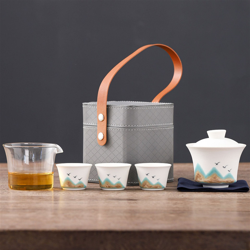 旅行茶具便携式万山盖碗一壶三杯创意陶瓷手绘小型功夫茶具套装