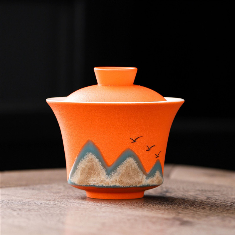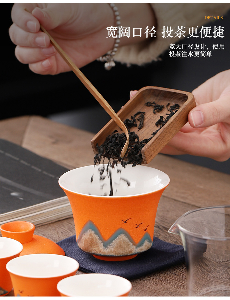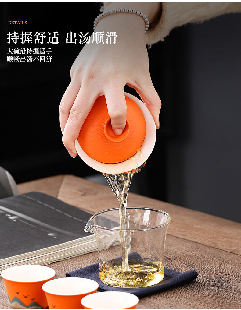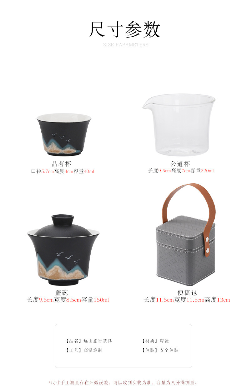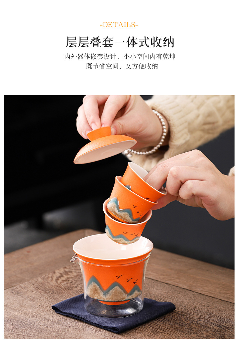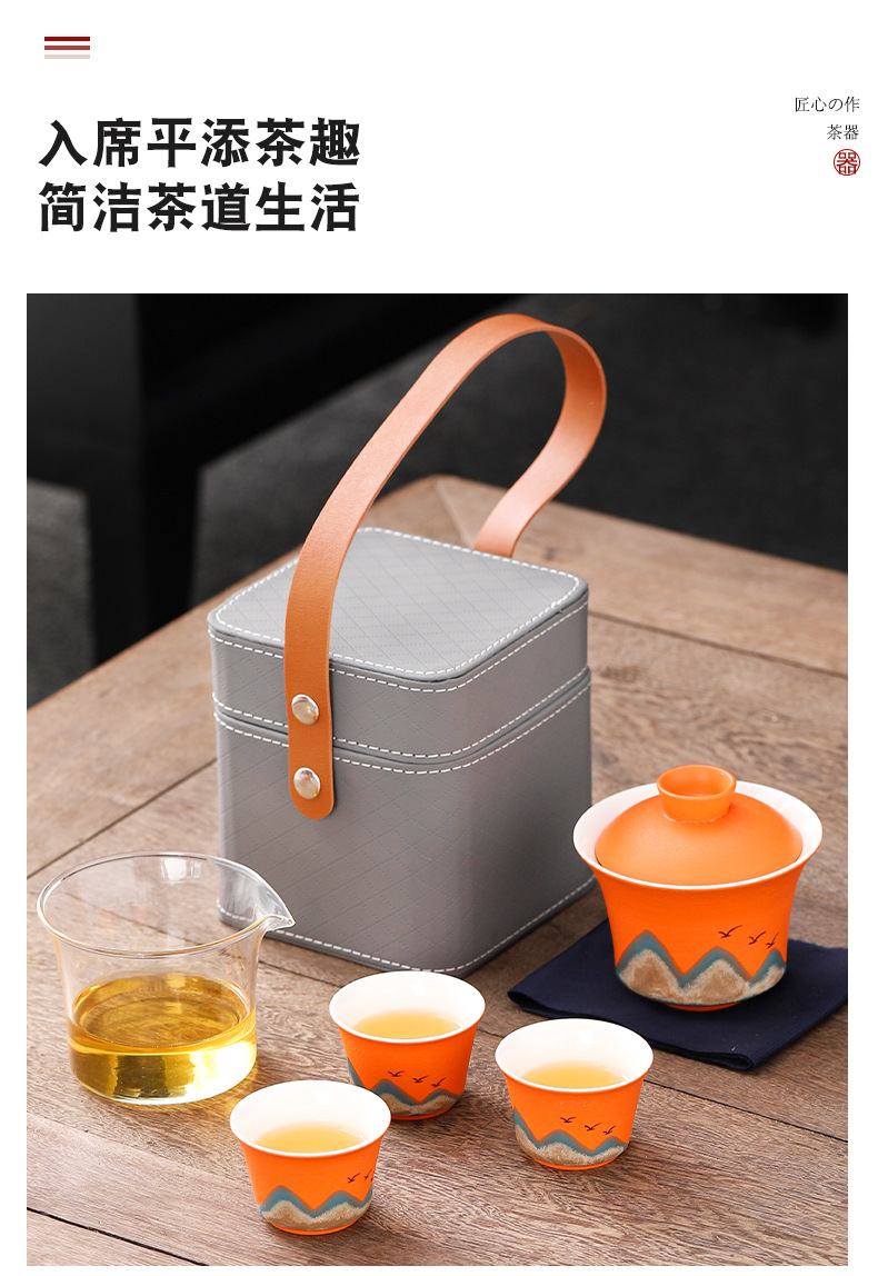 旅行茶具便携式万山盖碗一壶三杯创意陶瓷手绘小型功夫茶具套装