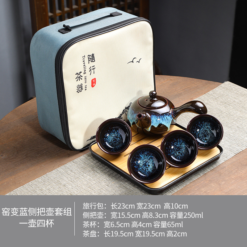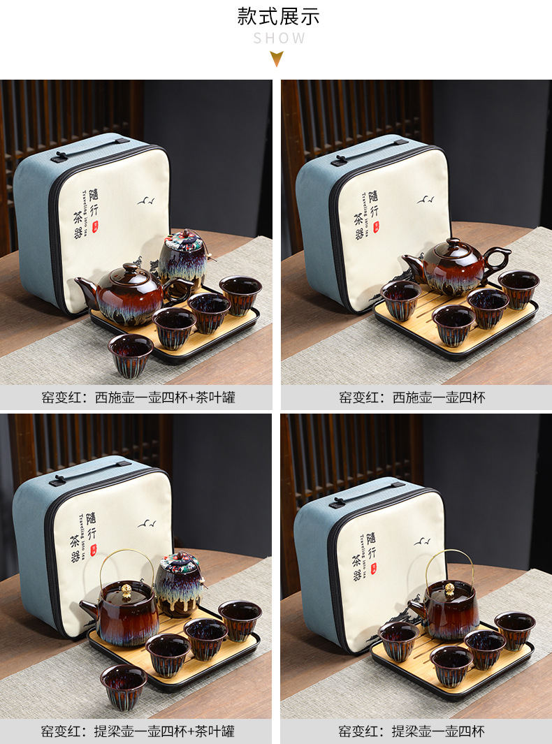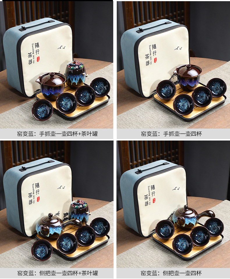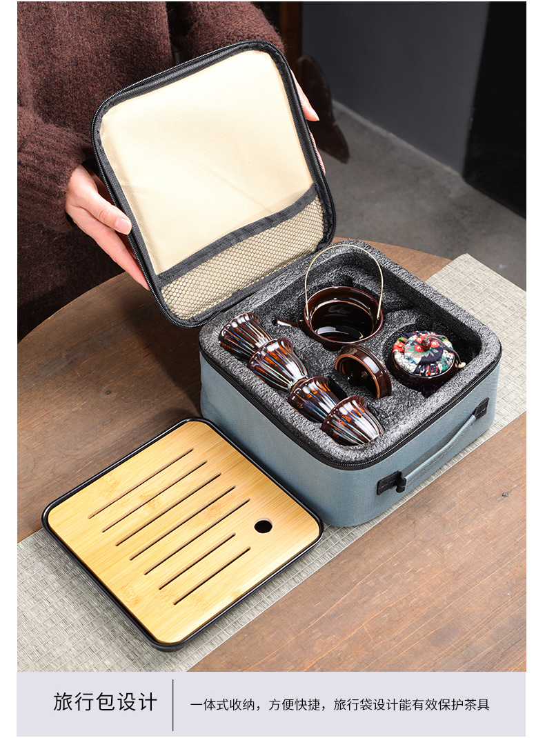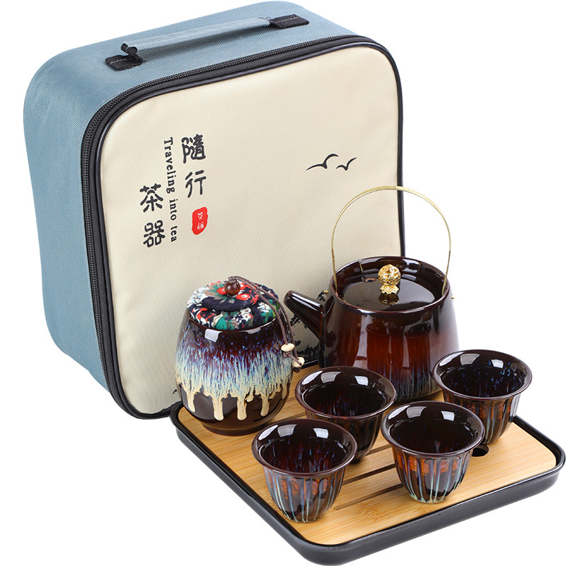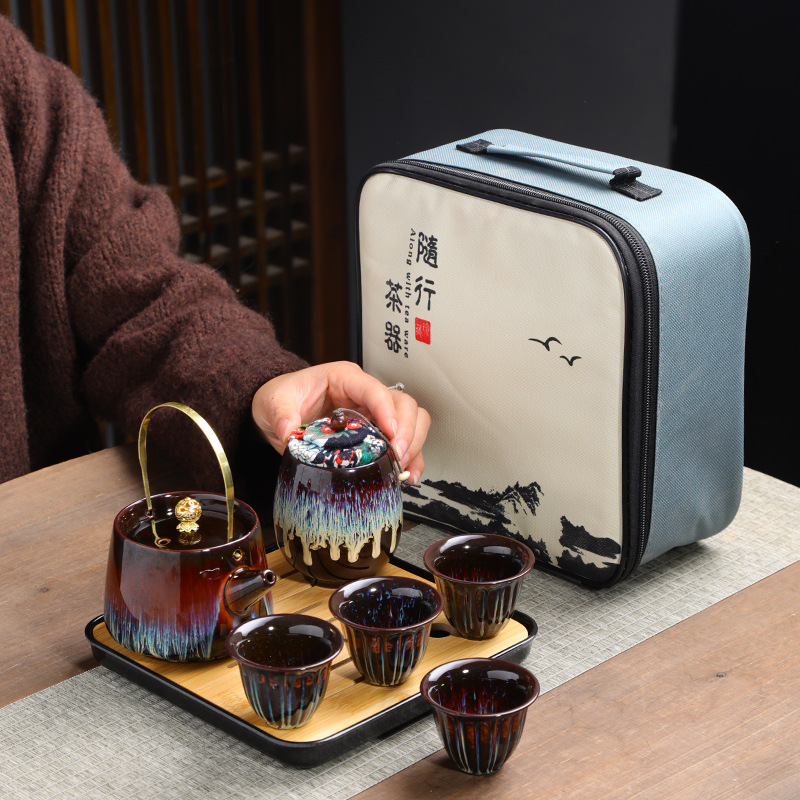 窑变沙金釉旅行茶具便携式一壶四杯陶瓷功夫茶具户外商务礼品