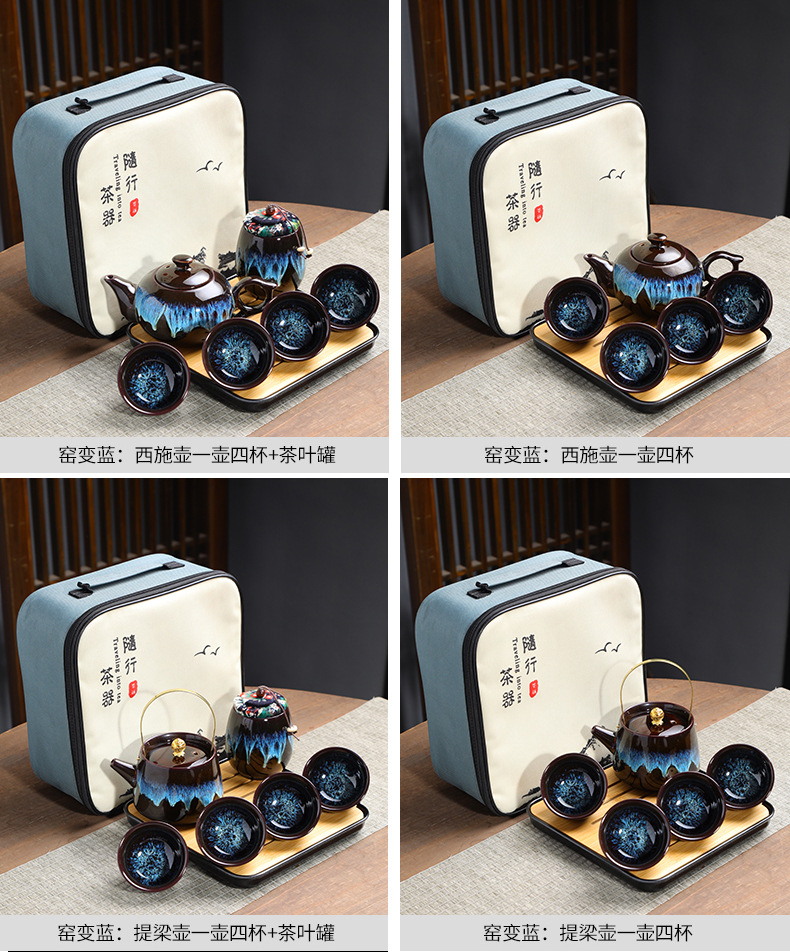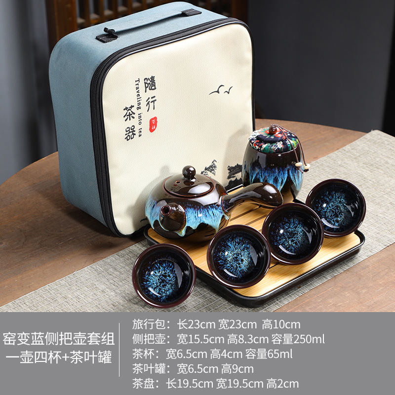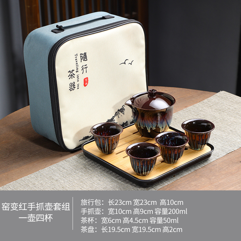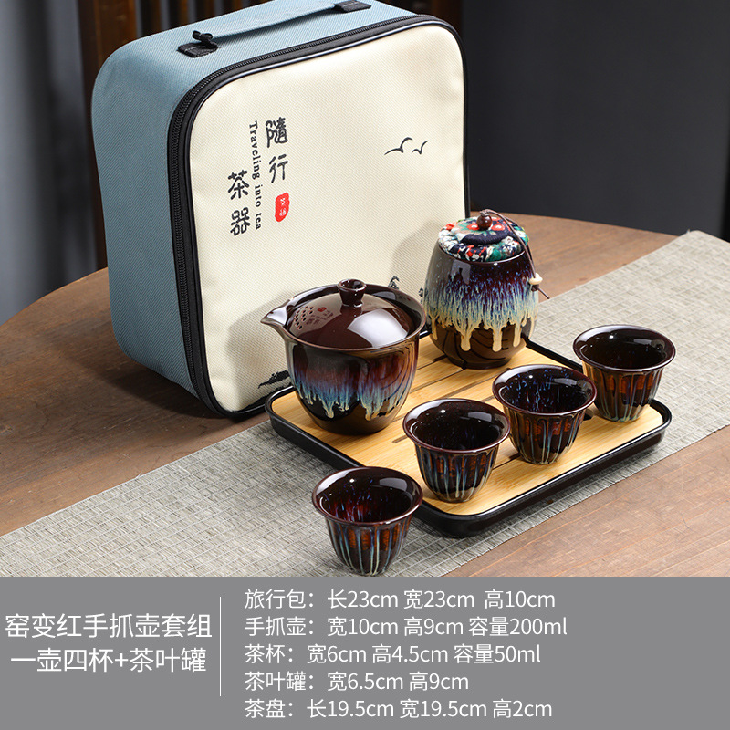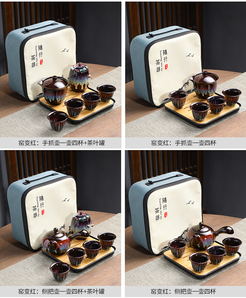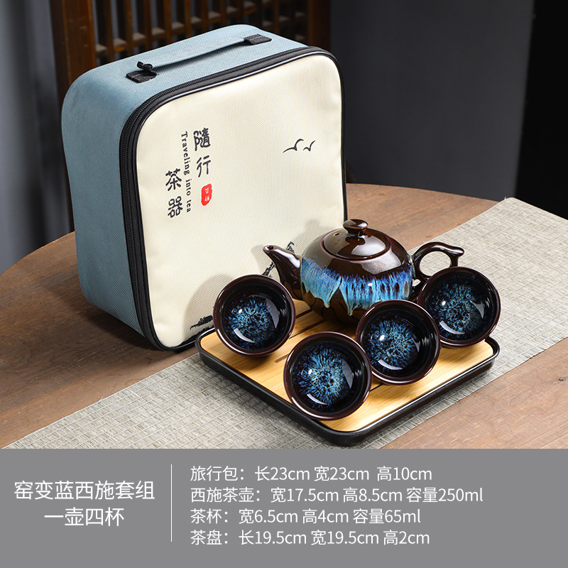 窑变沙金釉旅行茶具便携式一壶四杯陶瓷功夫茶具户外商务礼品
