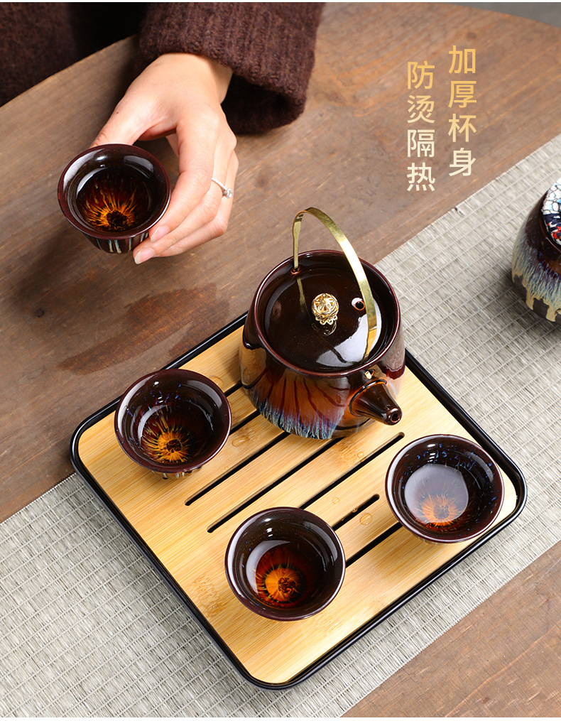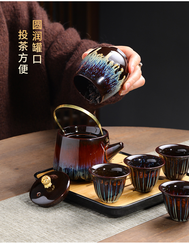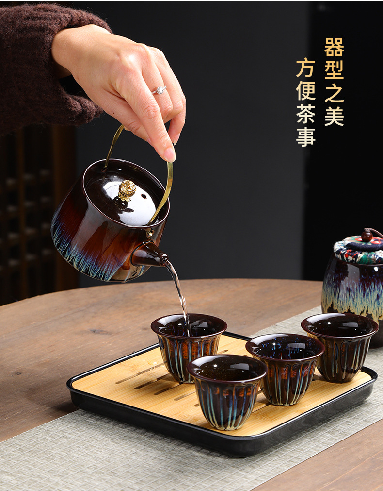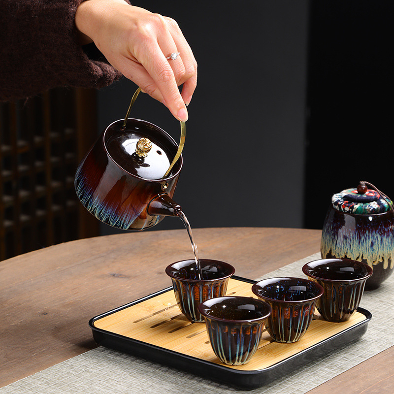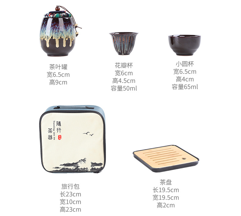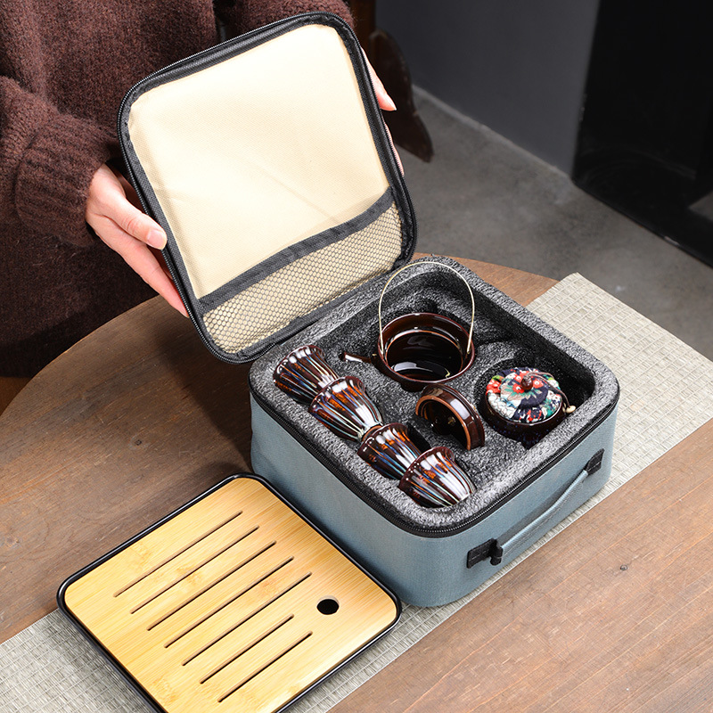 窑变沙金釉旅行茶具便携式一壶四杯陶瓷功夫茶具户外商务礼品
