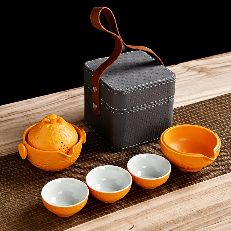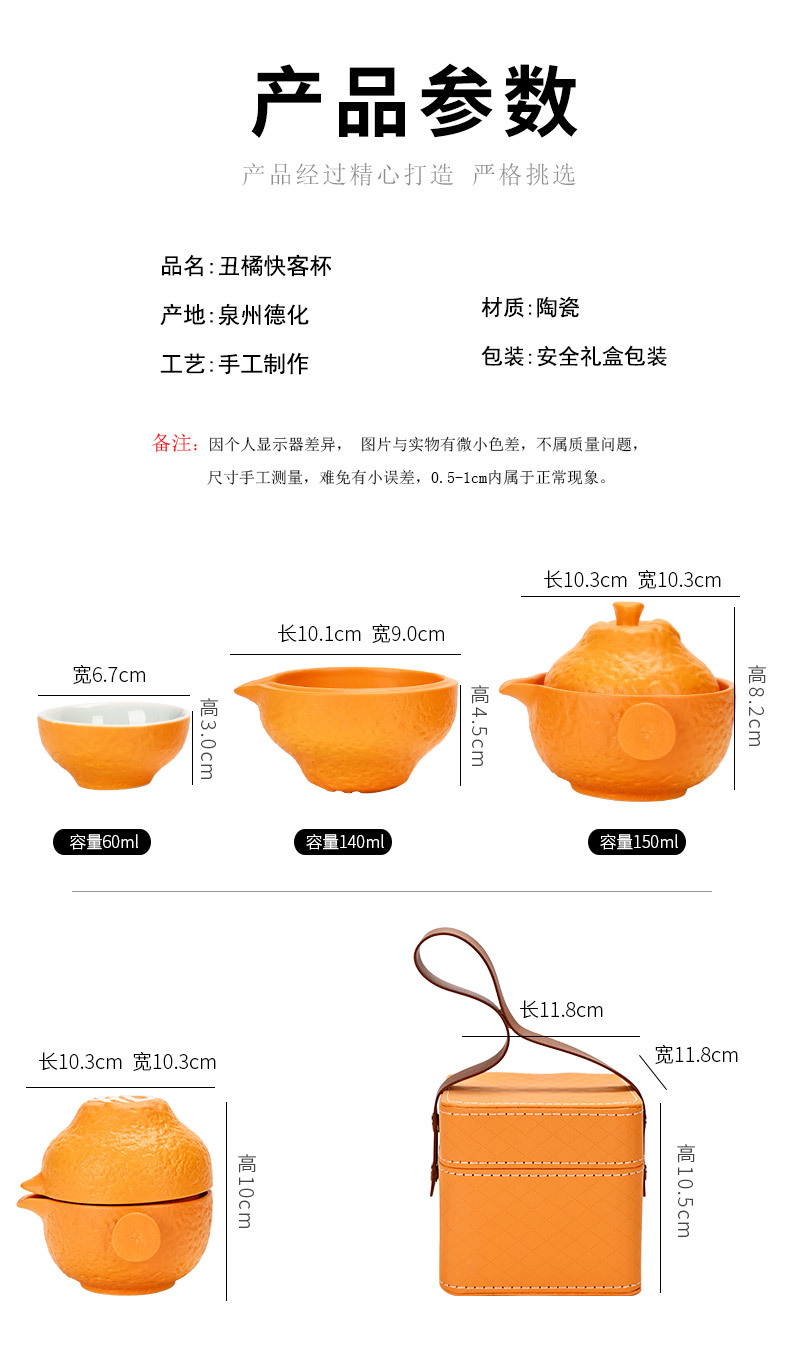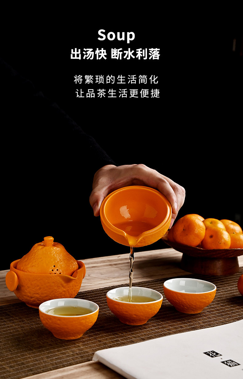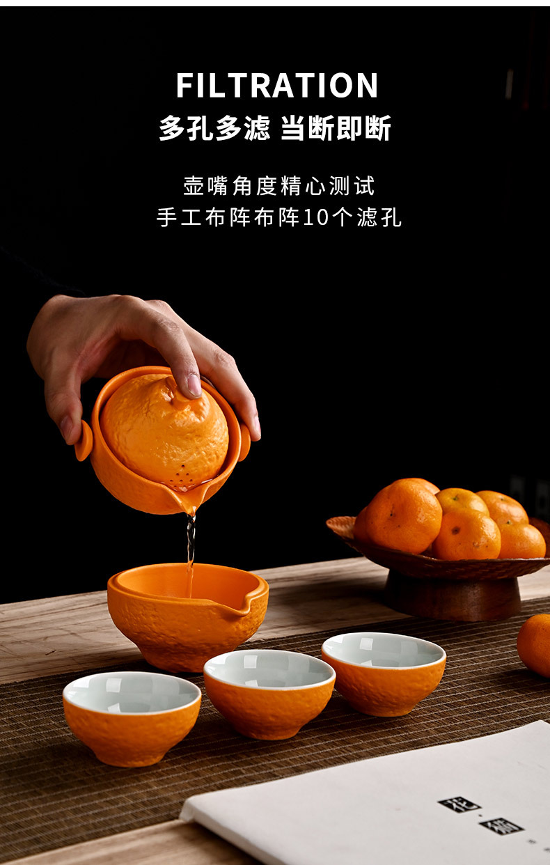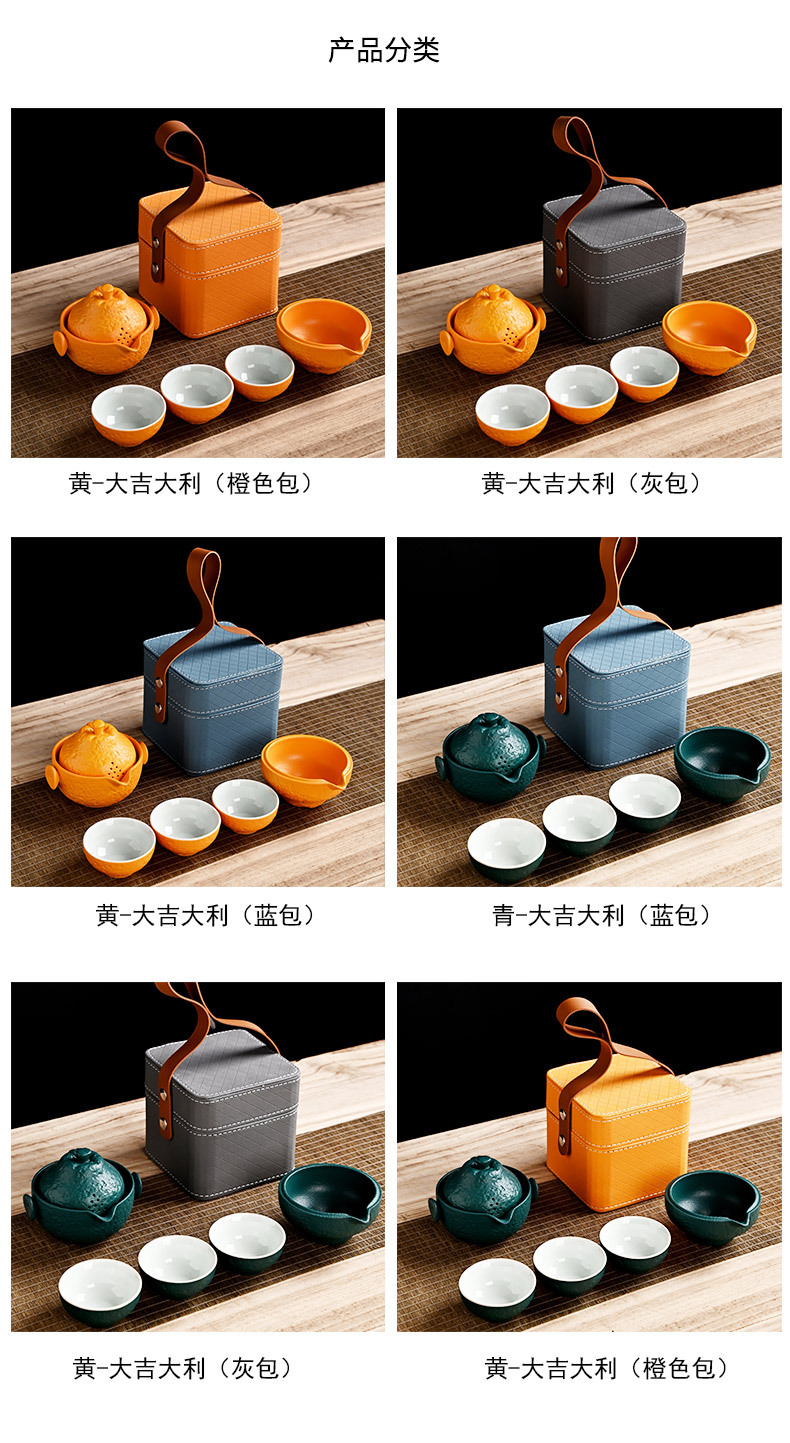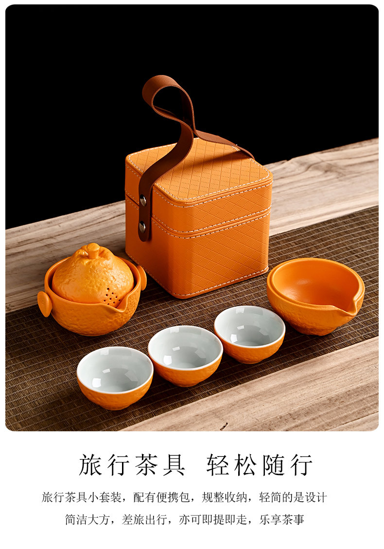 大吉大利丑橘快客杯高档户外便携式陶瓷旅行茶具一壶三杯功夫茶具