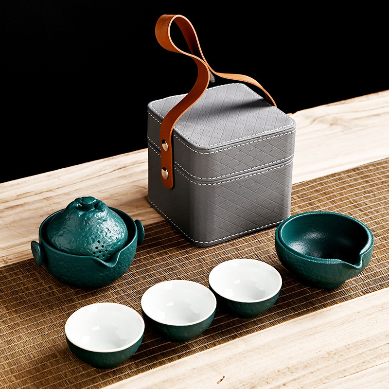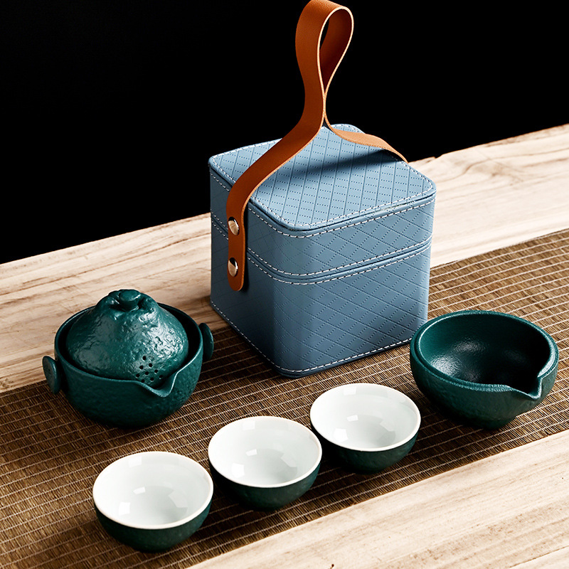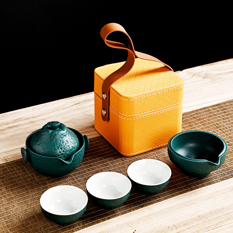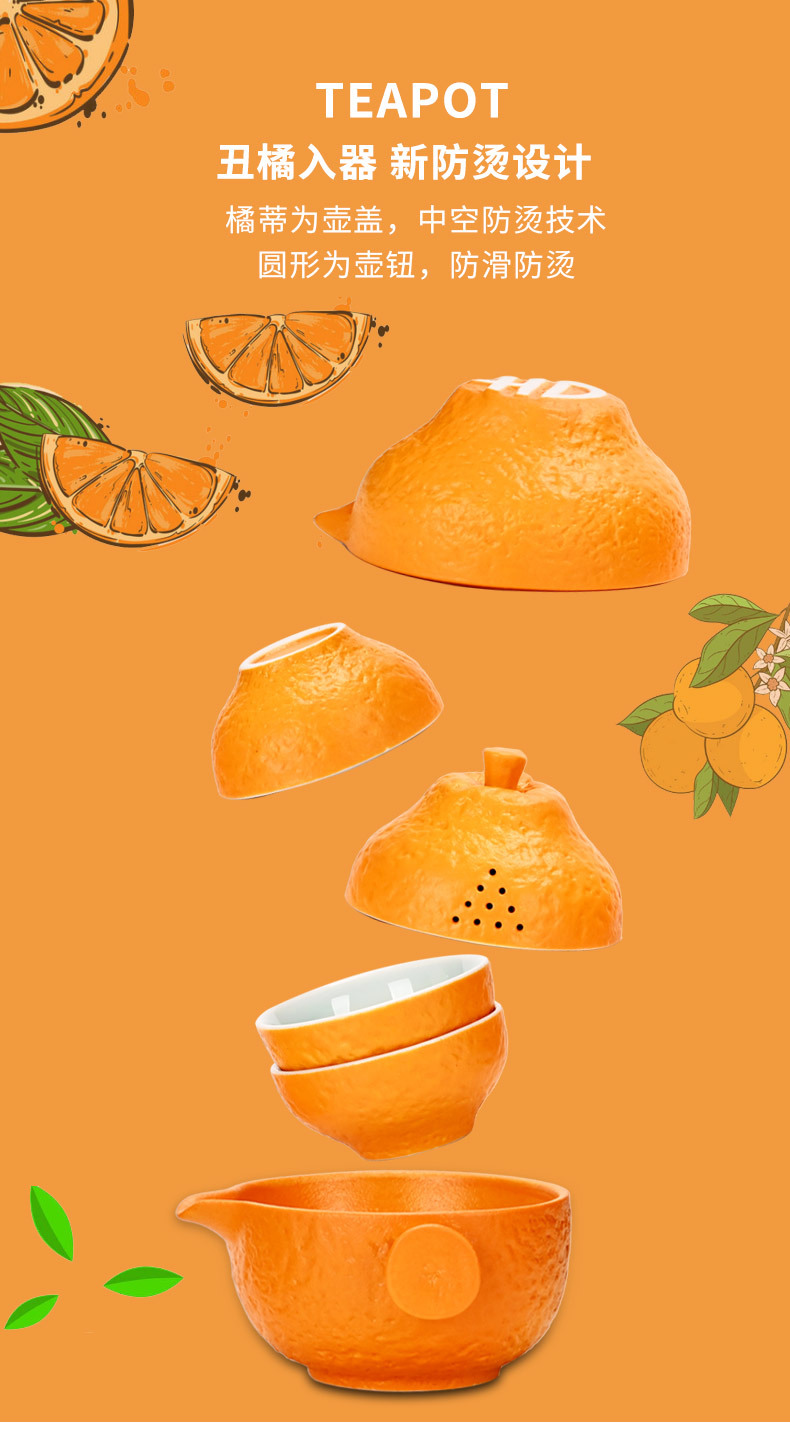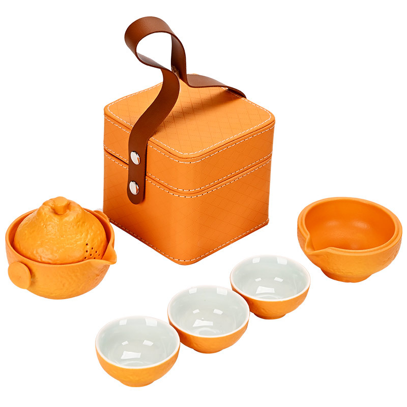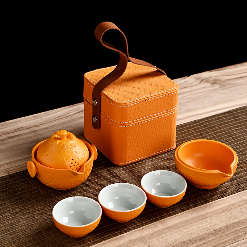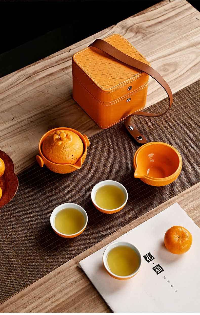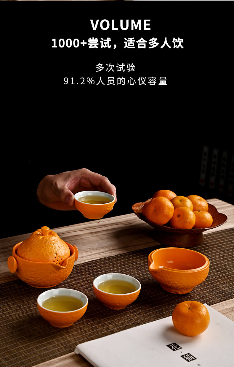 大吉大利丑橘快客杯高档户外便携式陶瓷旅行茶具一壶三杯功夫茶具