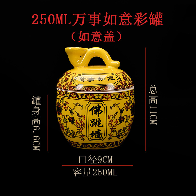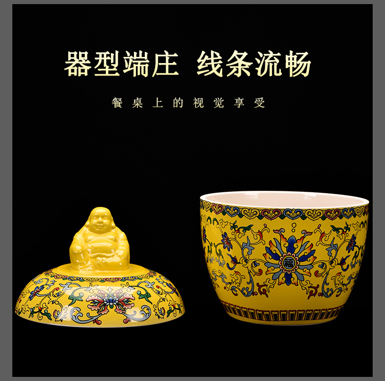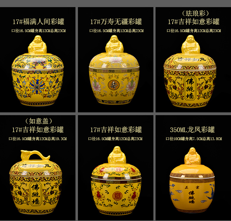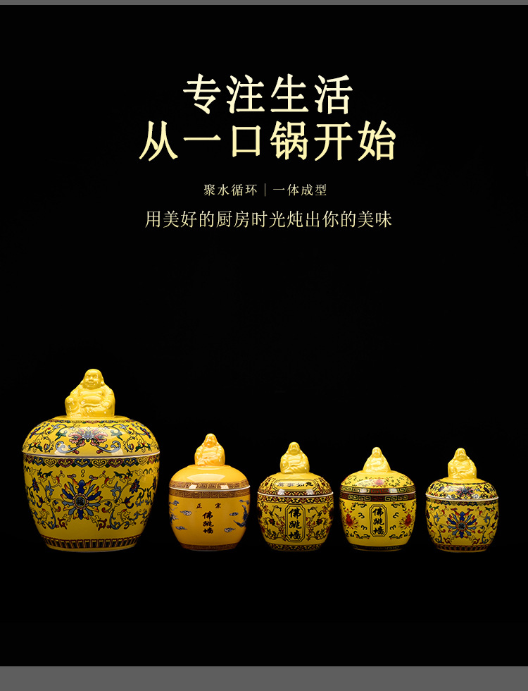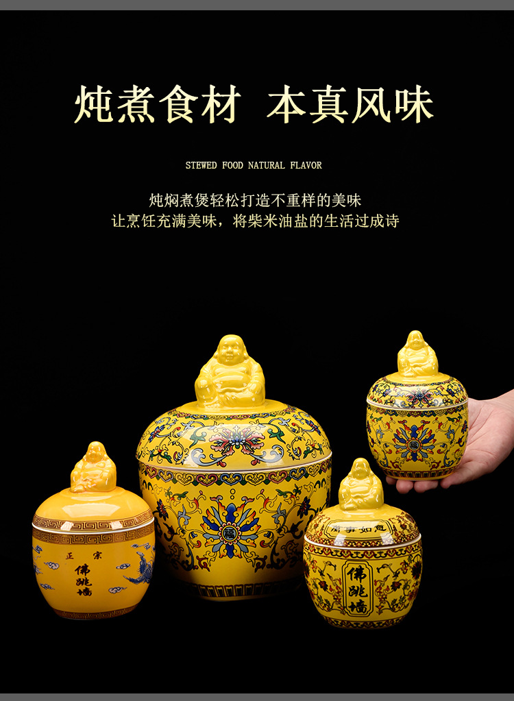 佛跳墙罐炖盅彩罐饭店食品公司炖盅餐具黄色罐子带盖坛子酒店用品