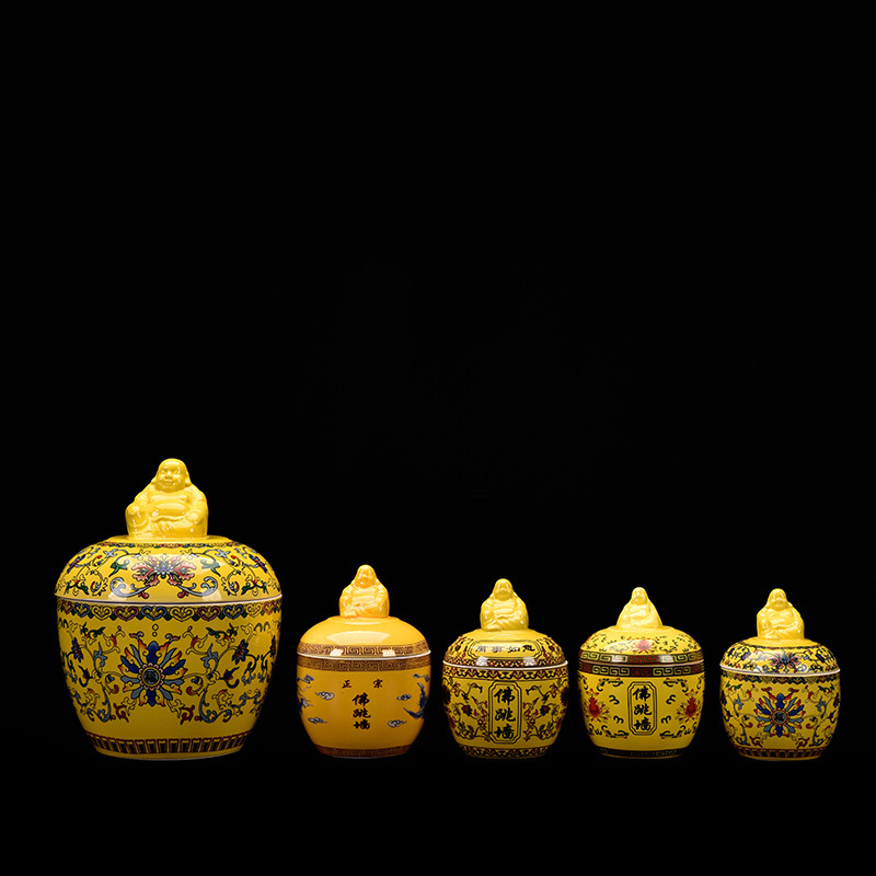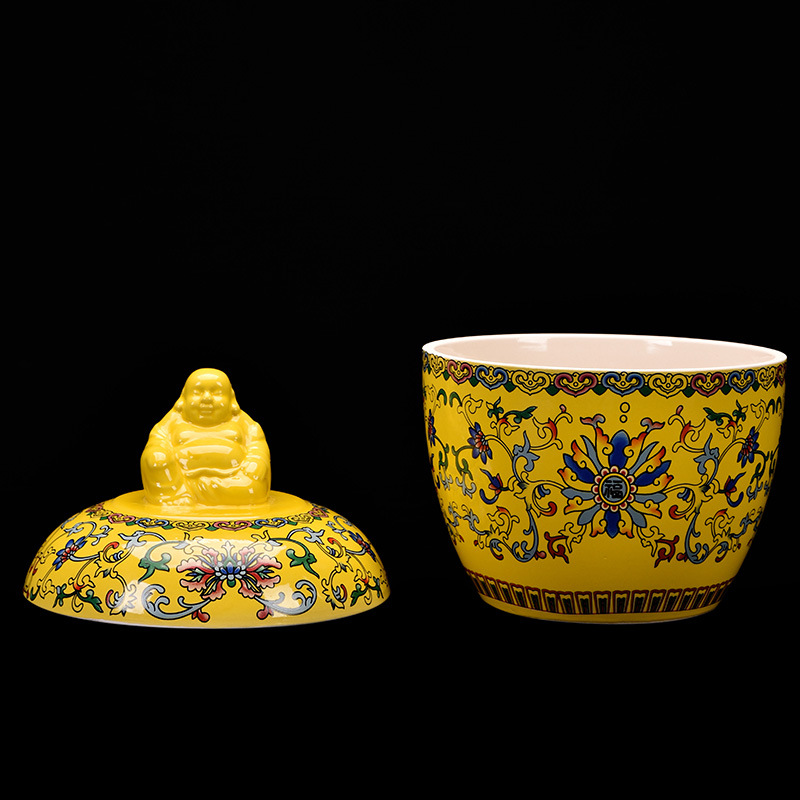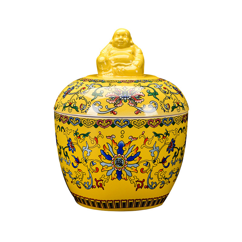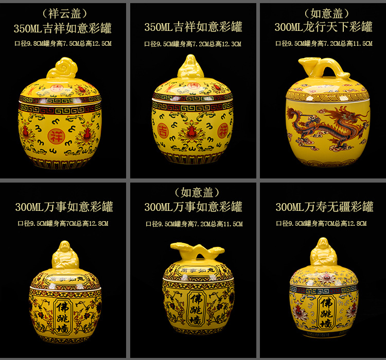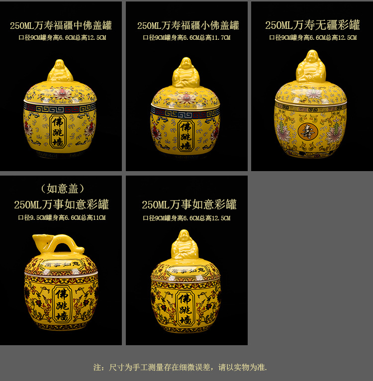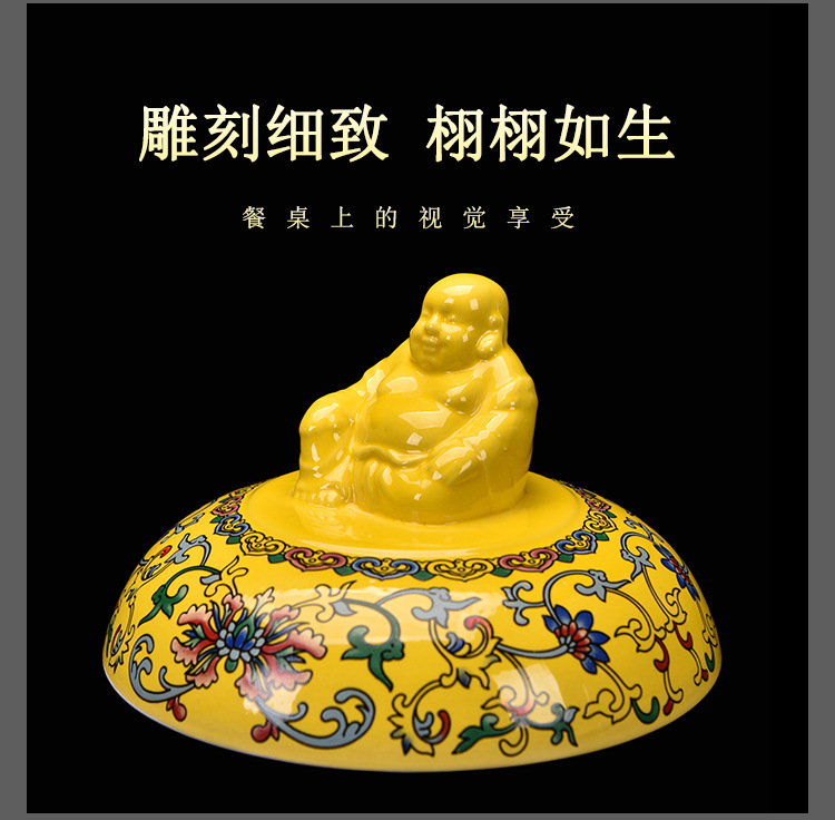 佛跳墙罐炖盅彩罐饭店食品公司炖盅餐具黄色罐子带盖坛子酒店用品