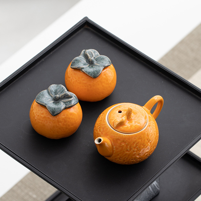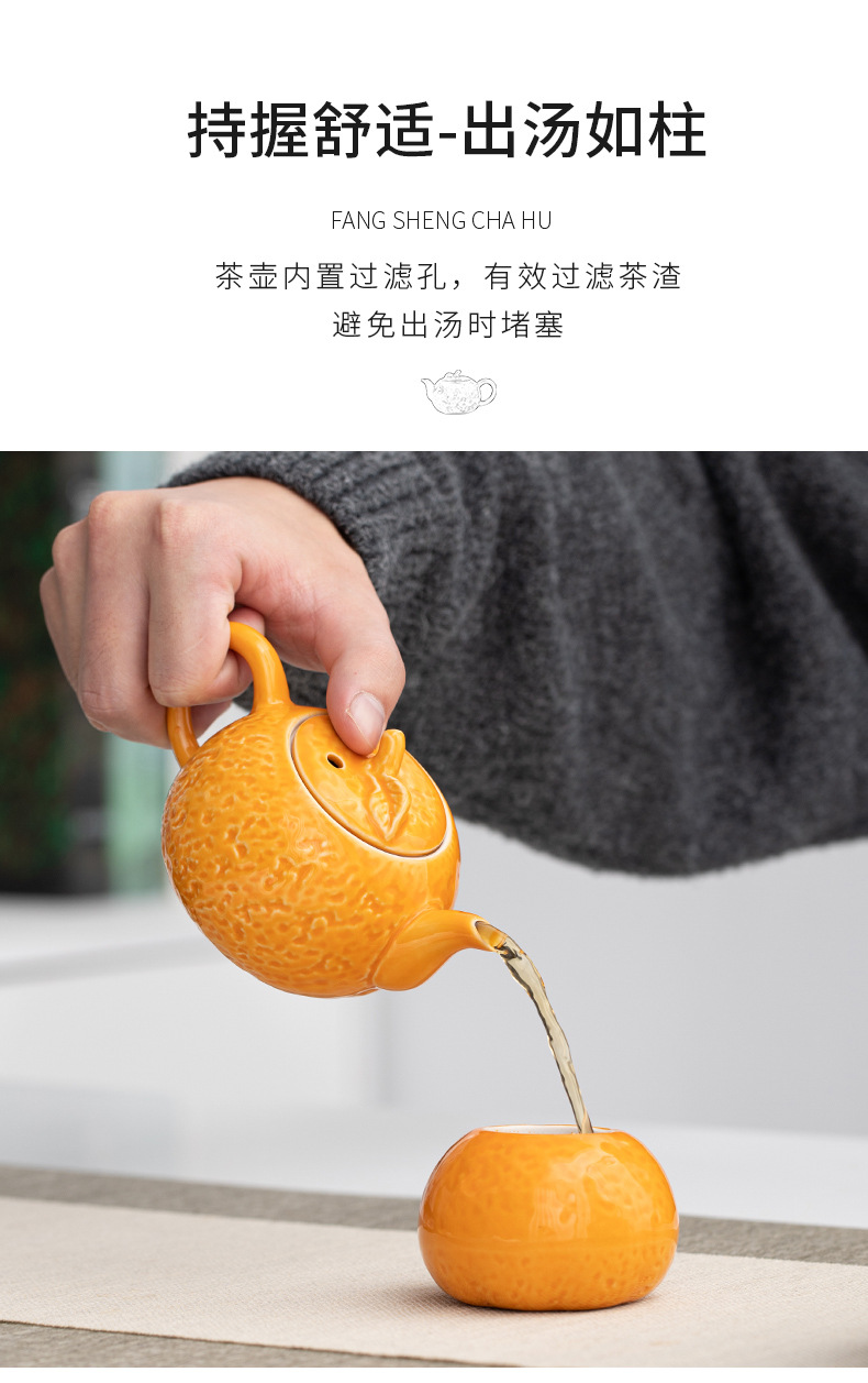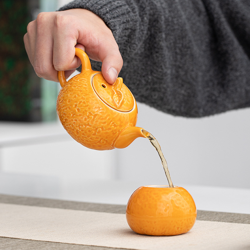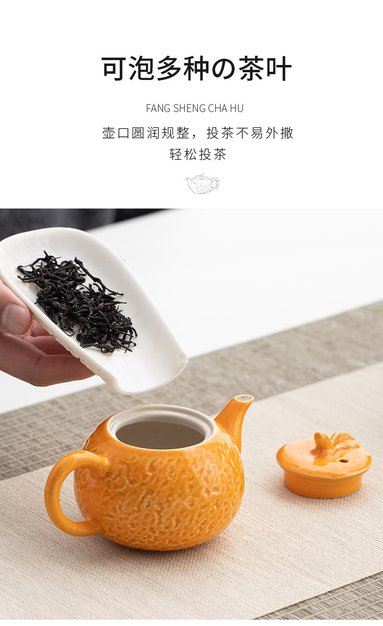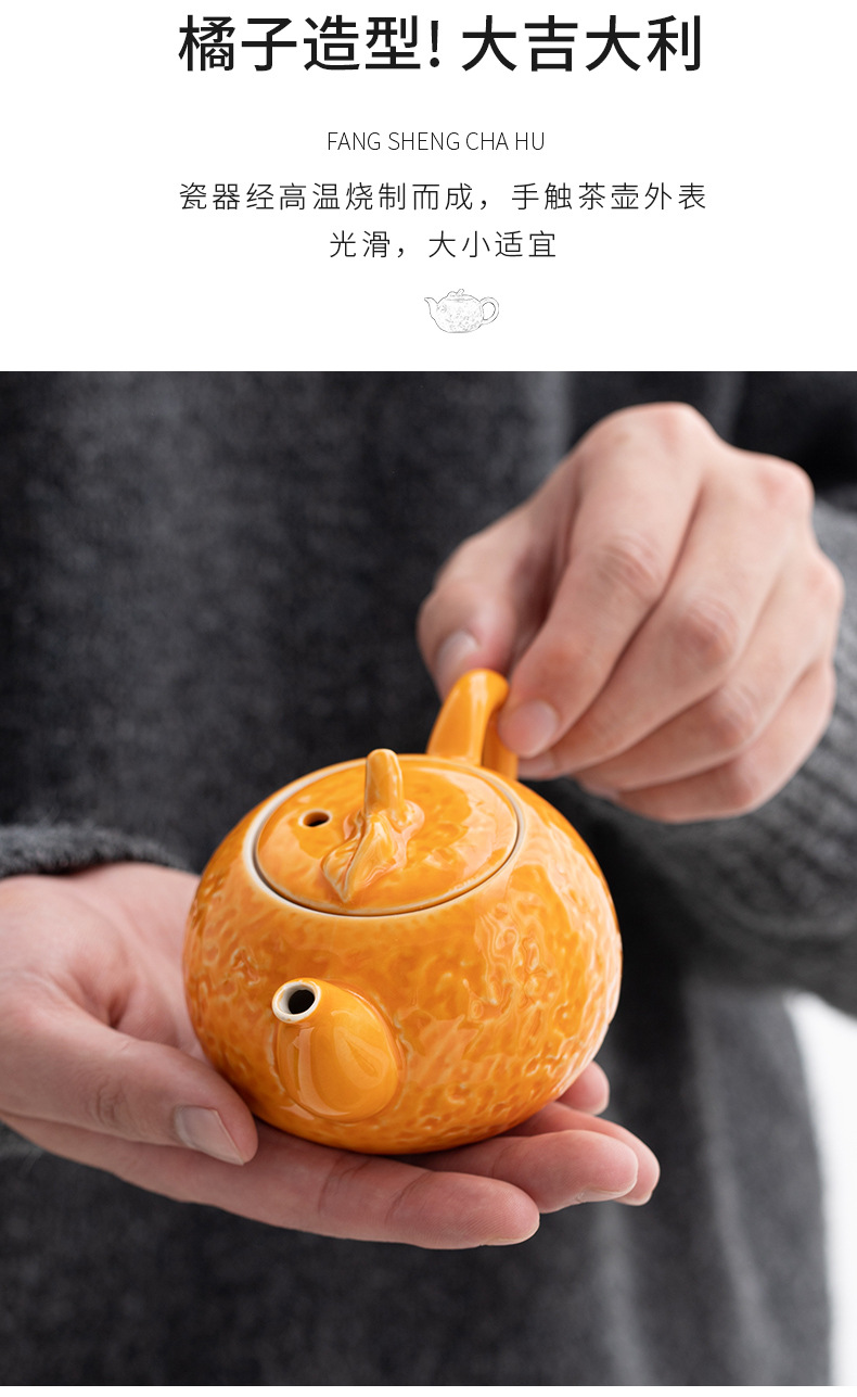 高颜值新款仿真陶瓷橘子茶壶 小号家用可爱陶瓷泡茶壶功夫茶具