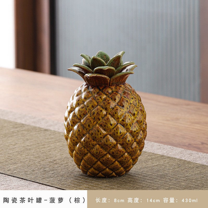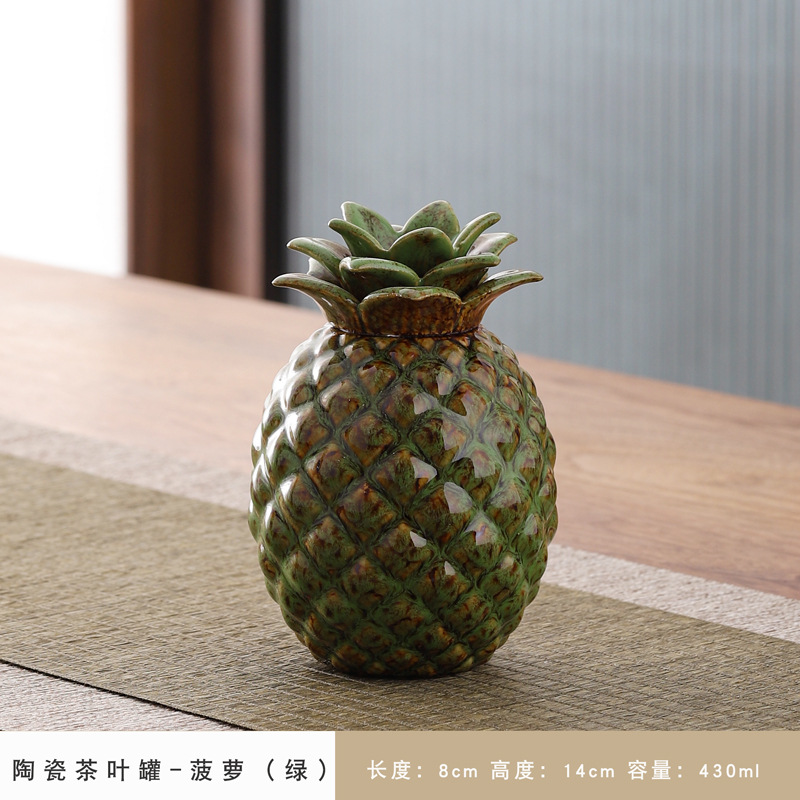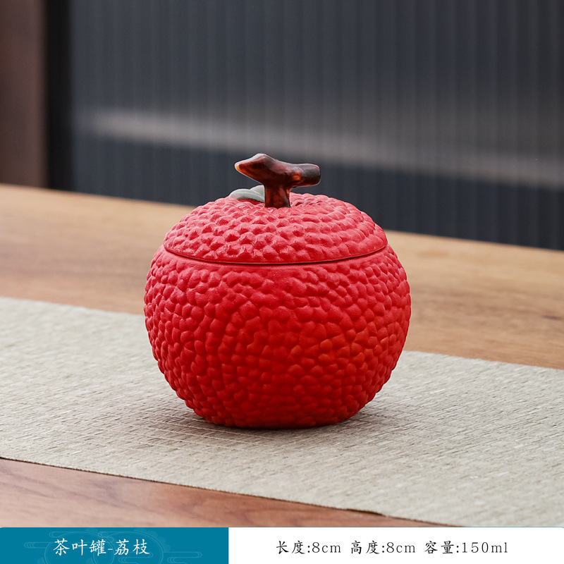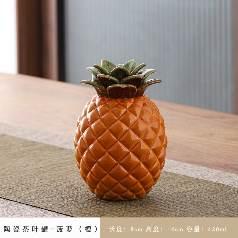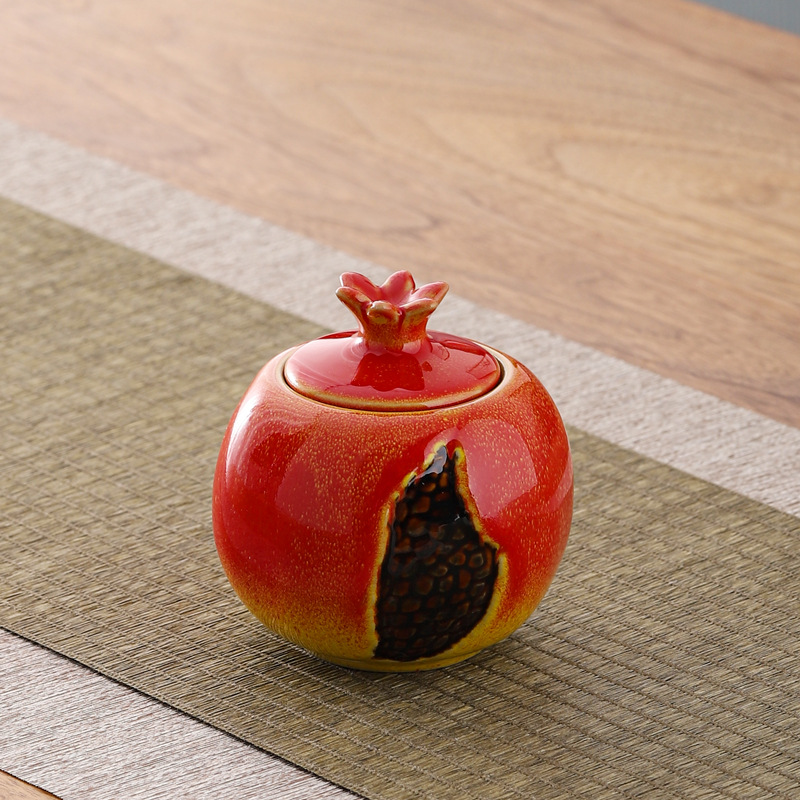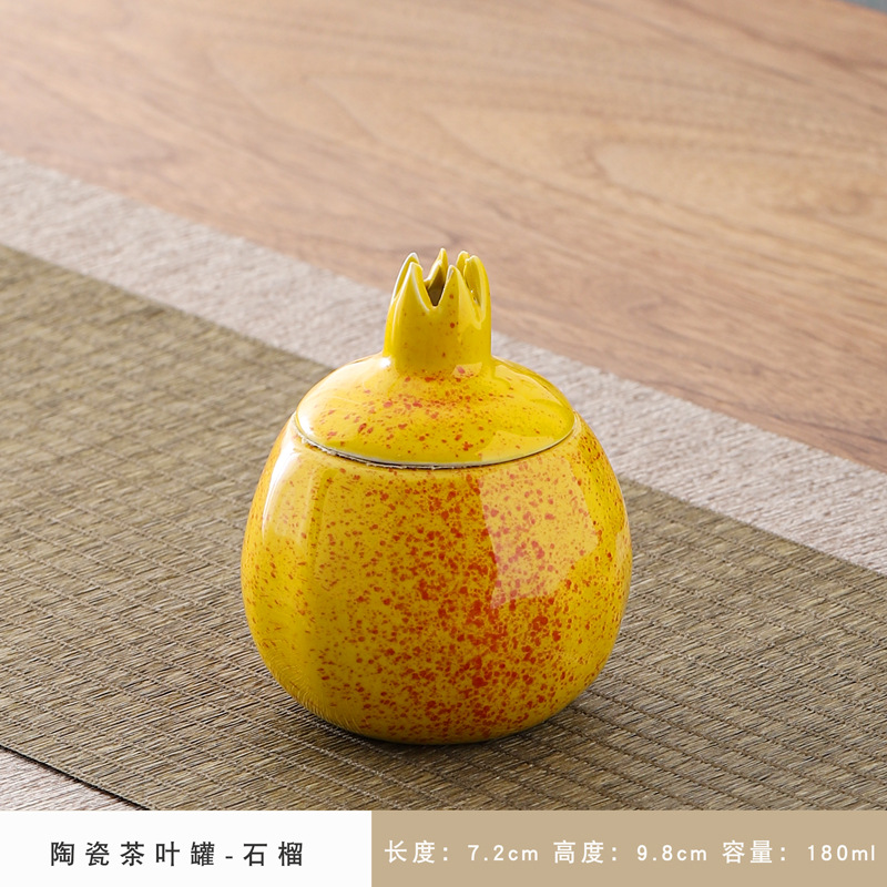 仿真水果茶叶罐家居摆件密封罐创意陶瓷罐小号储茶罐可雕刻柿子罐