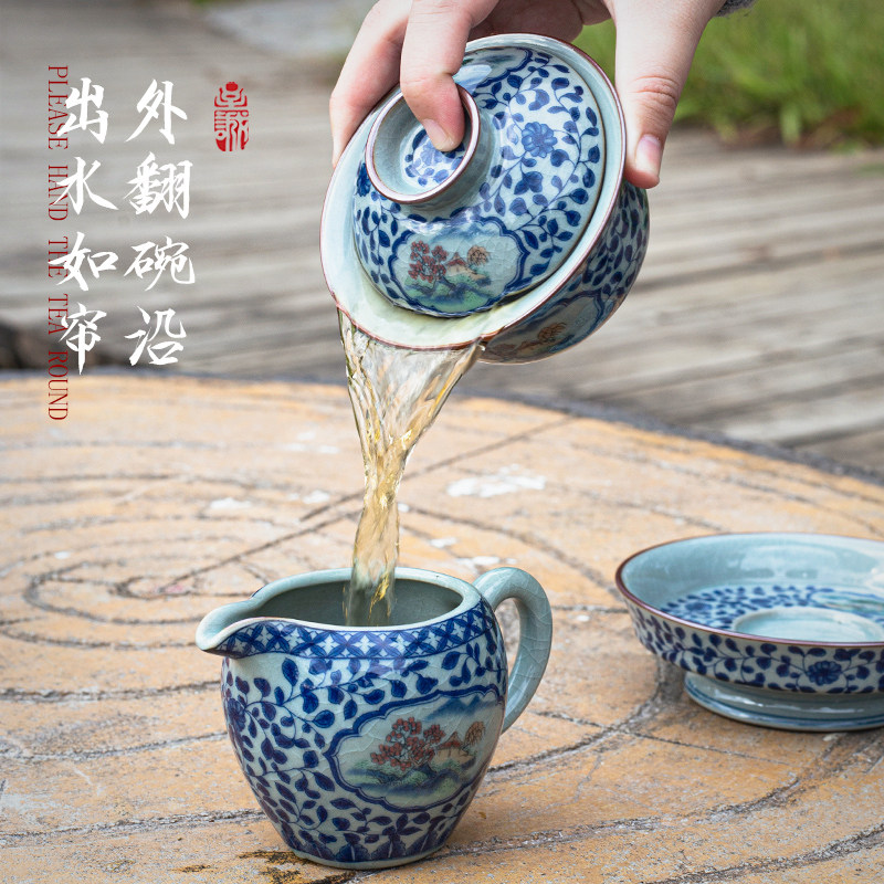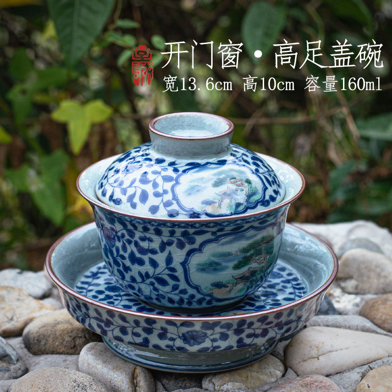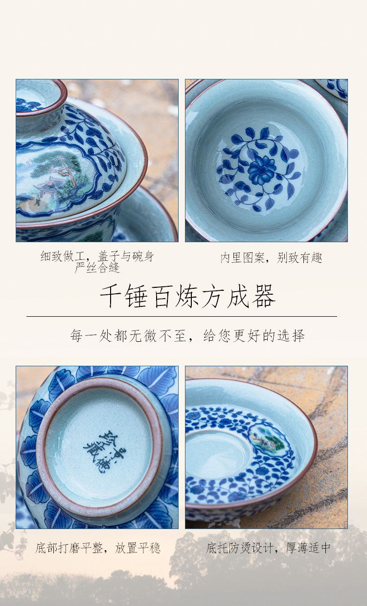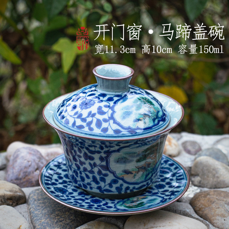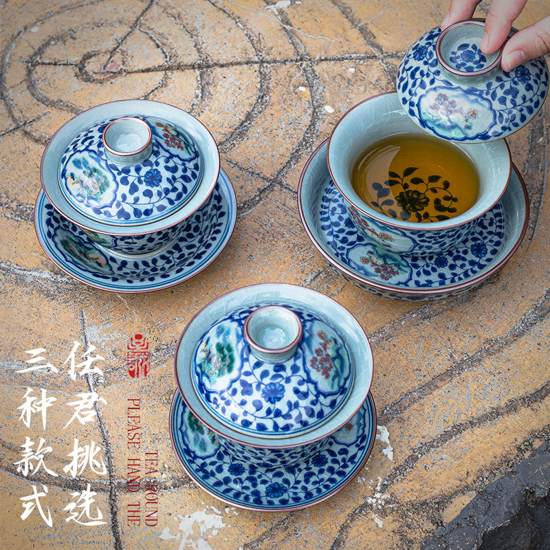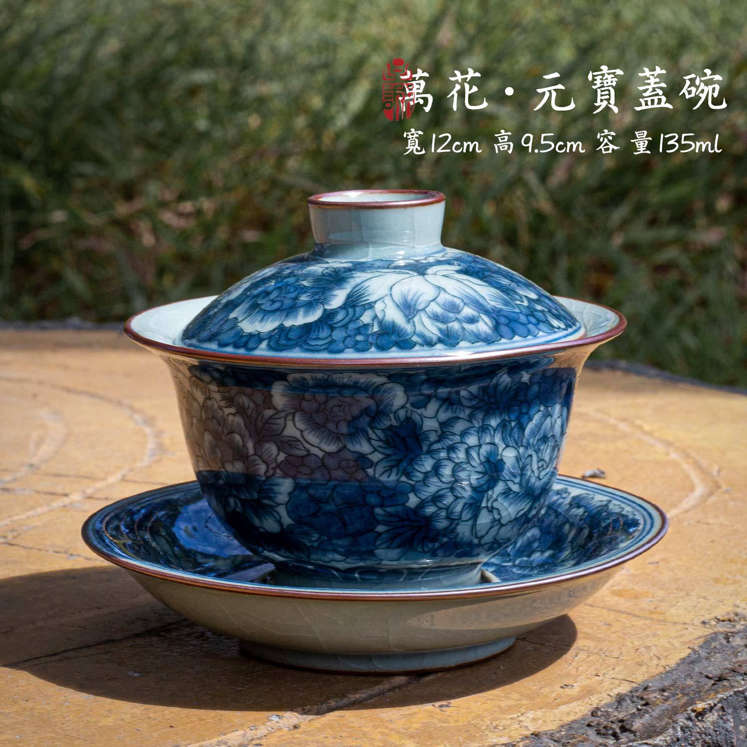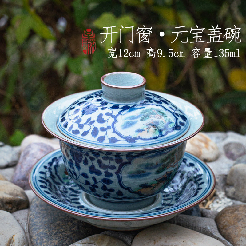 元宝盖碗老陶泥开片冰裂可养三才盖碗中式复古手工茶具浮沉泡茶碗