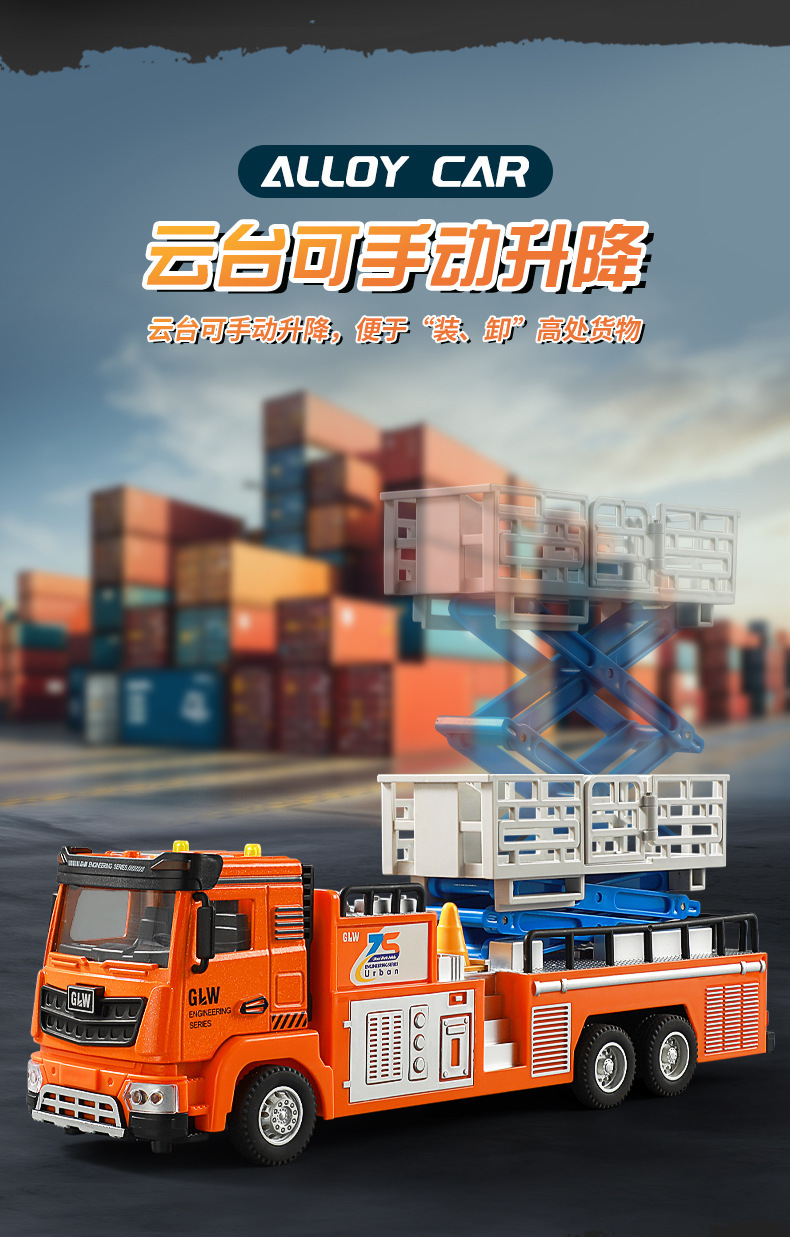 钢力威1:40合金声光登高工程车玩具升降车玩具城市救援车高空作业