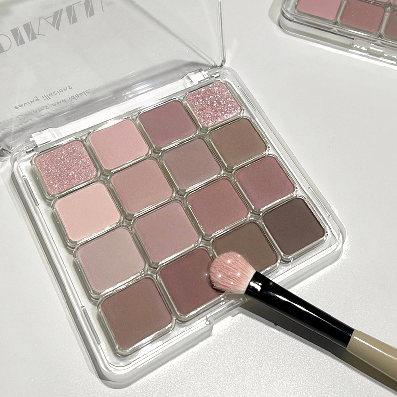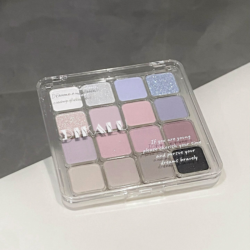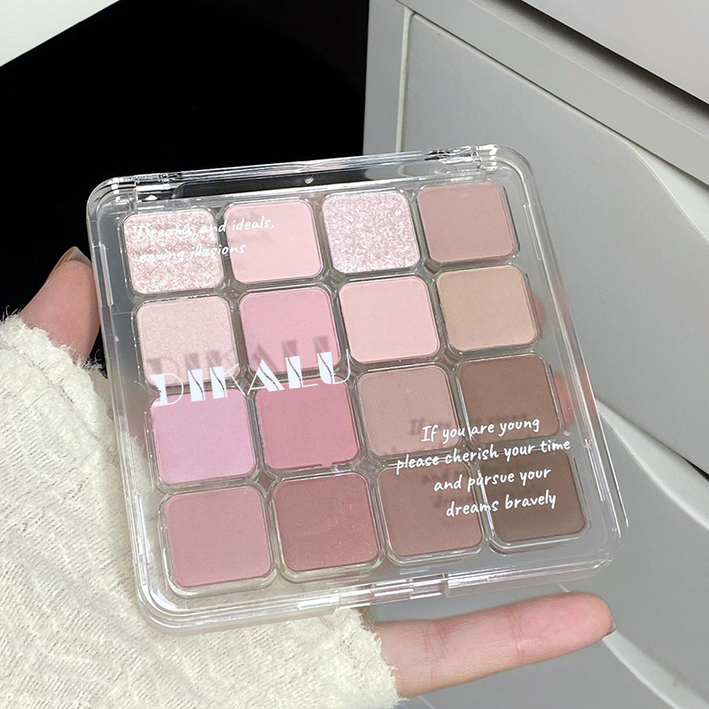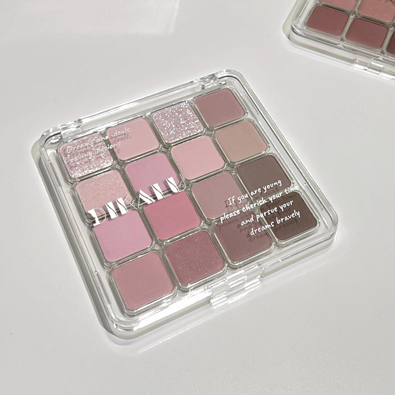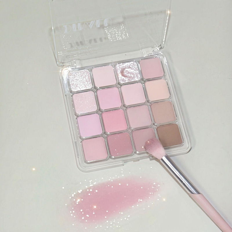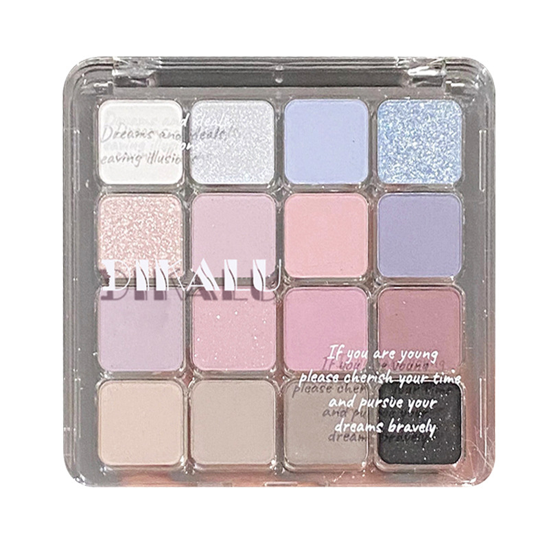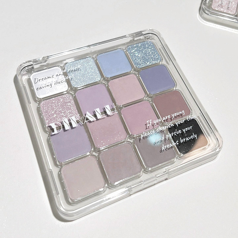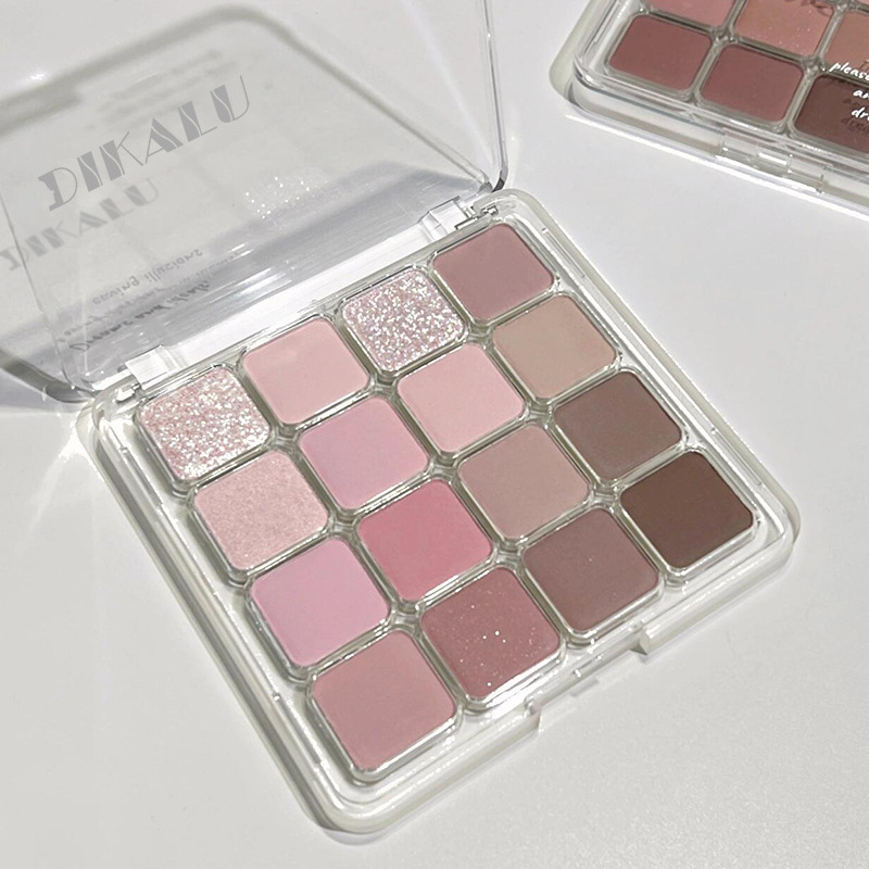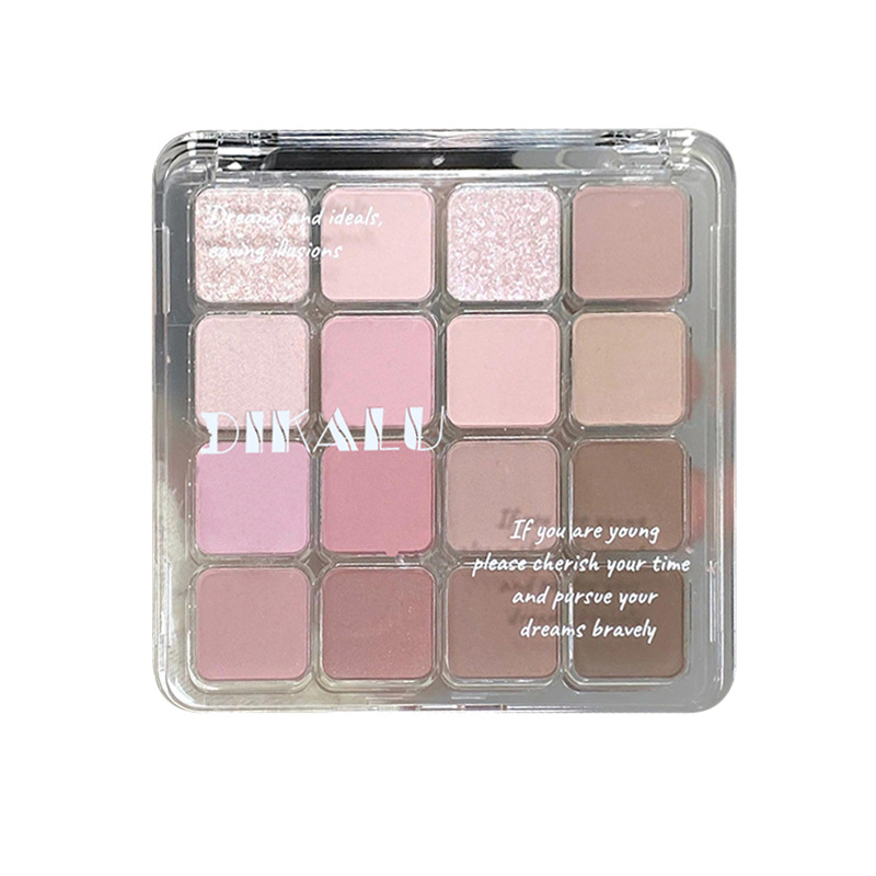 DIKALU 方格16色眼影盘粉棕蜜瓜新色哑光珠光亮片腮红蓝色眼影Ins