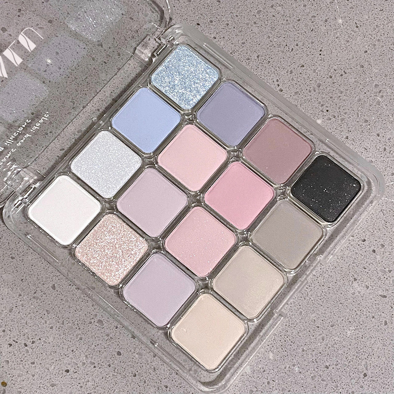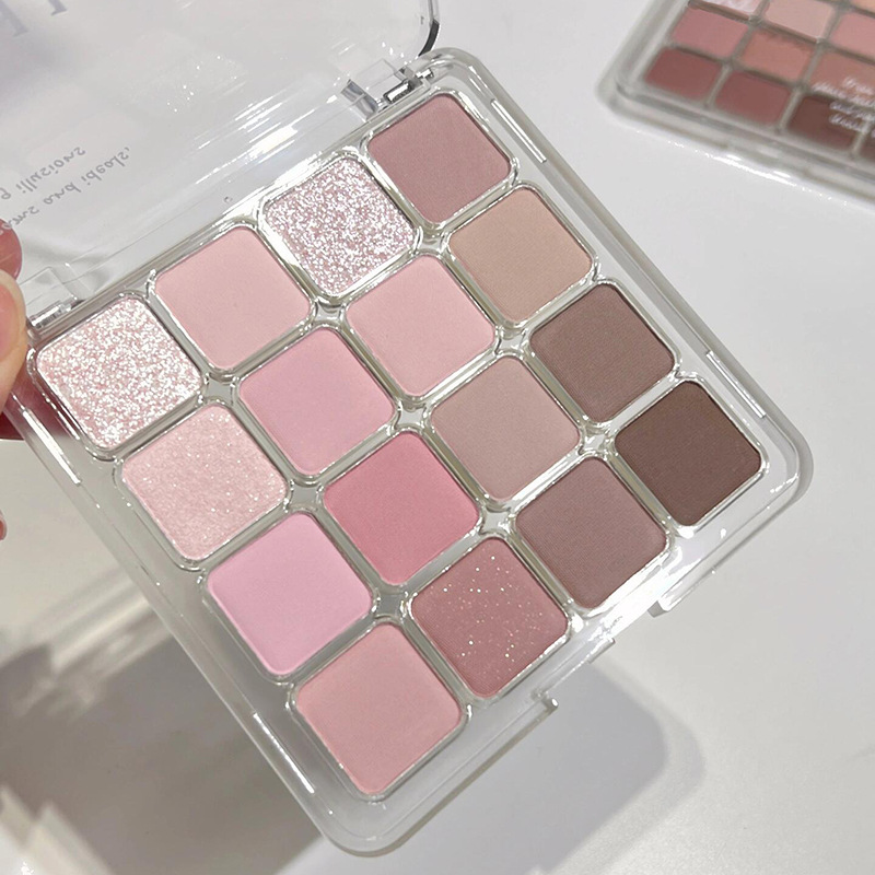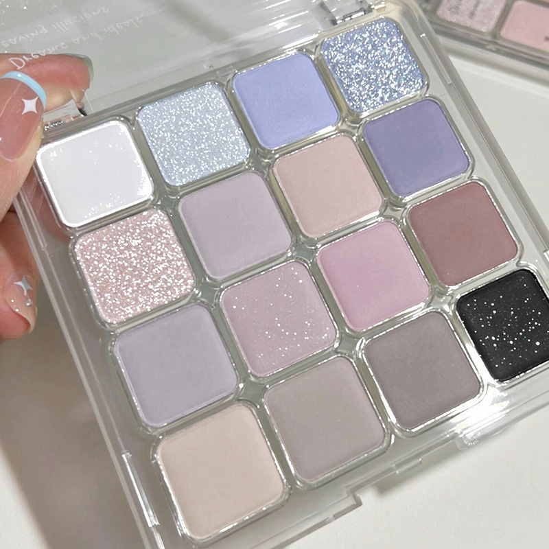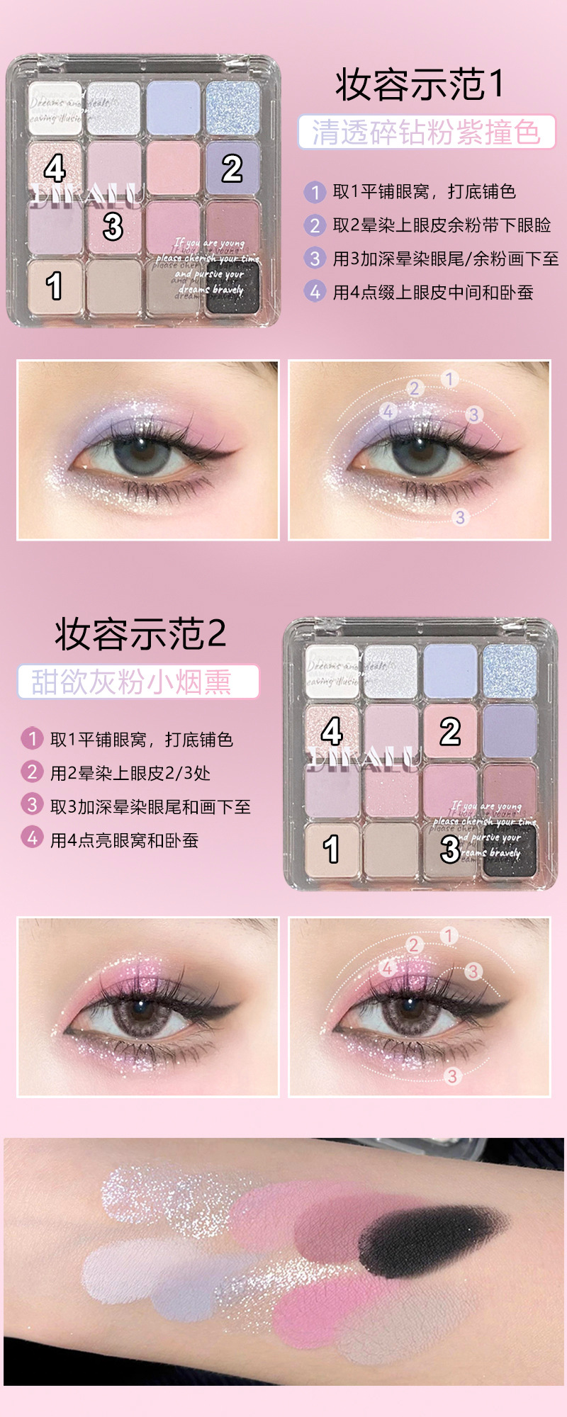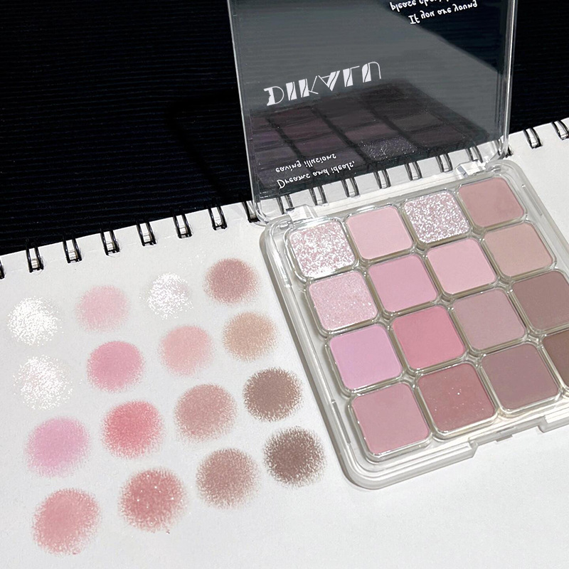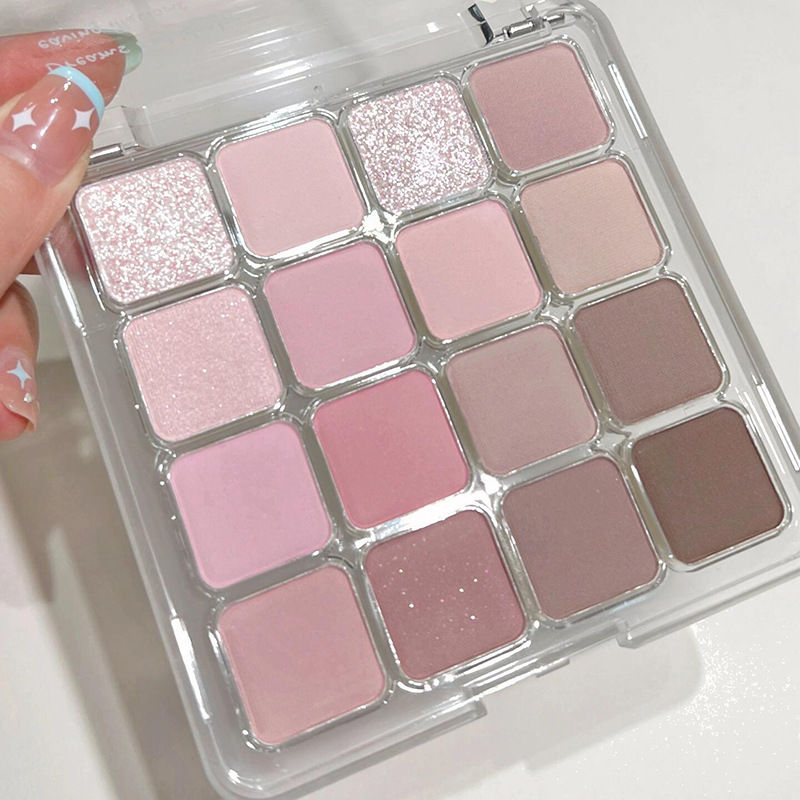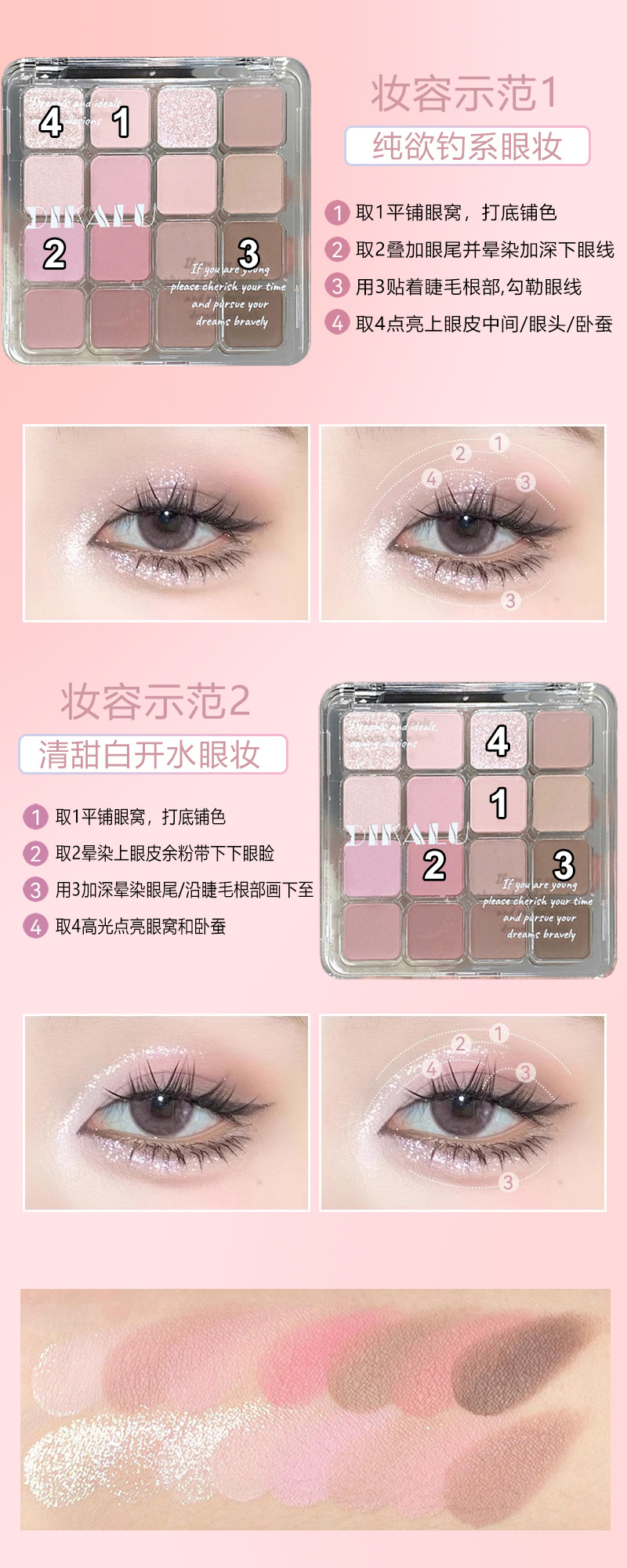 DIKALU 方格16色眼影盘粉棕蜜瓜新色哑光珠光亮片腮红蓝色眼影Ins