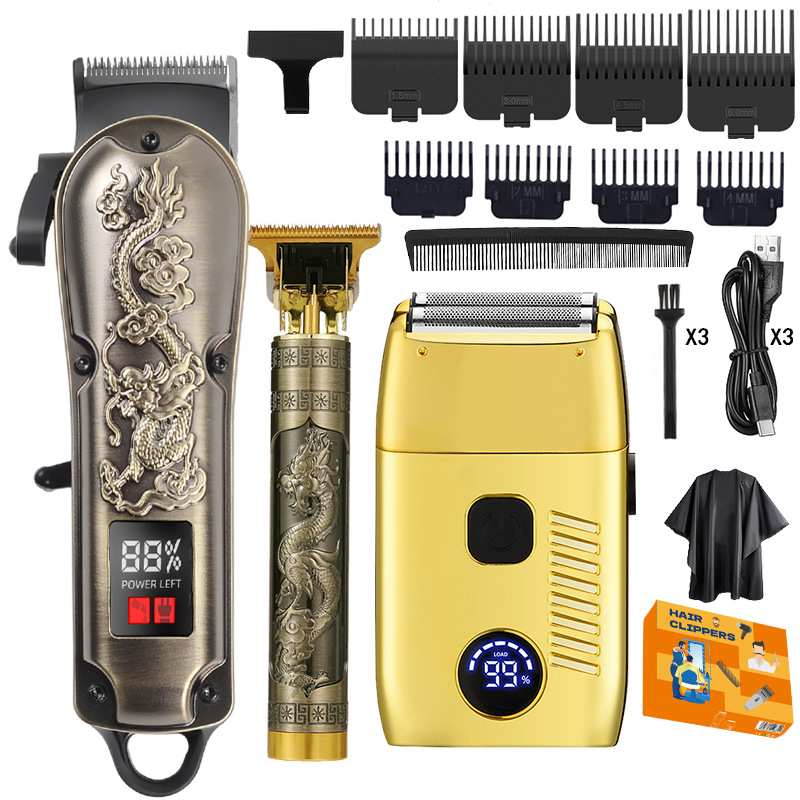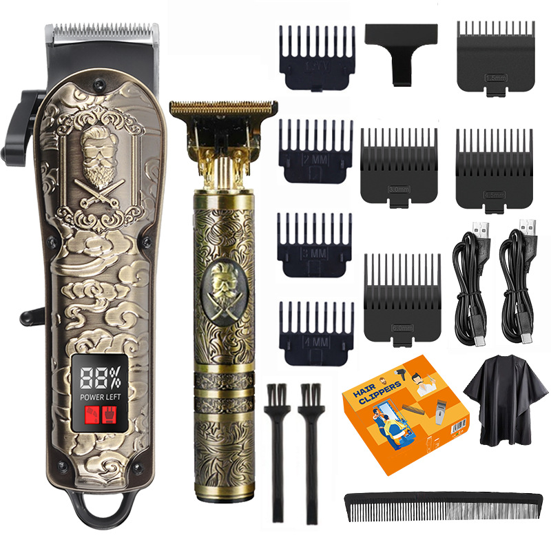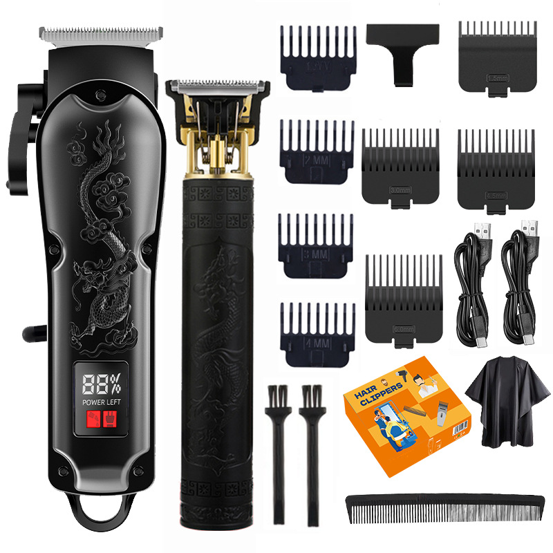 跨境VBT新款理发器子母机套装油头雕刻数显理发剪套装电推剪推子