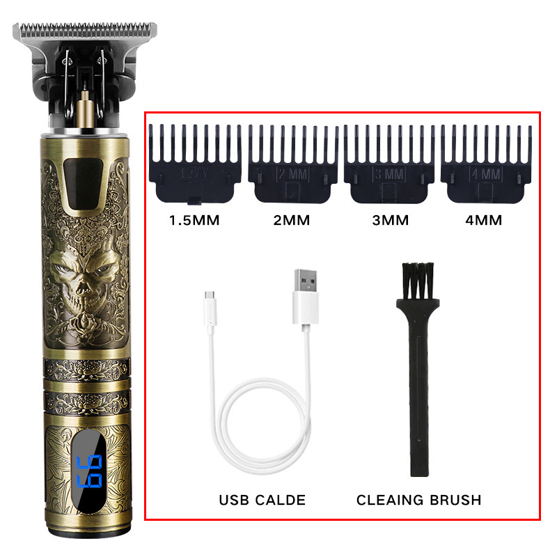 跨境新品液晶数显电动理发器充电油头电推剪男士理发剪复古电推子