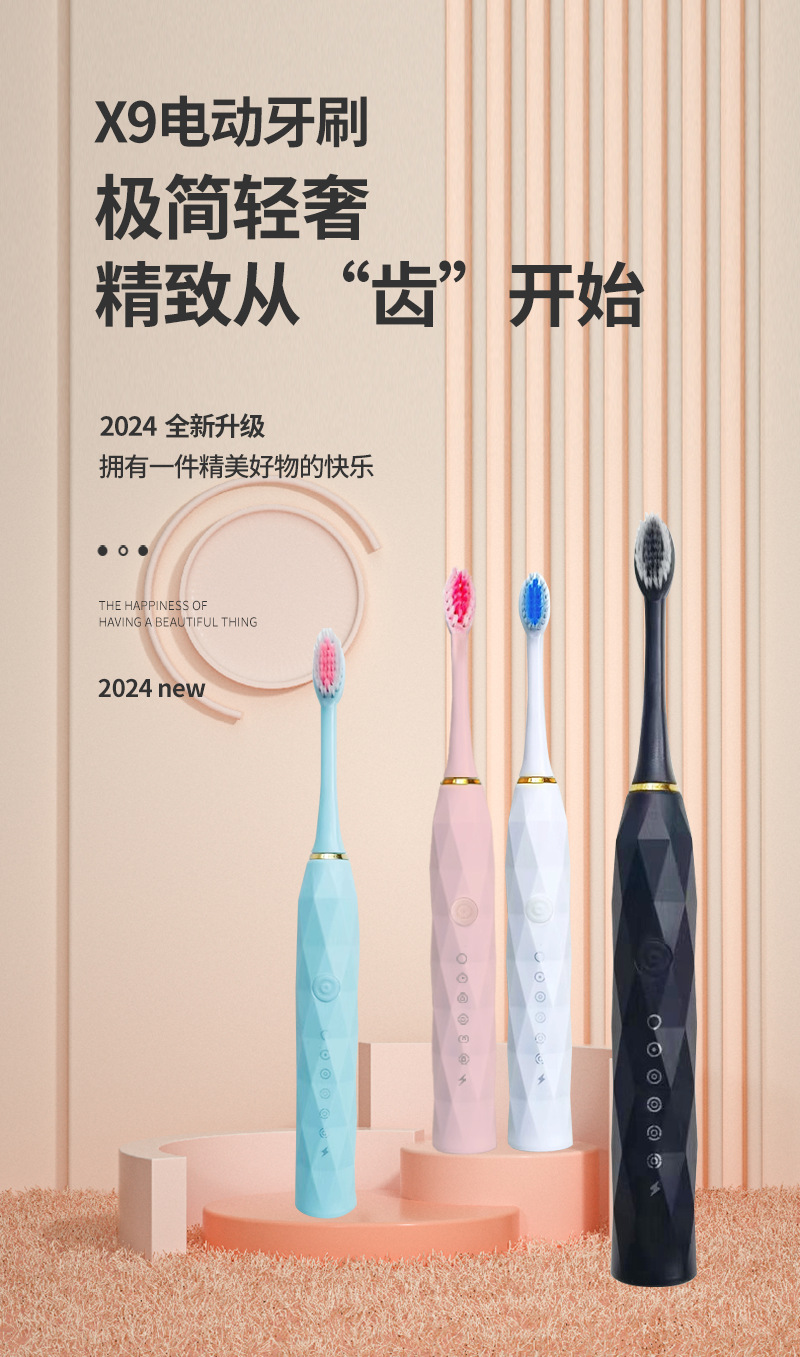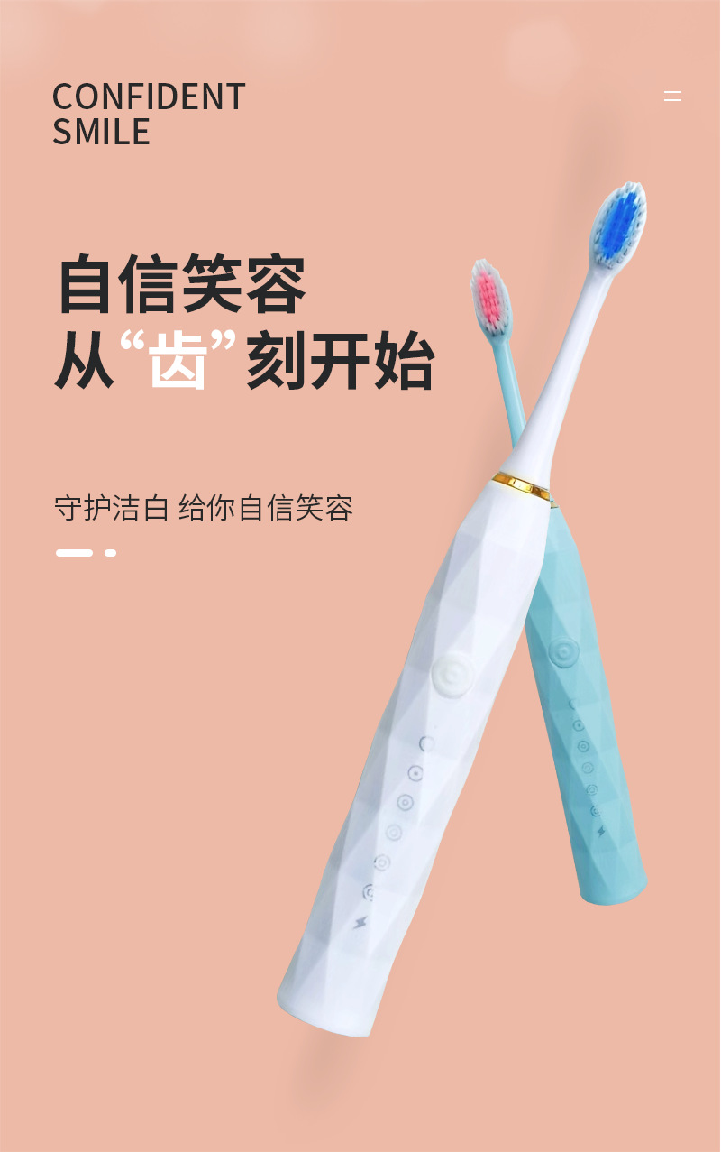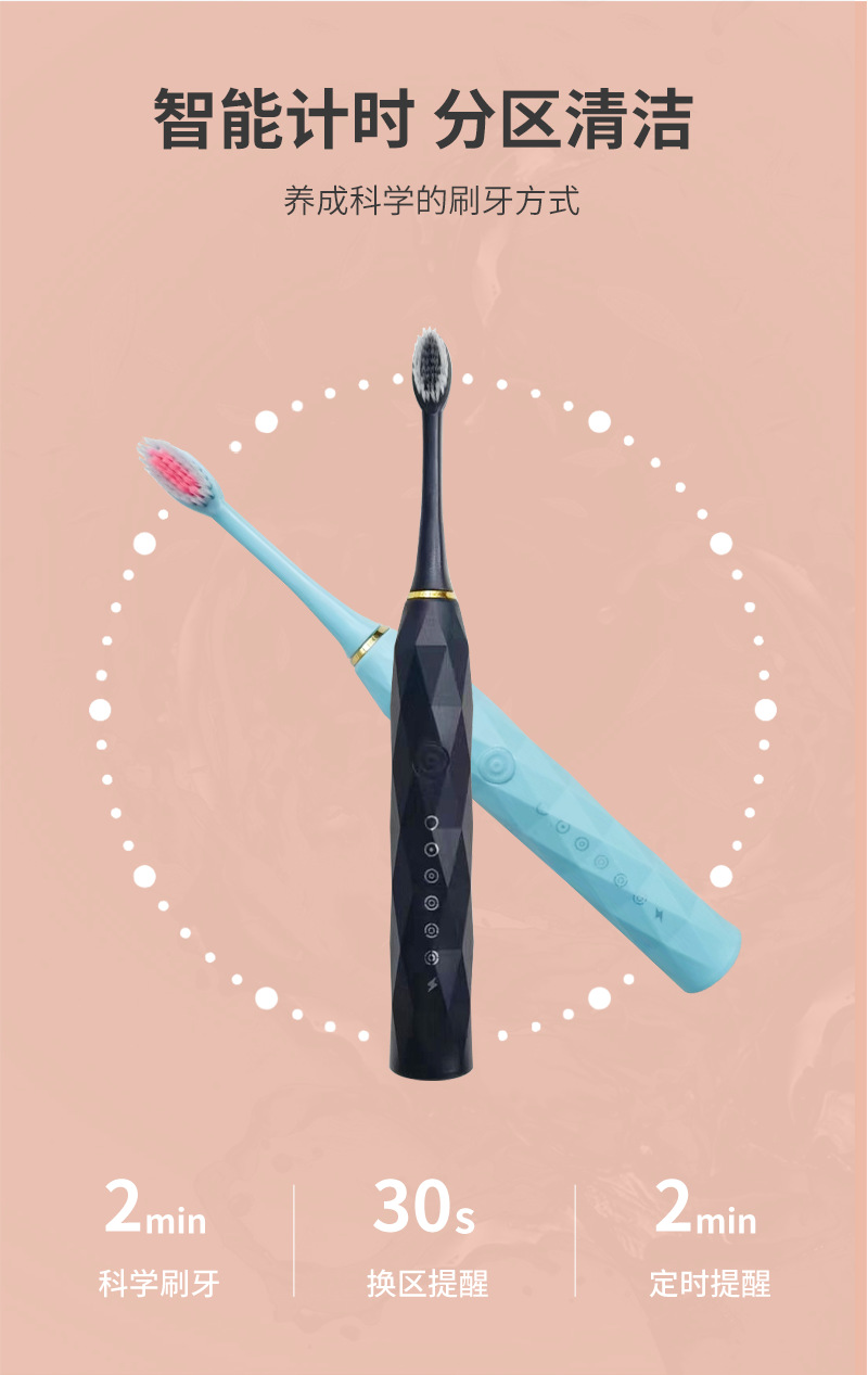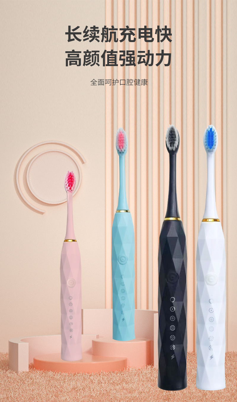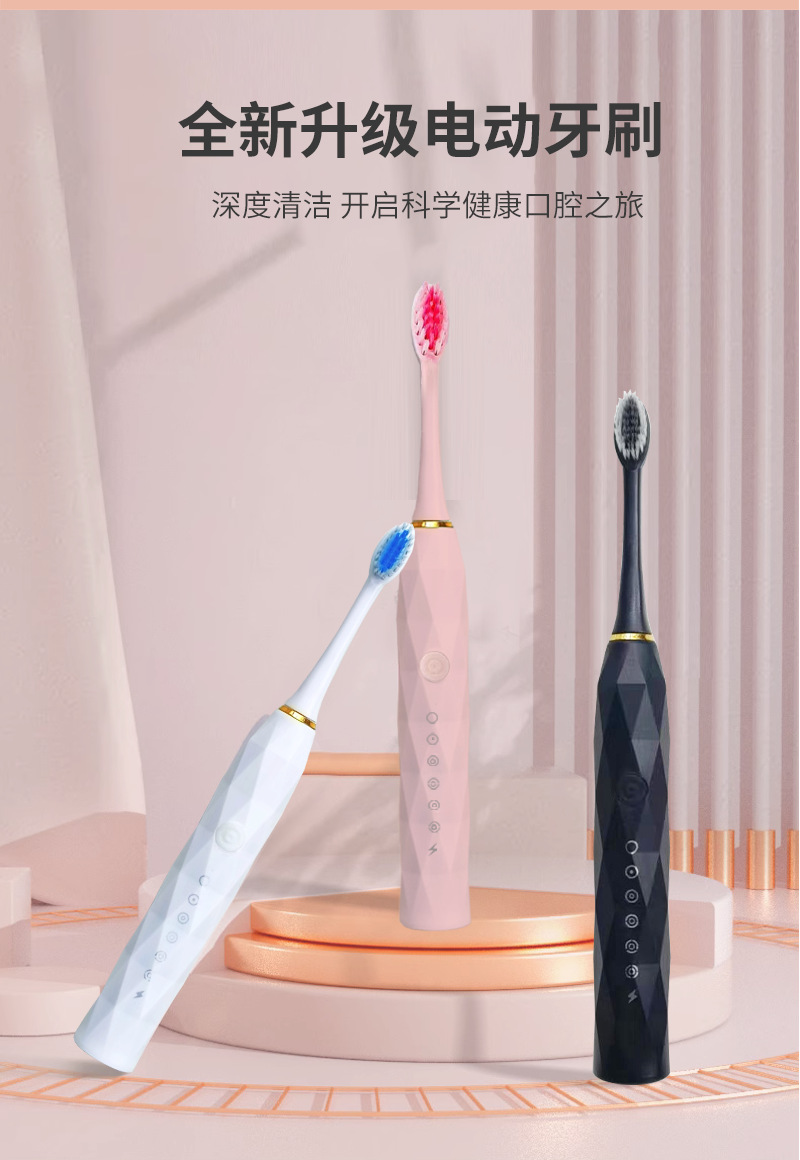 跨境全自动电动牙刷成人款儿童款通用软毛牙刷充电款六档自动牙刷