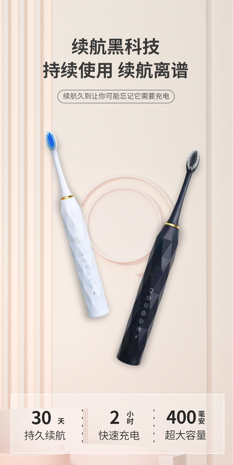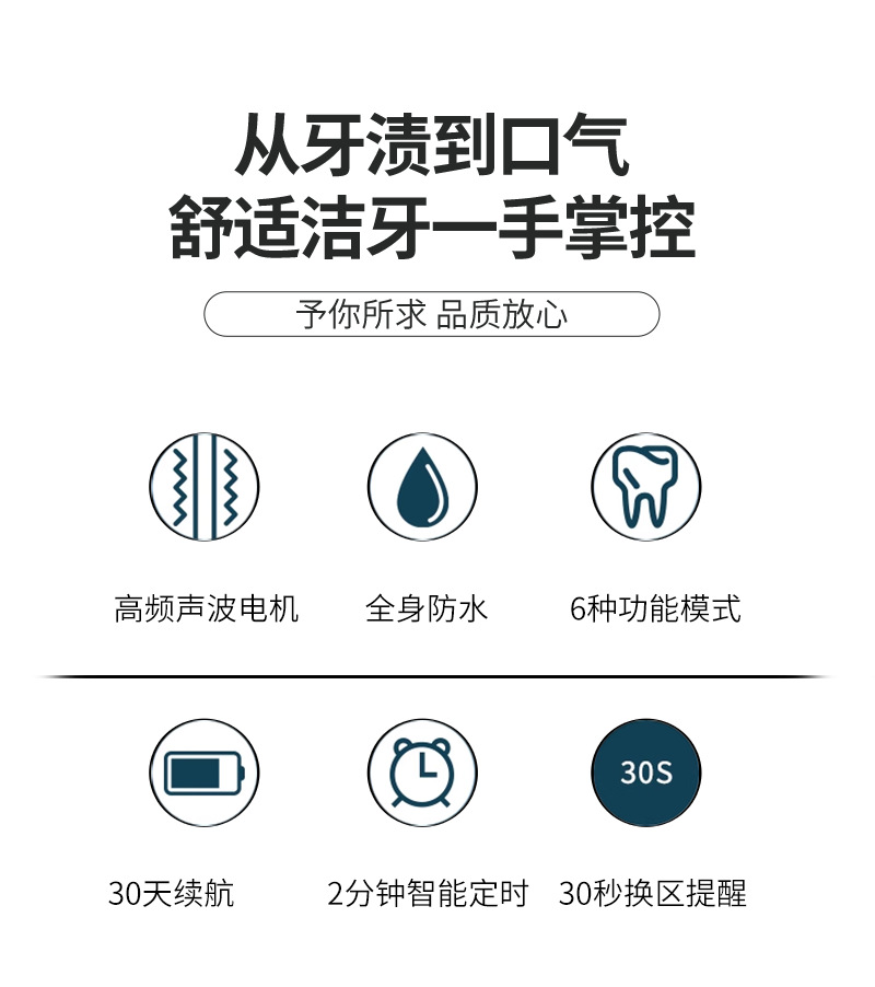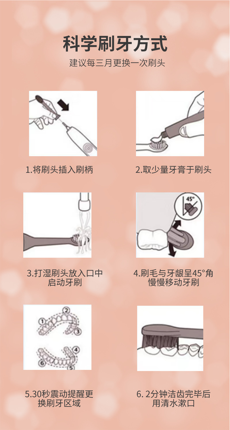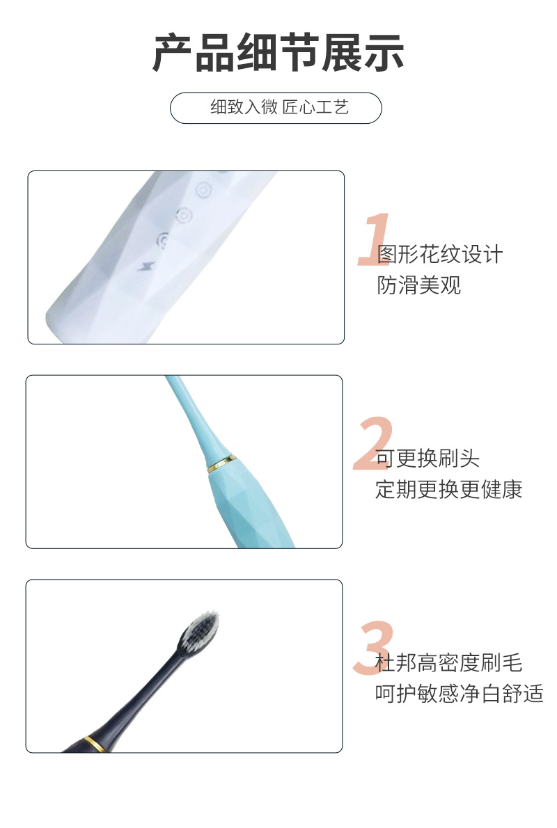 跨境全自动电动牙刷成人款儿童款通用软毛牙刷充电款六档自动牙刷