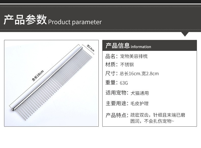 狗狗猫咪梳子宠物美容去浮毛排梳不锈钢泰迪长毛直排梳开结钢梳子