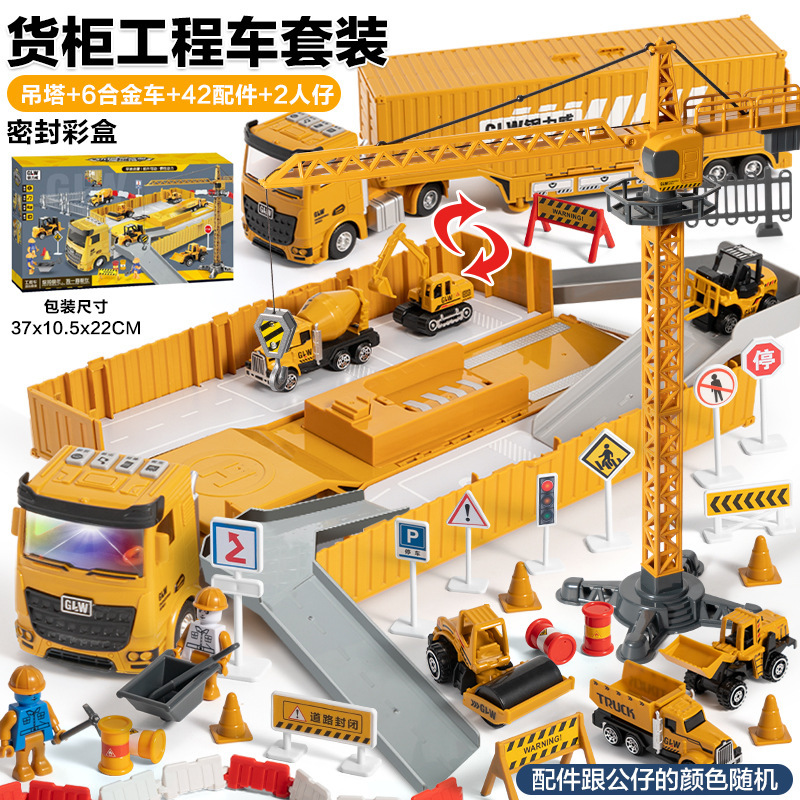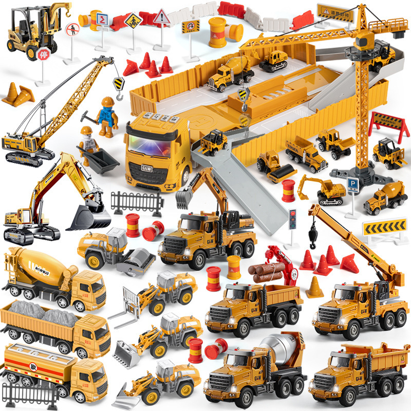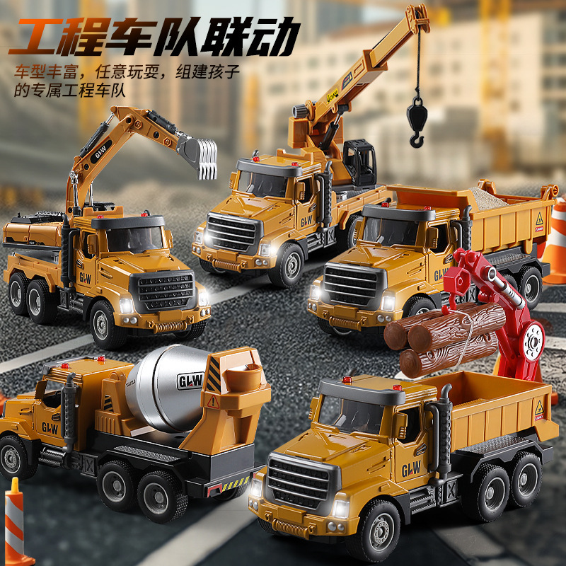 多功能声光合金车套装滑行工程车挖掘搅拌机叉车吊塔玩具