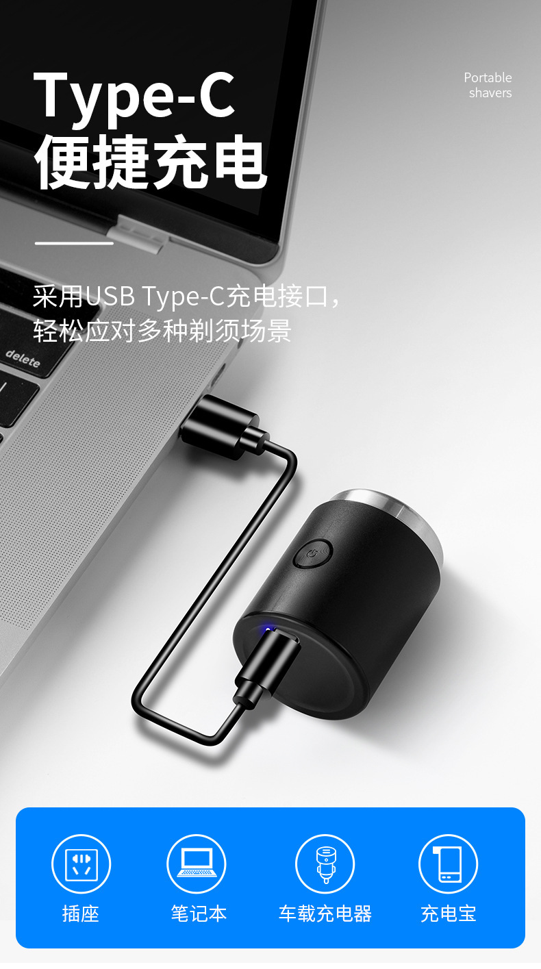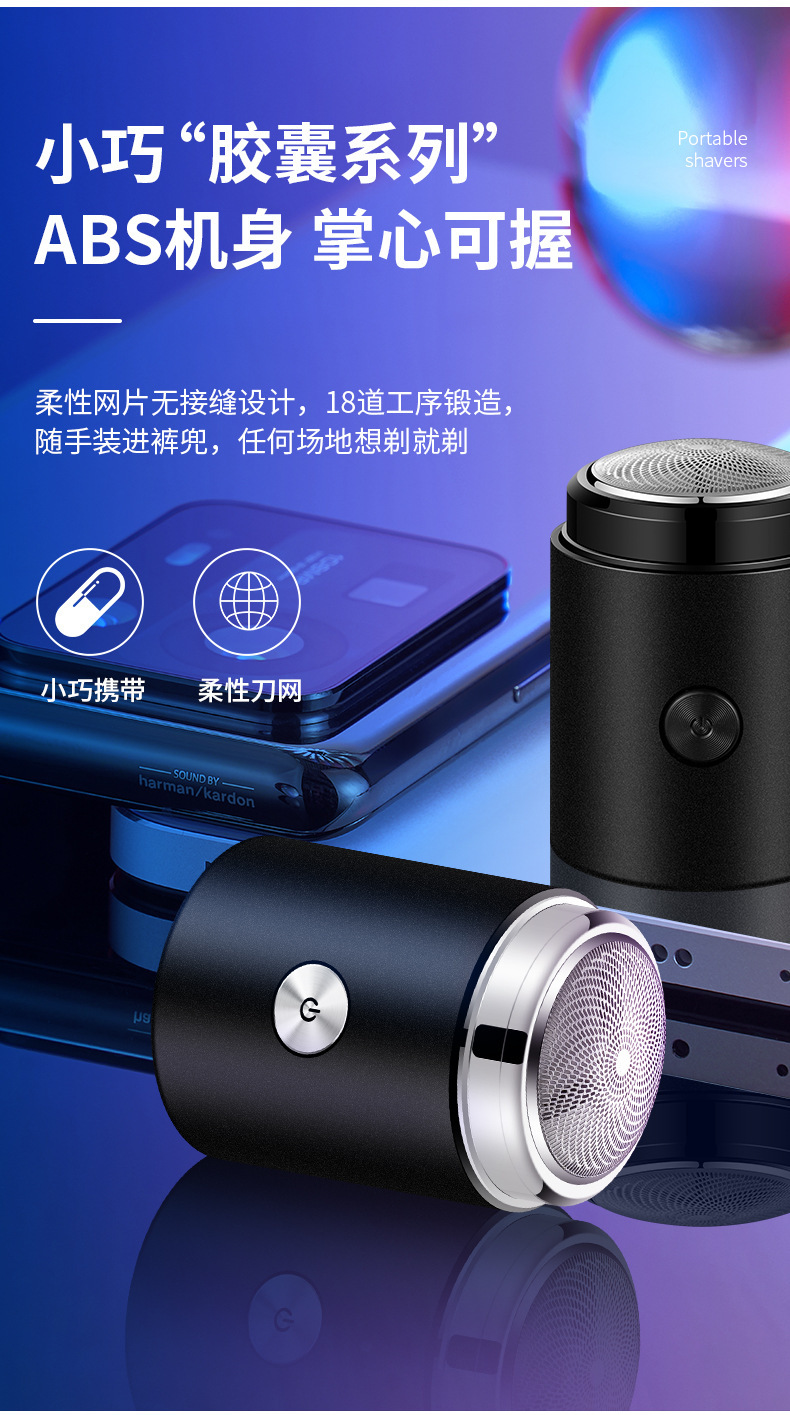 工厂小钢炮电动剃须刀USB充电式男士迷你刮胡刀水洗便携式胡须刀