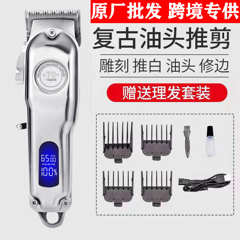 跨境复古油头电推剪光头电动理发器美发雕刻推子充电式发廊理发剪