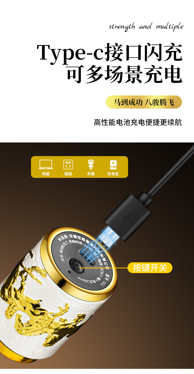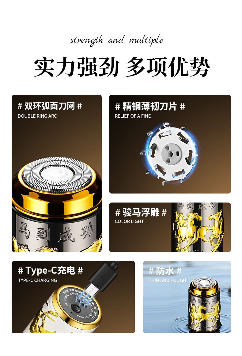 马年新款迷你便携式弧面全身可水洗充电剃须刀电动胡须刀刮胡刀