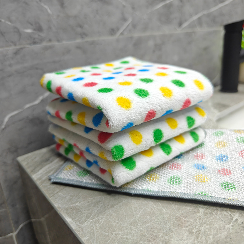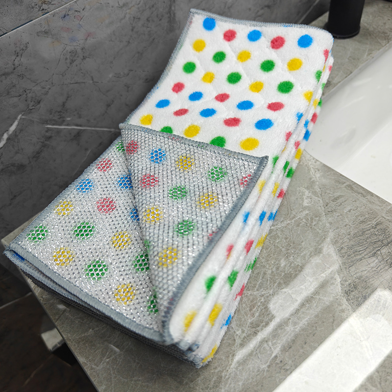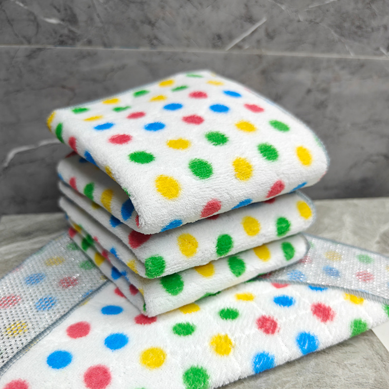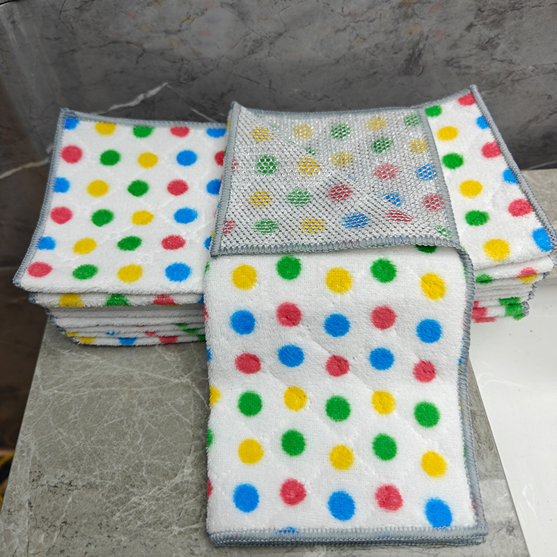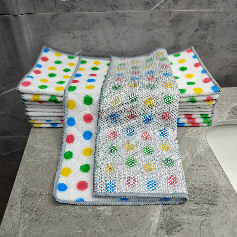 圆点珊瑚绒银丝复合抹布波点洗碗巾去油吸水家务清洁吸水百洁布厨