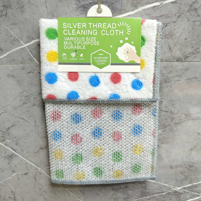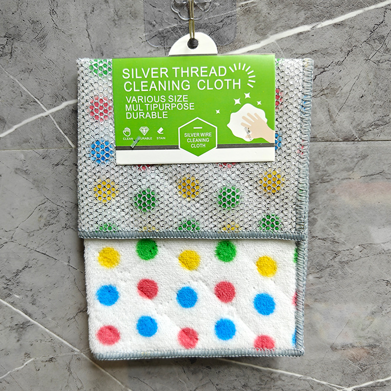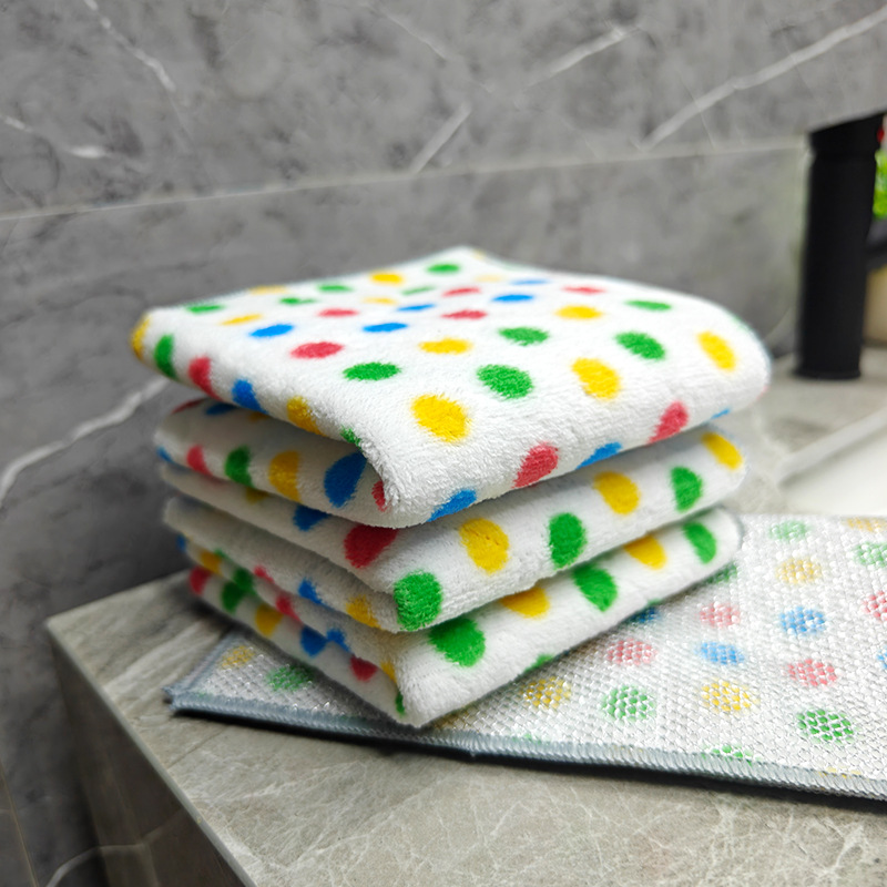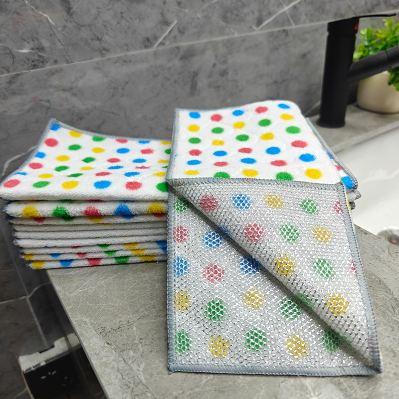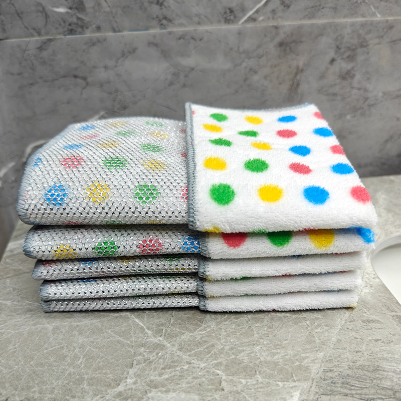 圆点珊瑚绒银丝复合抹布波点洗碗巾去油吸水家务清洁吸水百洁布厨