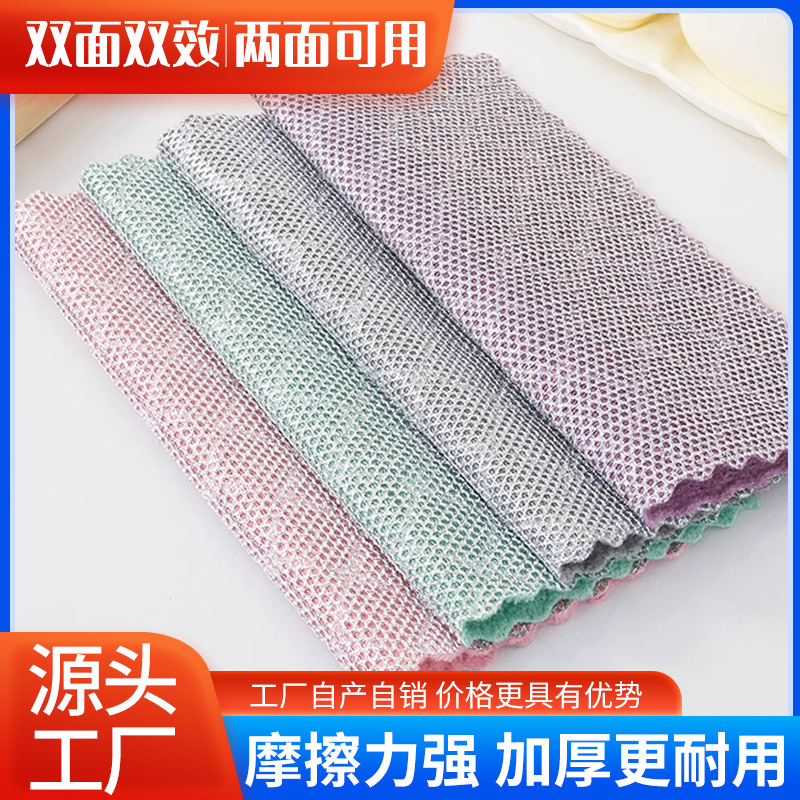 加工珊瑚绒银丝抹布复合切边吸水不易掉毛厨房多功能洗碗巾去油清